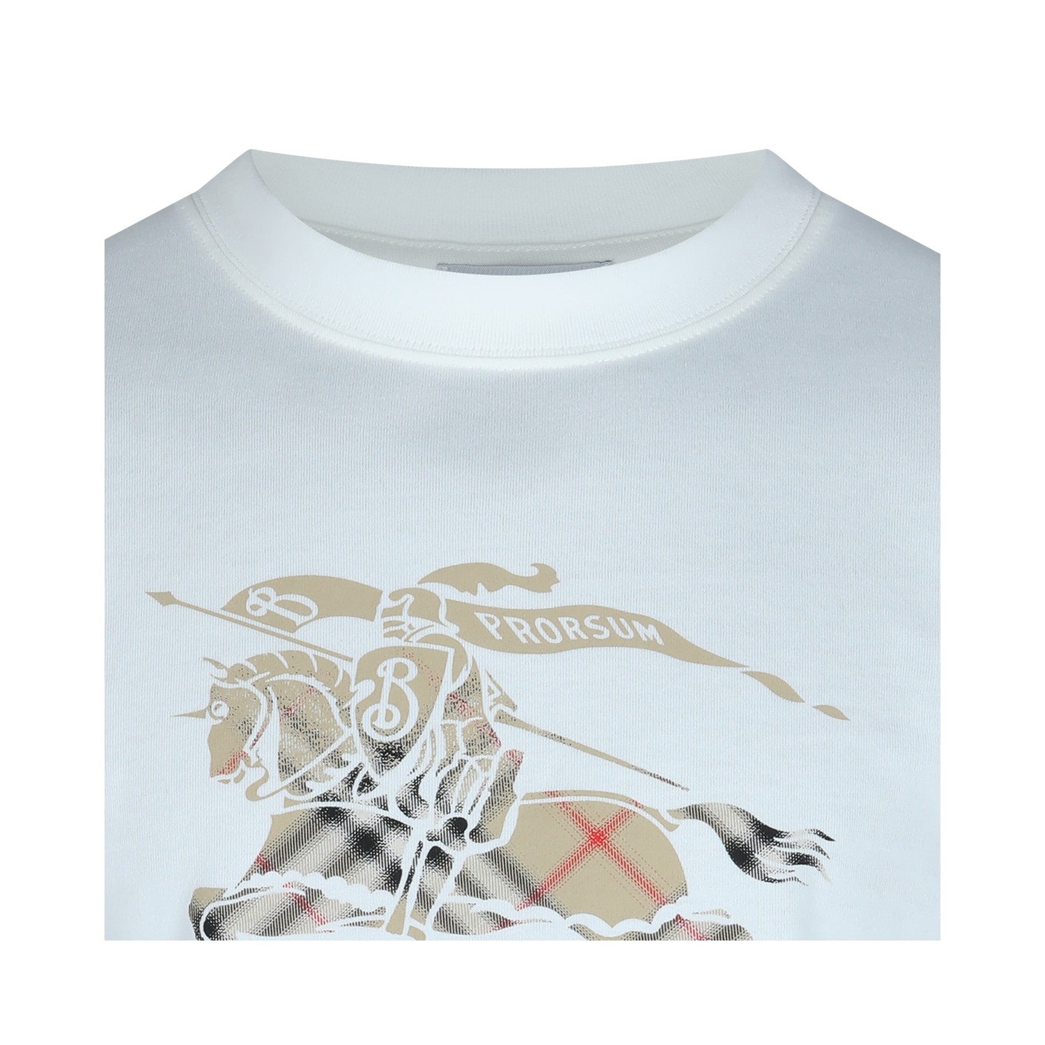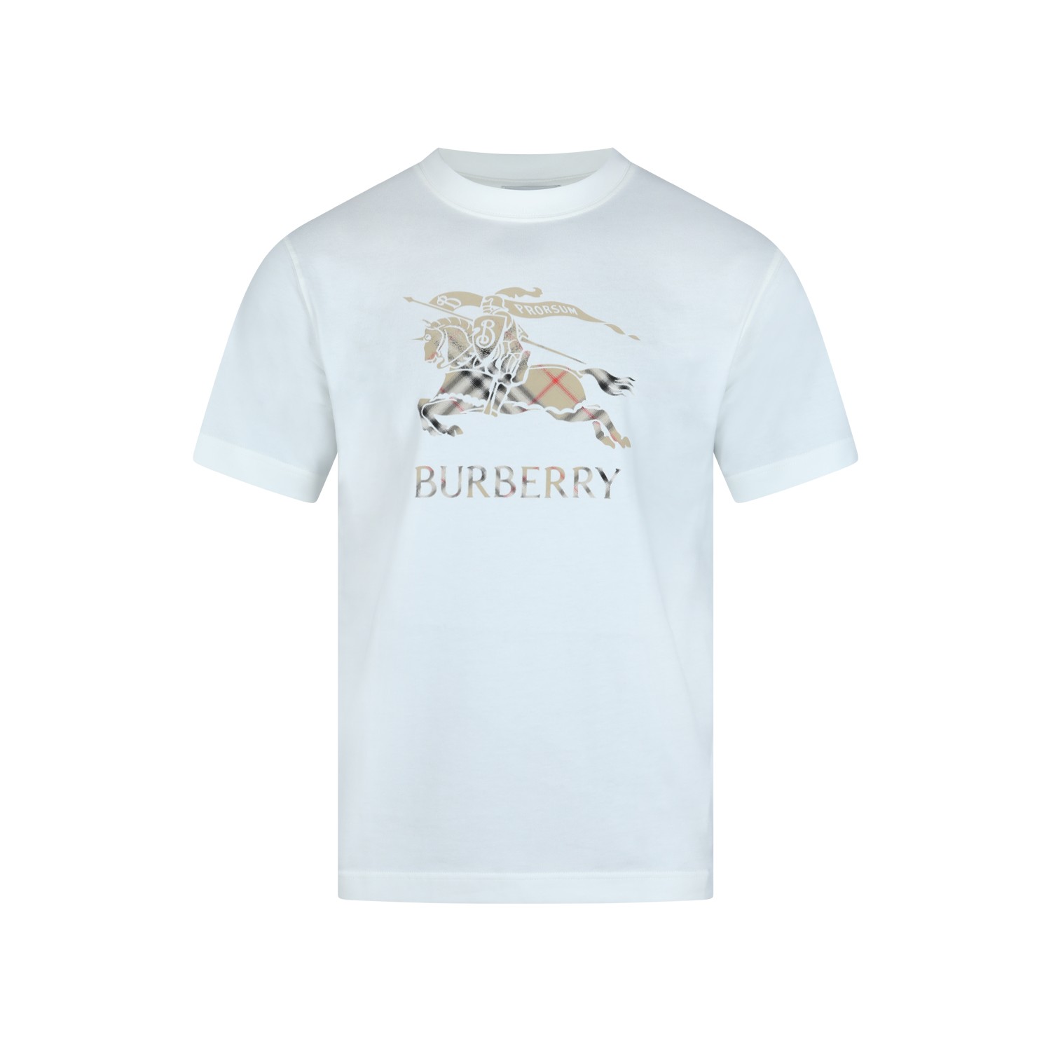 White cotton t-shirt from Burberry featuring crew neck, short sleeves, frontal stamp and regular vestibility.