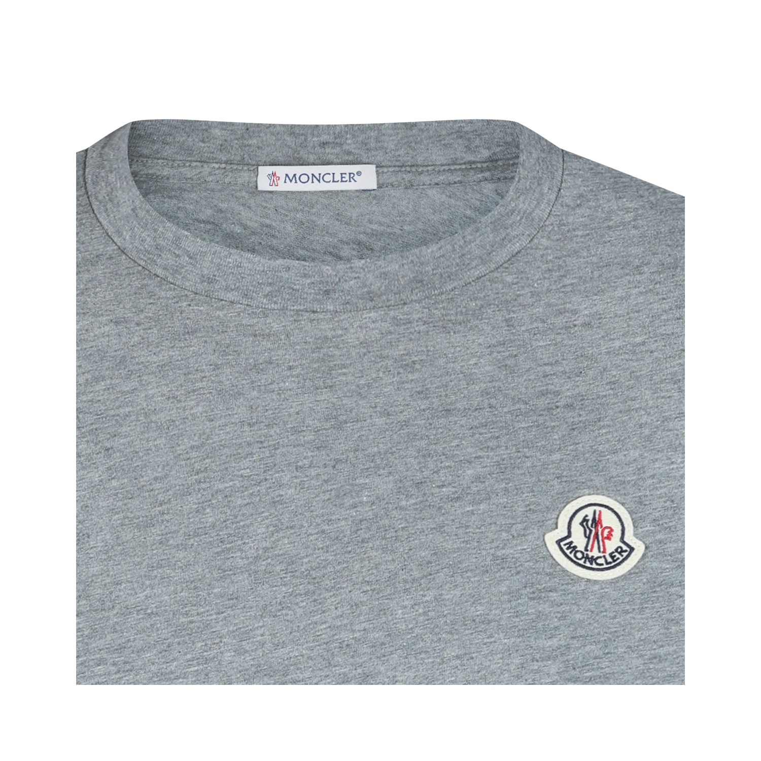 Grey cotton t-shirt from Moncler featuring crew neck, short sleeves, logo and regular vestibility.