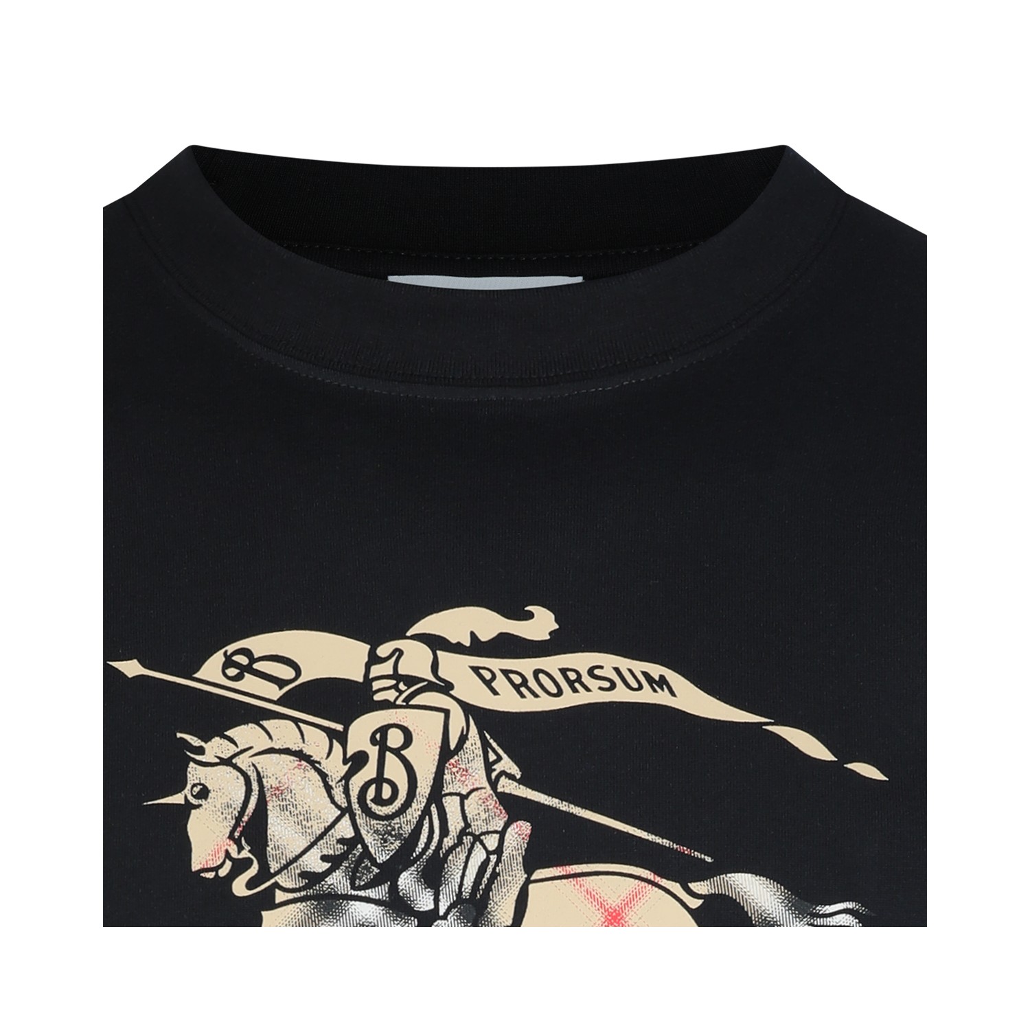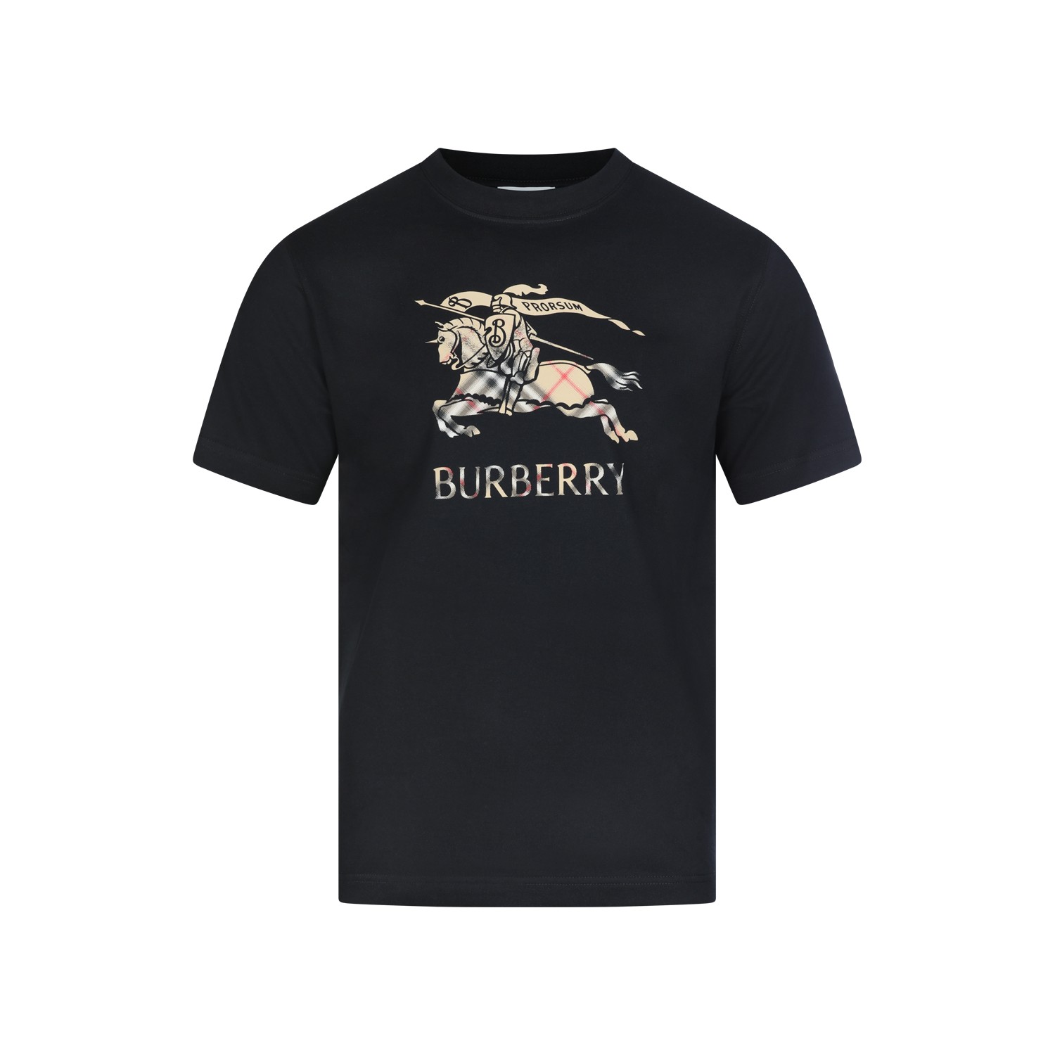 Black cotton t-shirt from Burberry featuring crew neck, short sleeves, frontal stamp and regular vestibility.