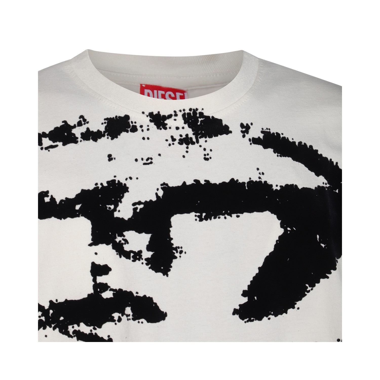 White cotton t-shirt from Diesel featuring crew neck, short sleeves, frontal logo stamp and regular vestibility.