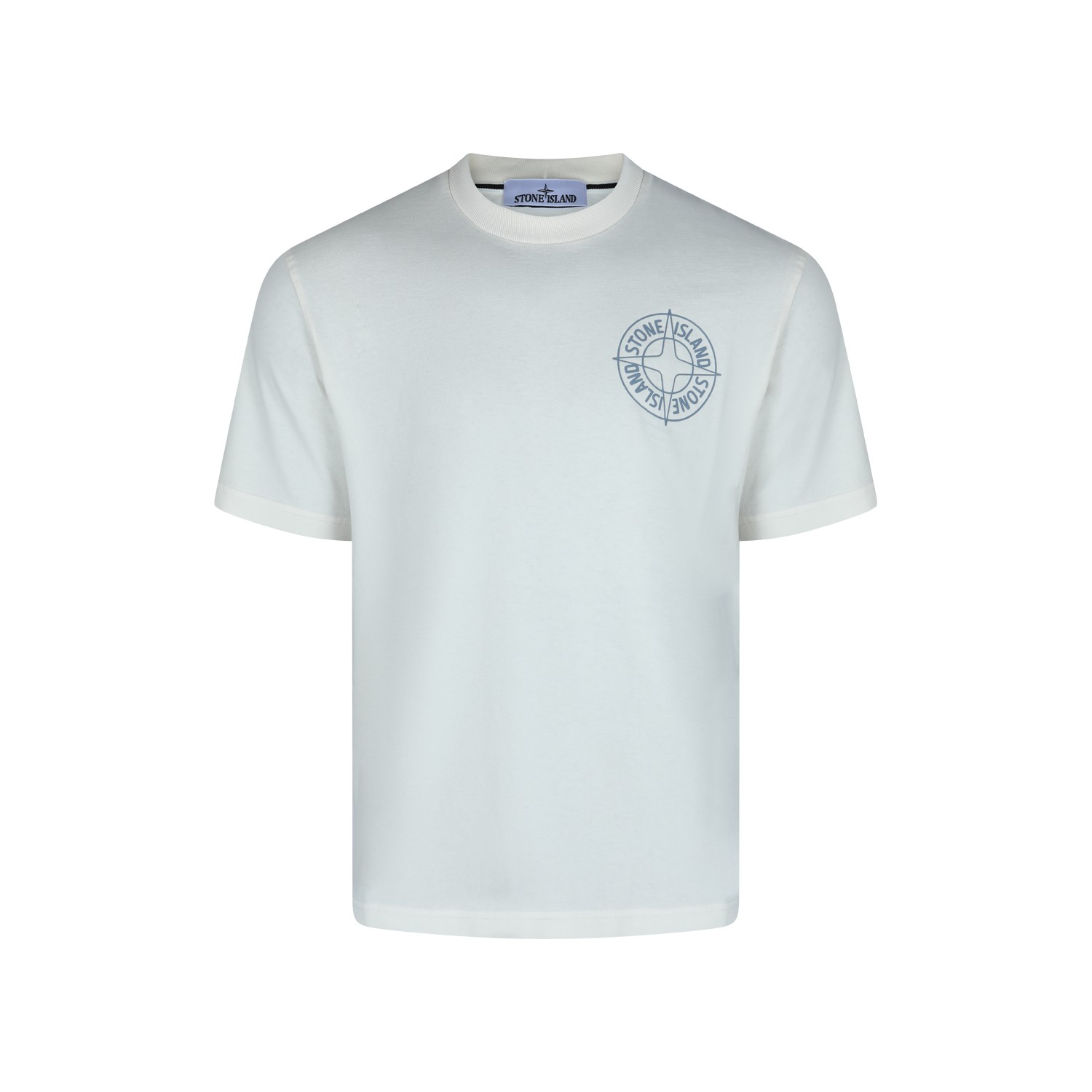 Ivory cotton t-shirt from Stone Island featuring crew neck, short sleeves, logo stamp and regular vestibility.