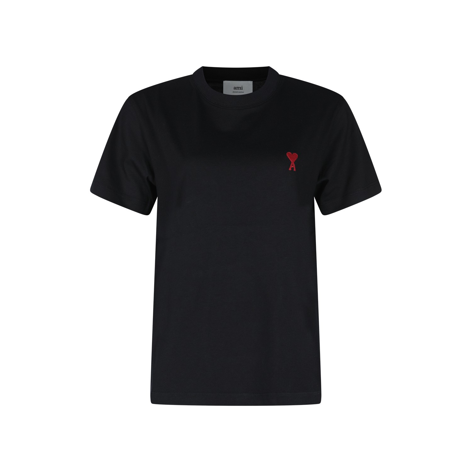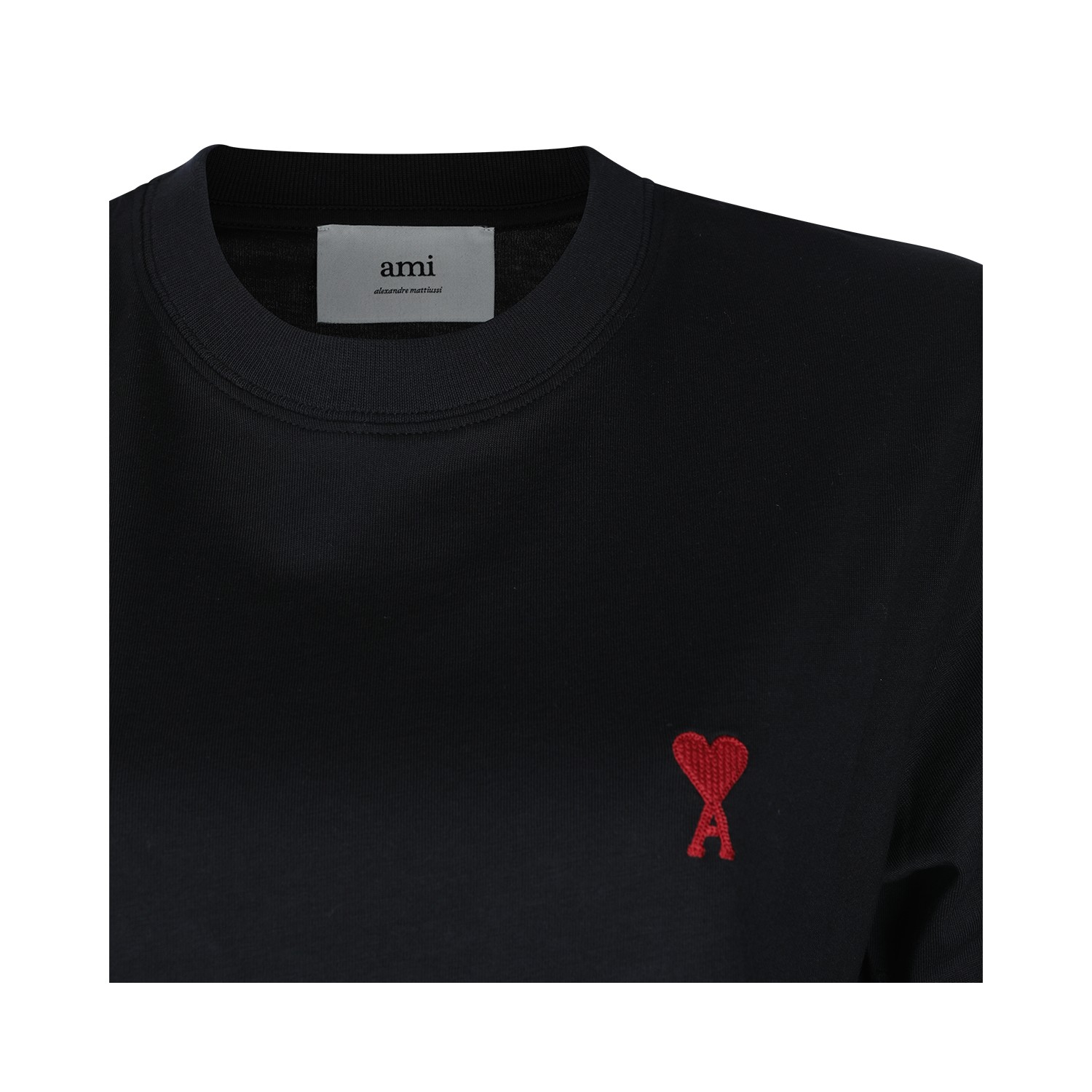 Black cotton t-shirt from Ami Paris featuring round collar, short sleeves and logo.