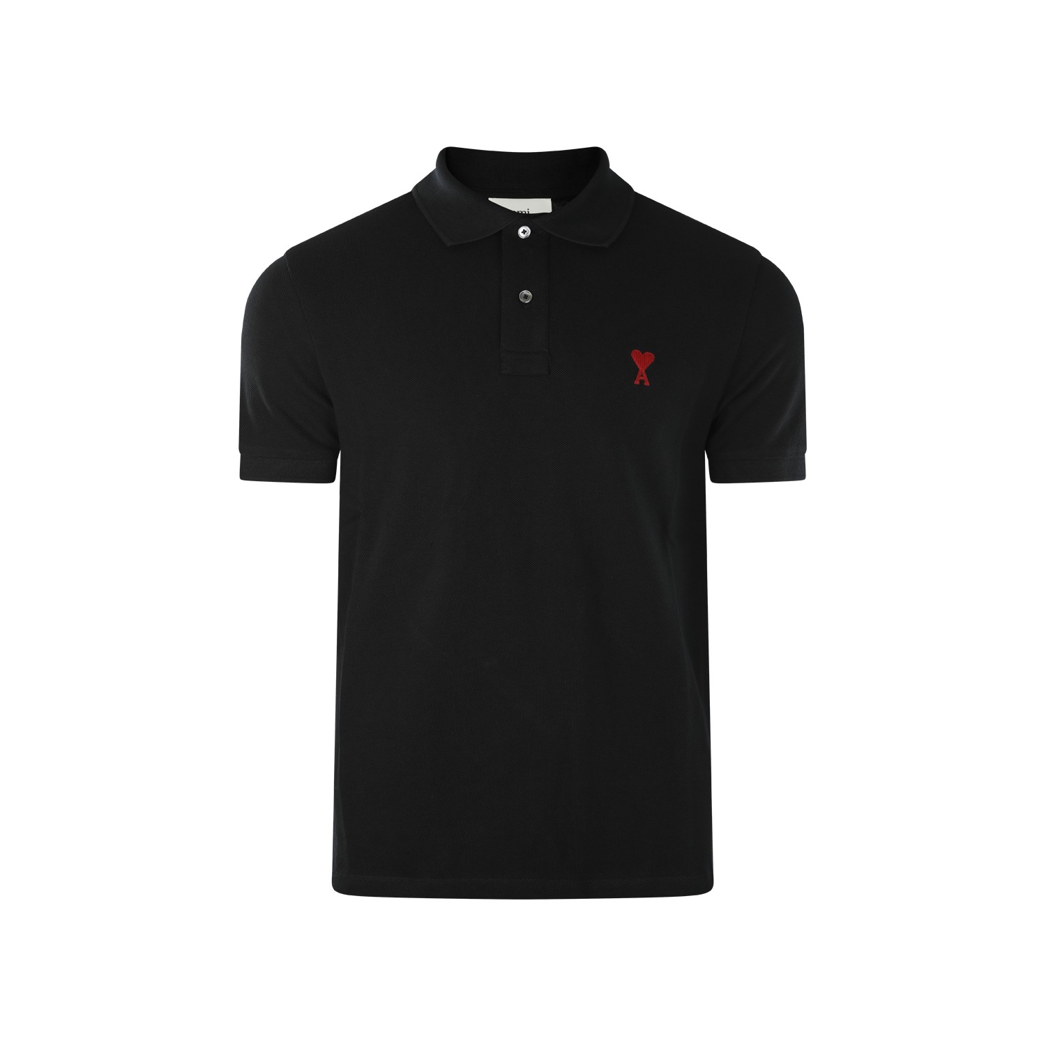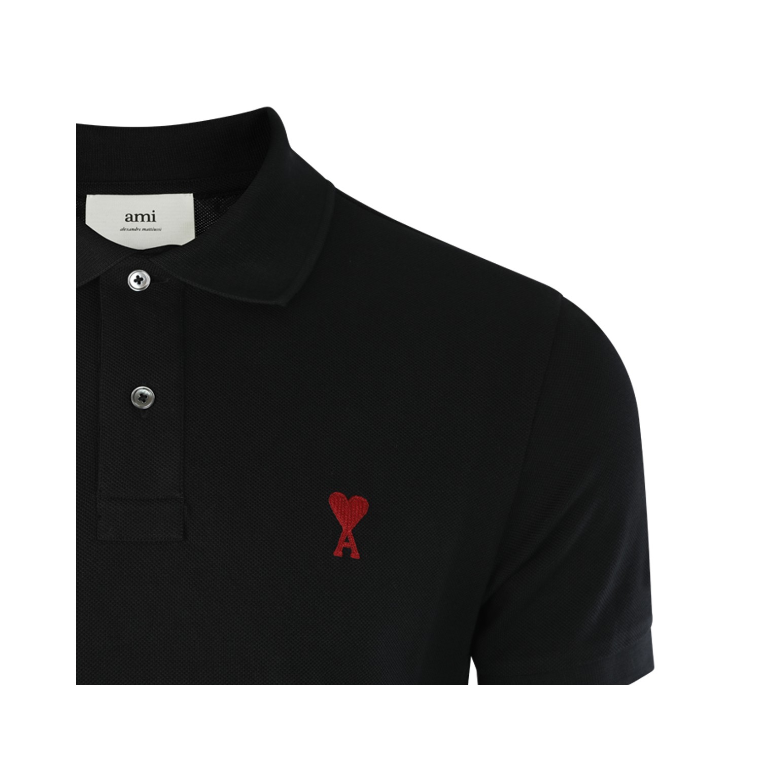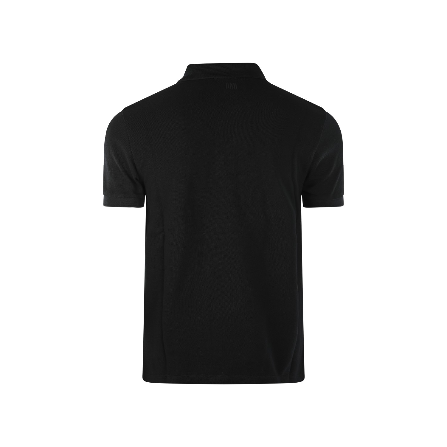 Black cotton polo shirt from Ami Paris featuring polo shirt collar, buttons, short sleeves and logo.