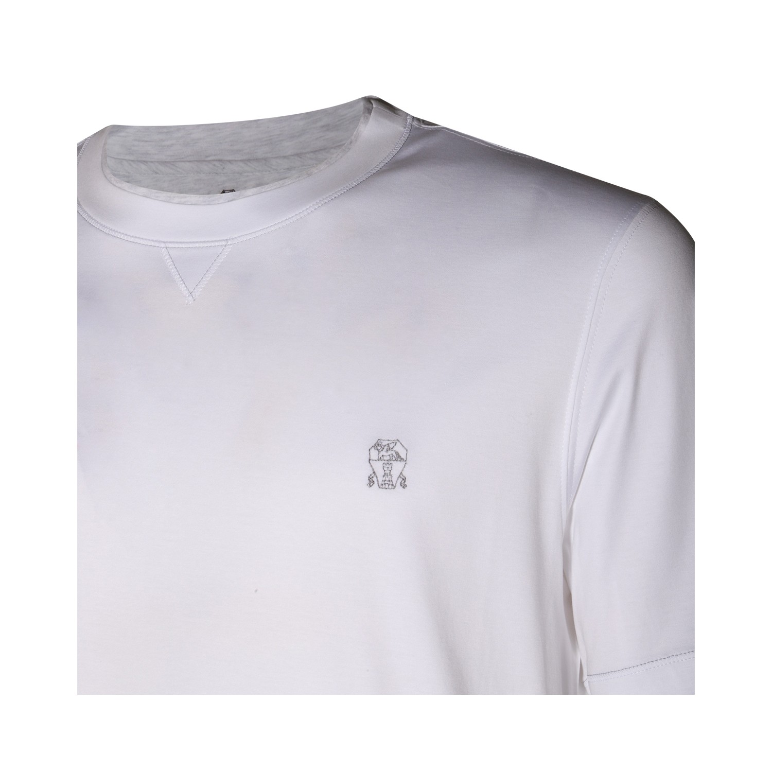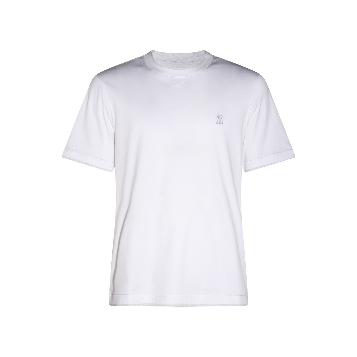 White cotton t-shirt from Brunello Cucinelli featuring round collar, short sleeves, logo and regular vestibility.