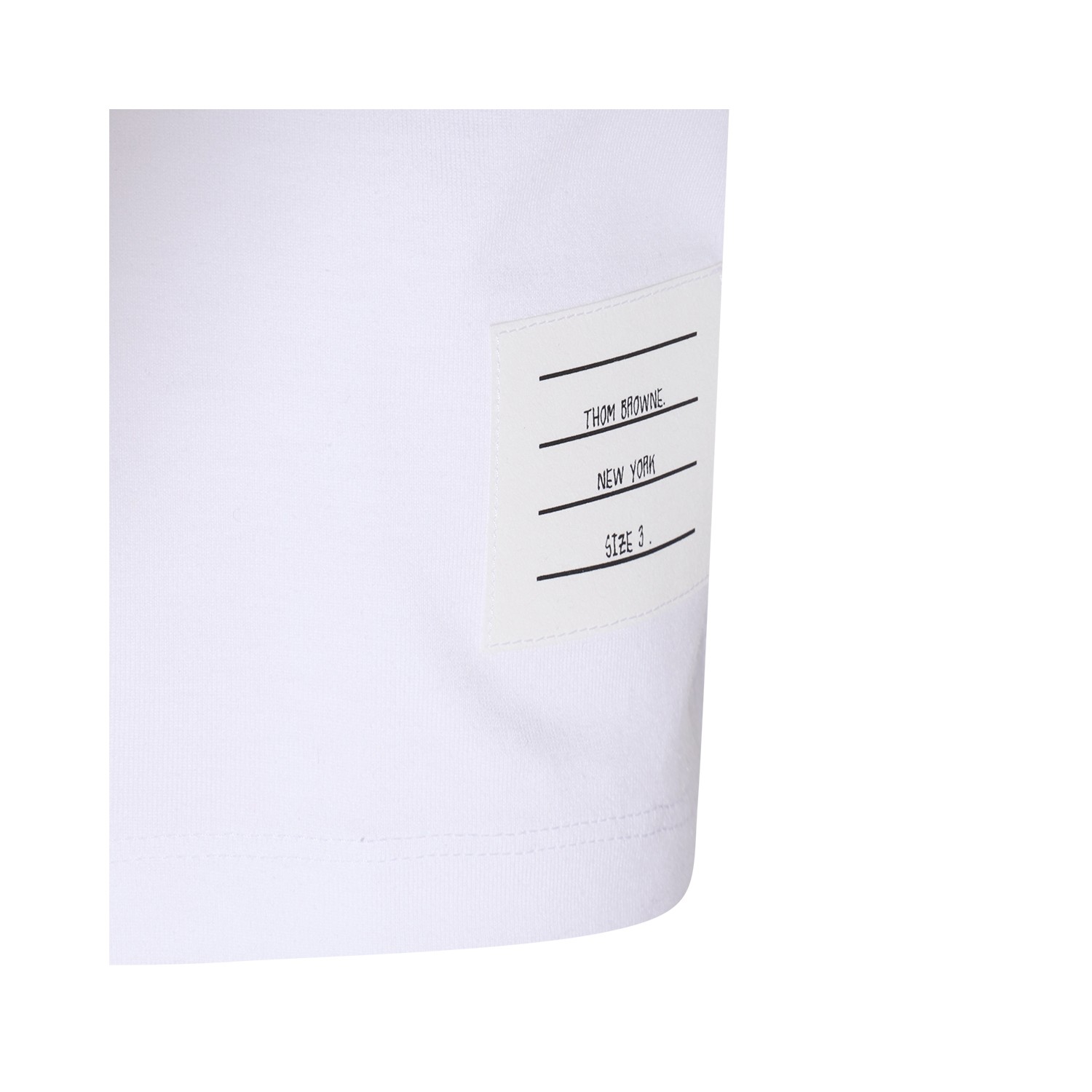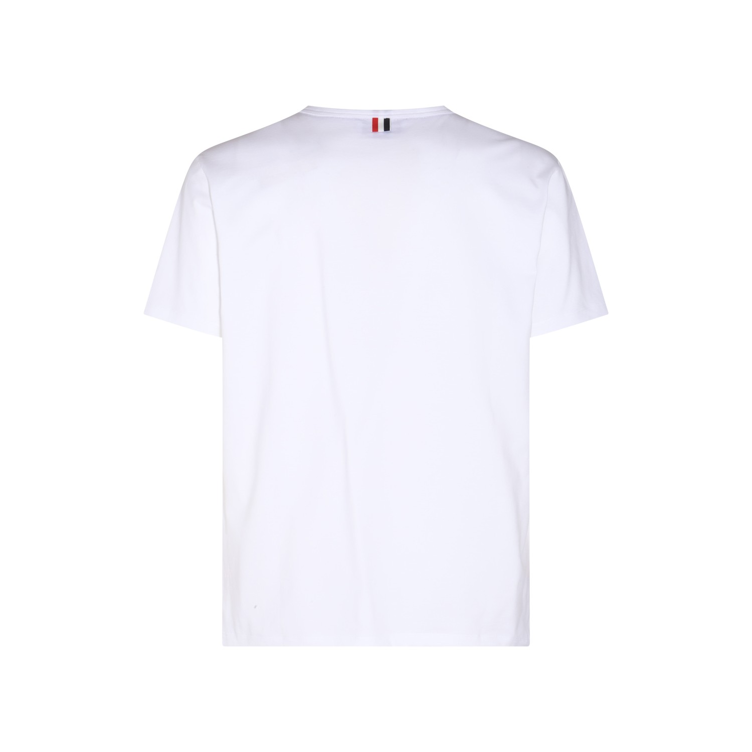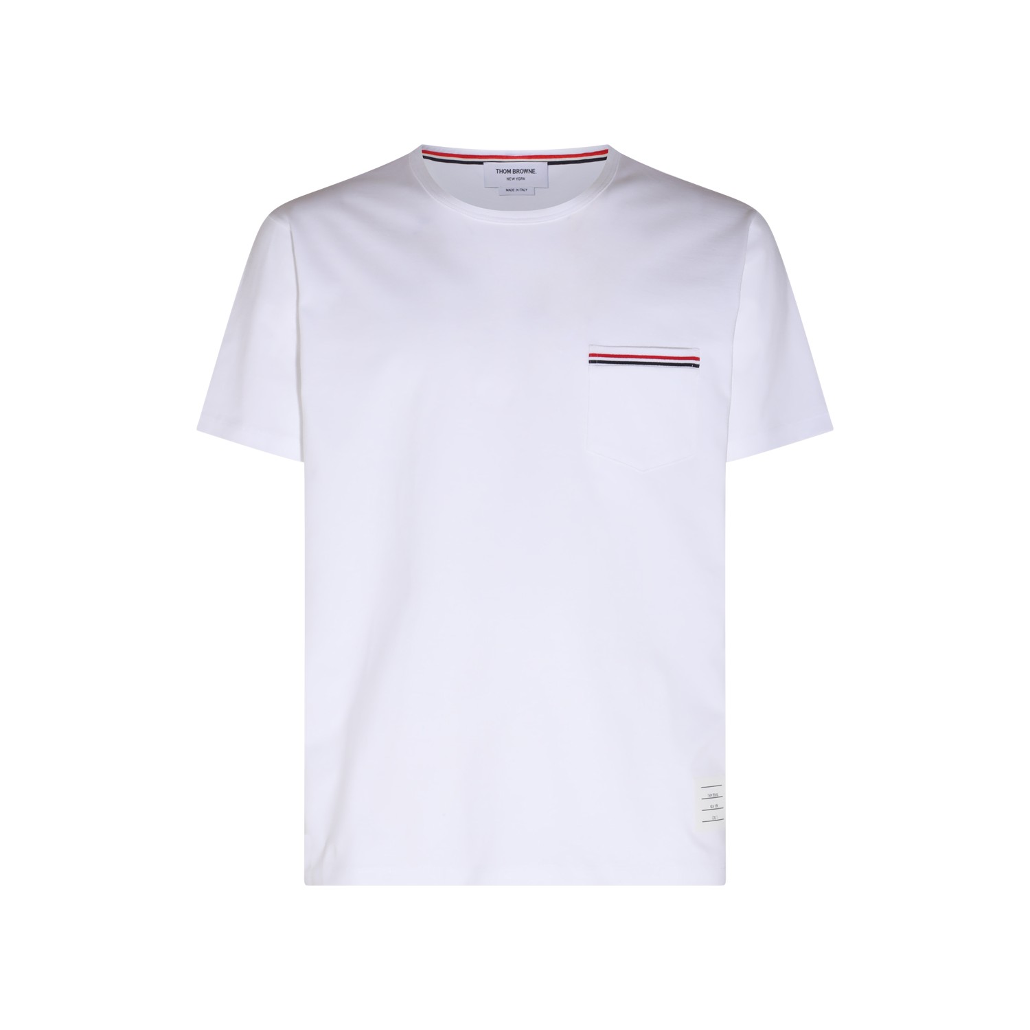 White cotton T-shirt from Thom Browne featuring Rwb pocket trim, crew neck, short sleeves and straight hem.