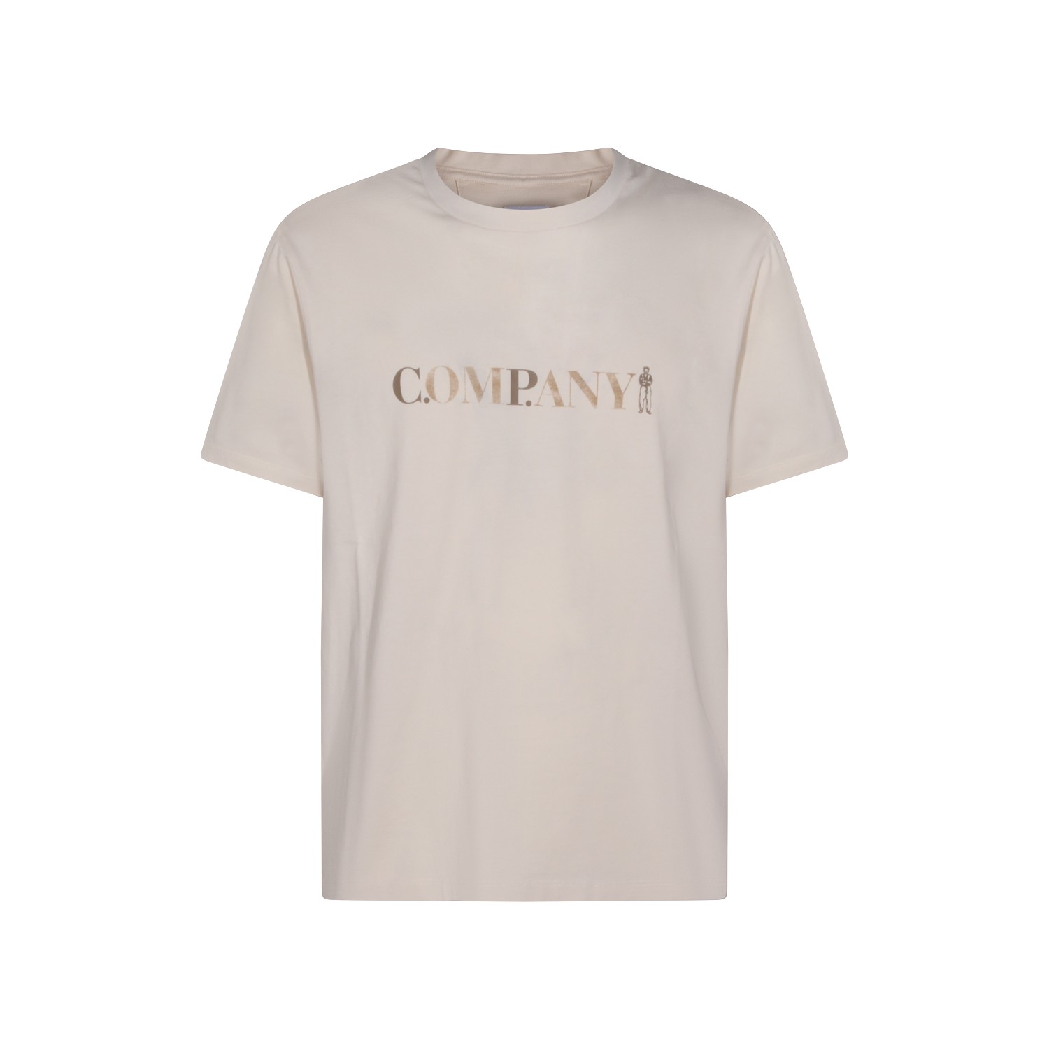 Beige t-shirt from CP Company featuring crew neck, short sleeves, logo print and regular vestibility.
