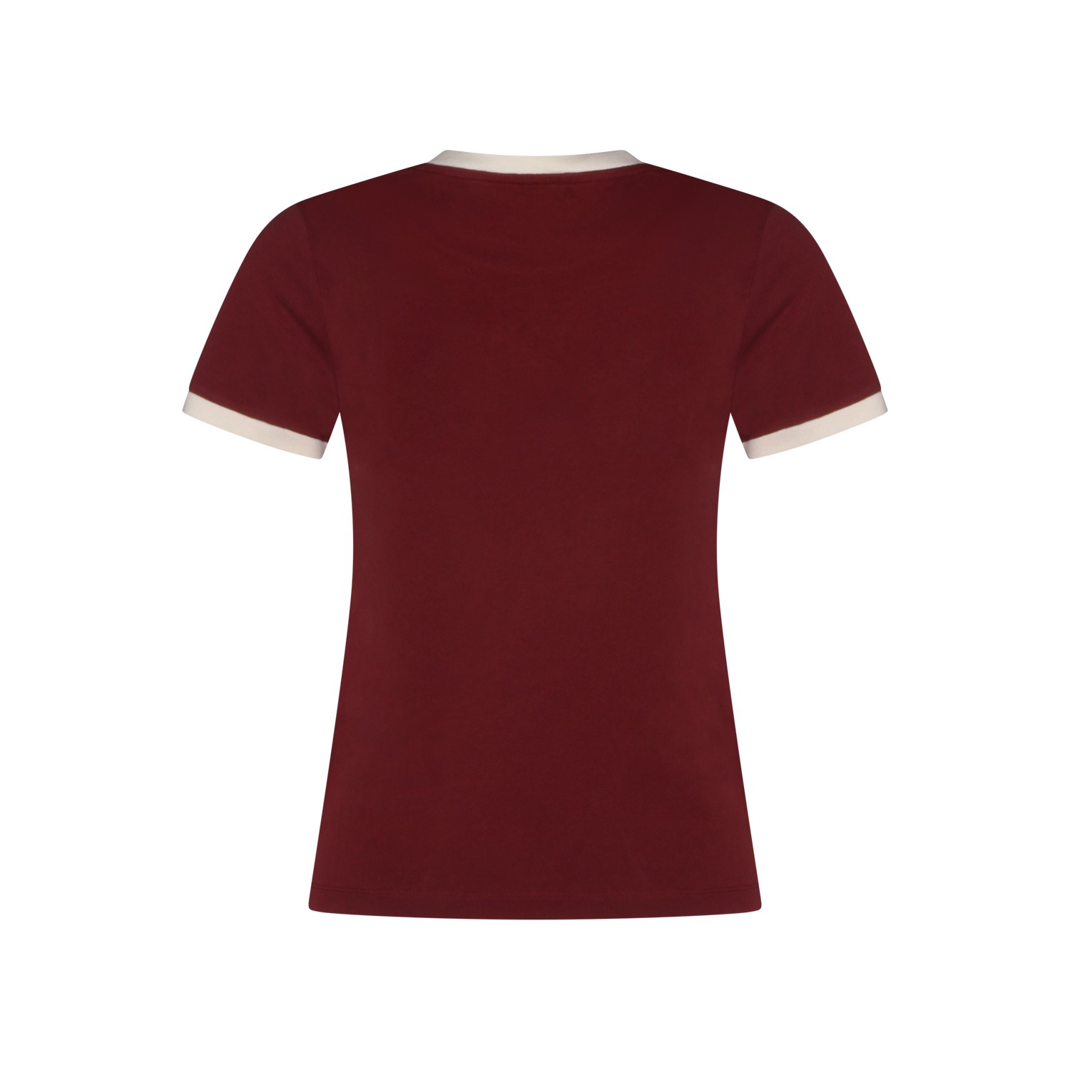 Burgundy cotton t-shirt from Miu Miu featuring crew neck, short sleeves, frontal logo and regular vestibility.