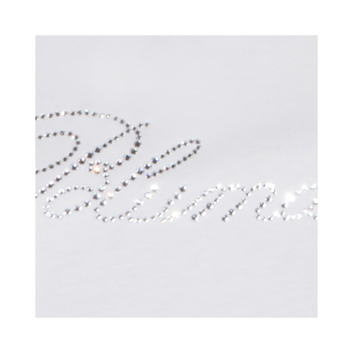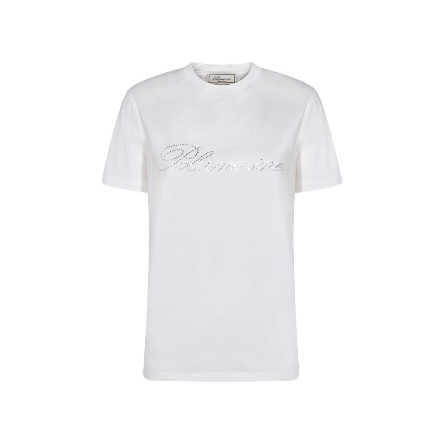 White cotton t-shirt from Blumarine featuring crew neck, short sleeves, logo crystals details and regular vestibility.