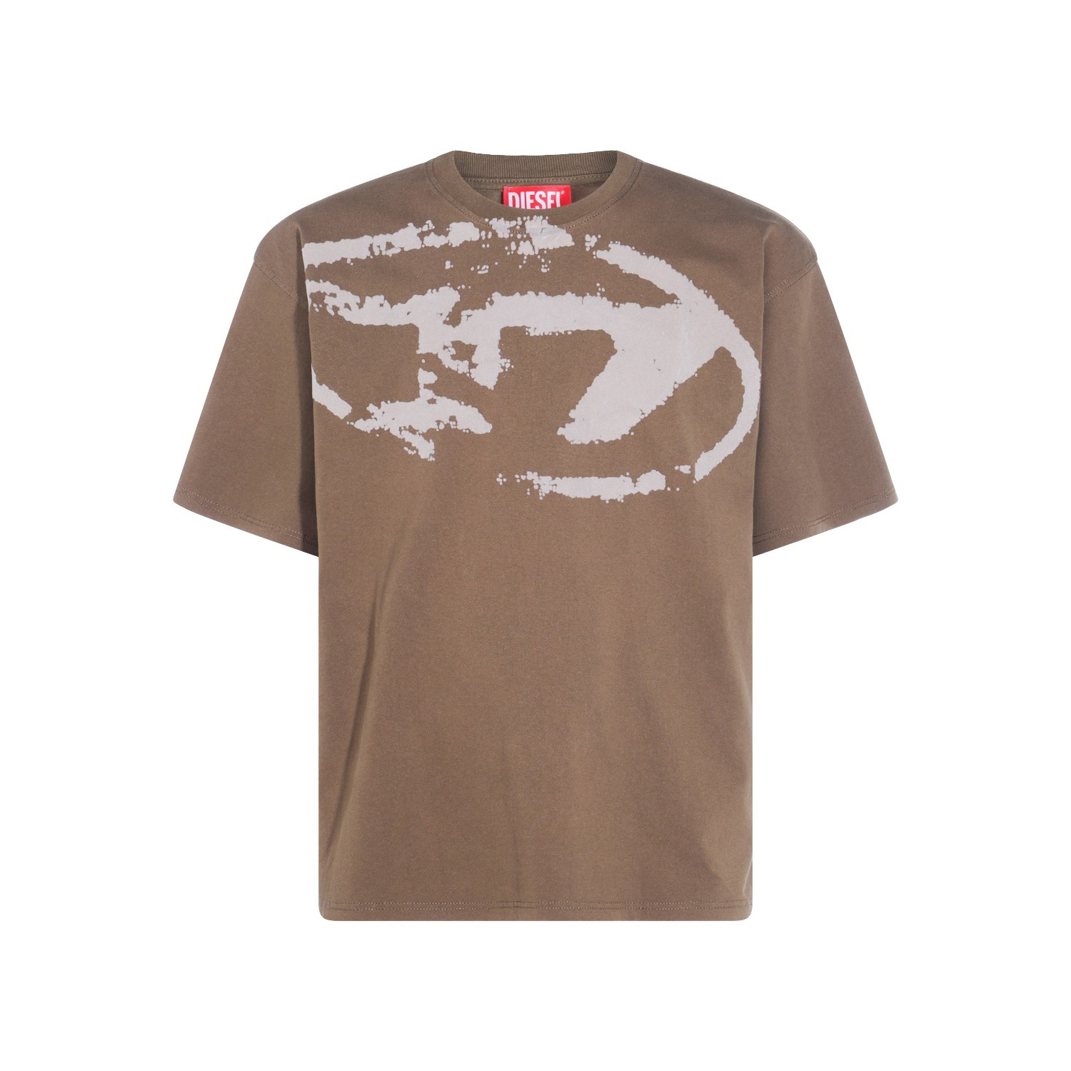 Beige cotton t-shirt from Diesel featuring short sleeves, round collar, print and regular vestibility.