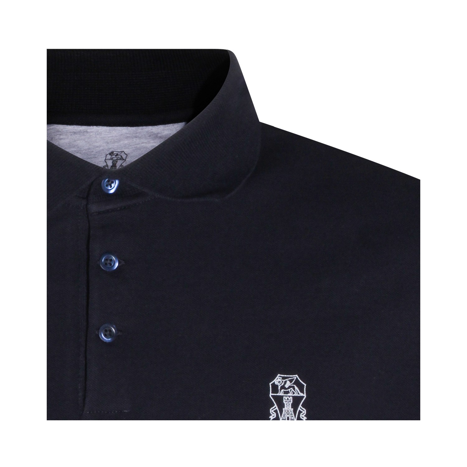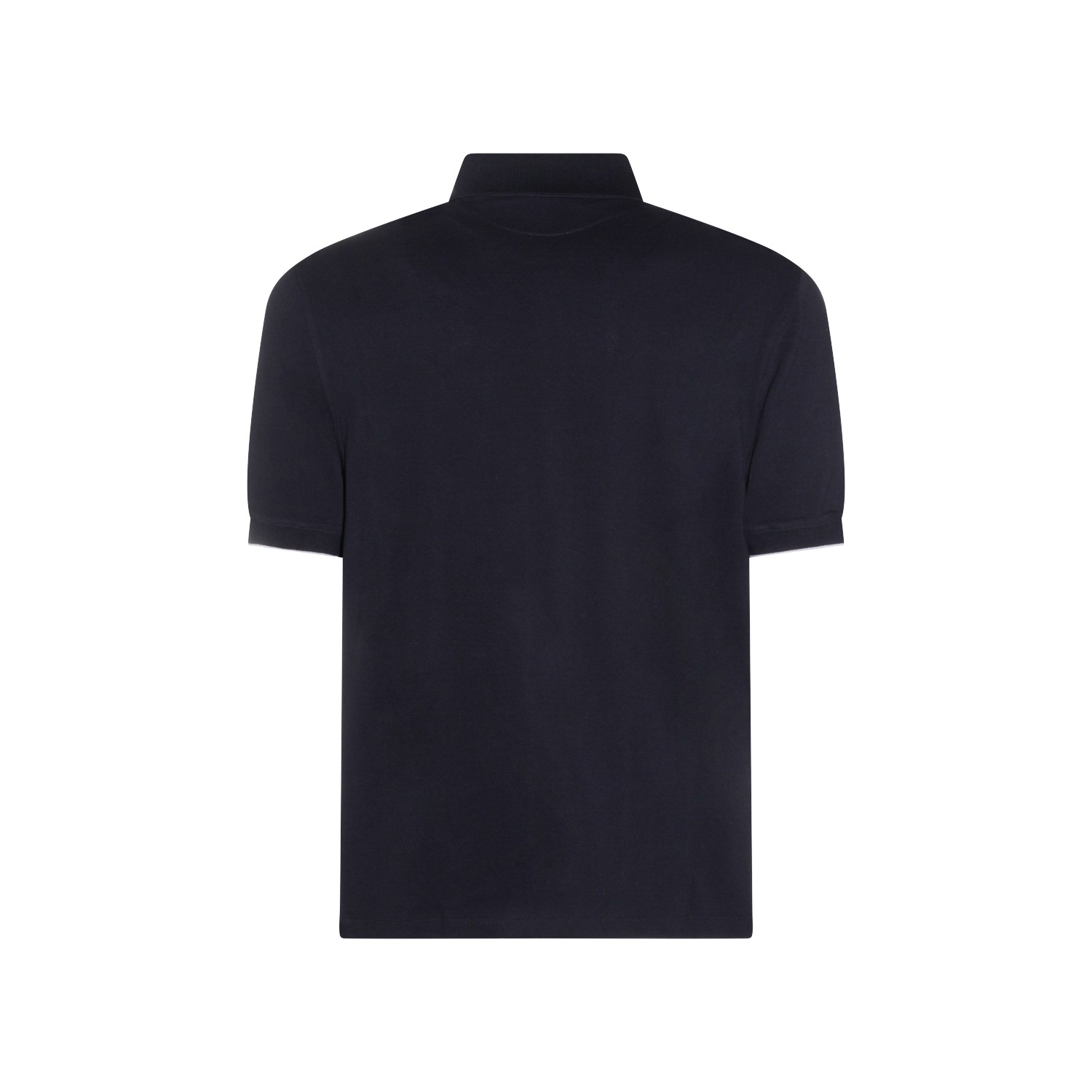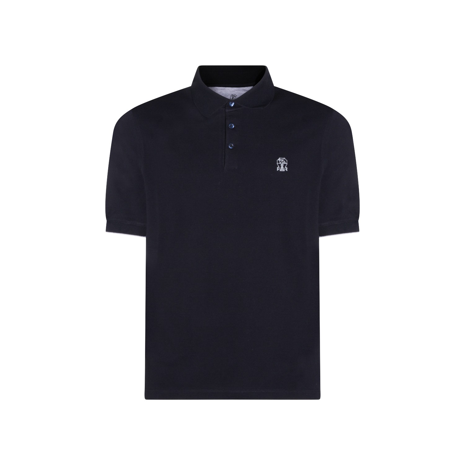 Navy cotton polo shirt from Brunello Cucinelli featuring regular collar, buttons fastening, short sleeves, frontal logo and regular vestibility.