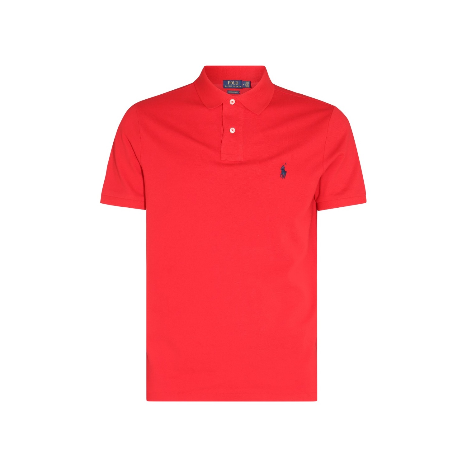 Bright red cotton polo shirt from Polo Ralph Lauren featuring short sleeves, button closure, polo collar and embroidered logo at chest.