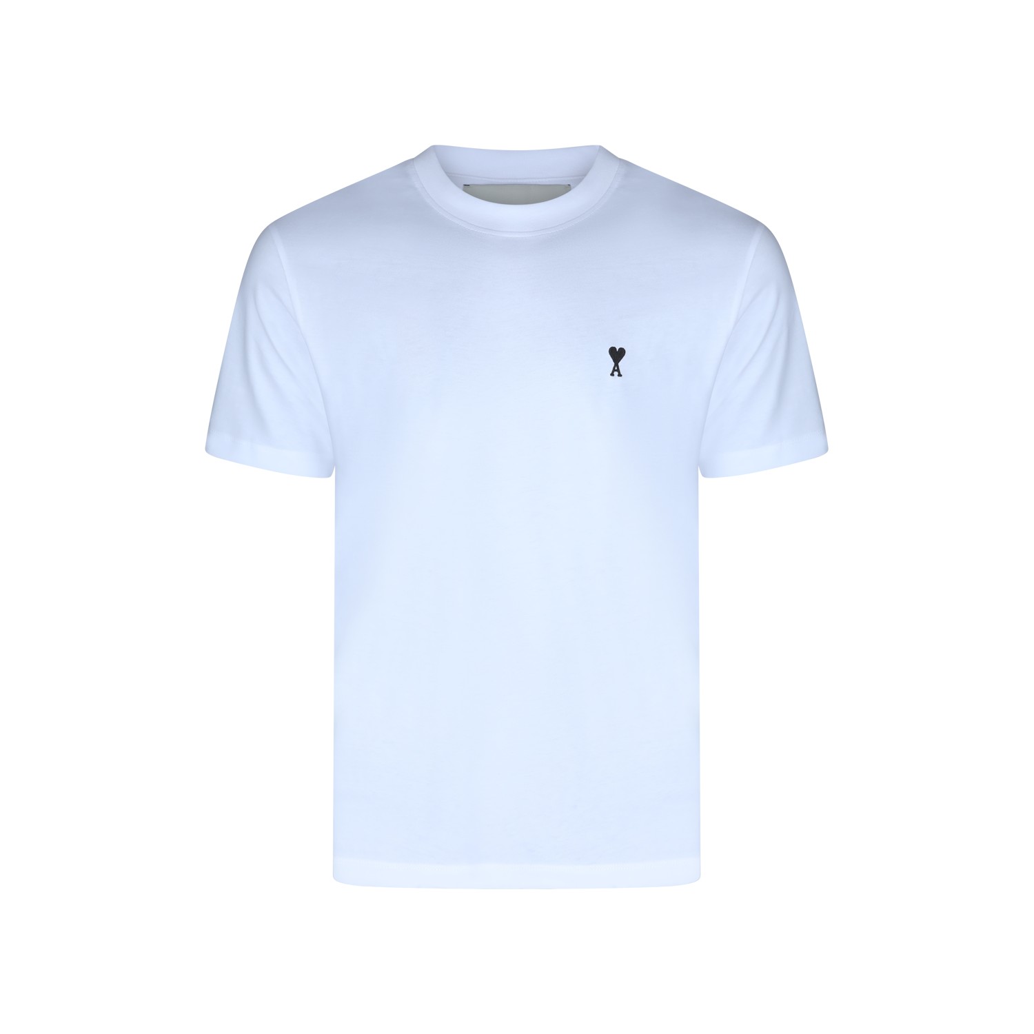 White cotton t-shirt from Ami Paris featuring crew neck, short sleeves, frontal stitched logo and regular vestibility.