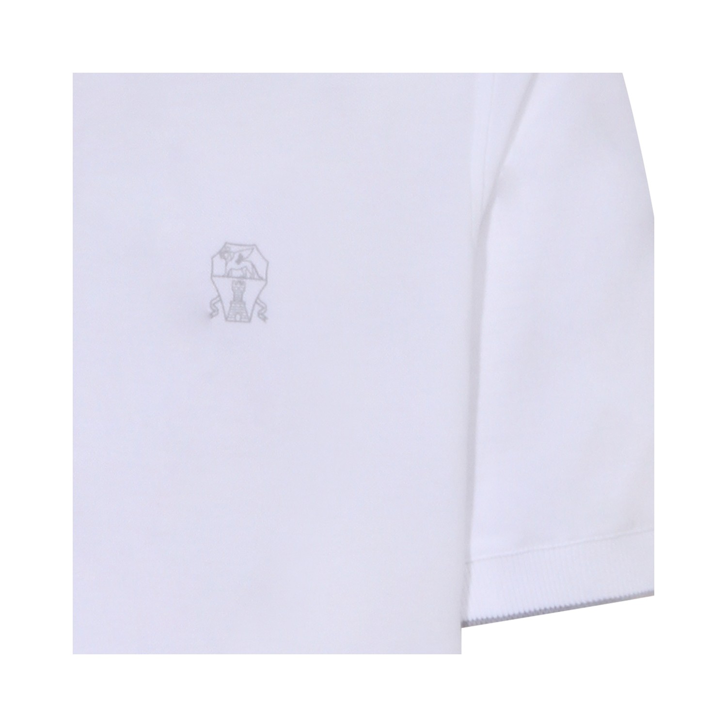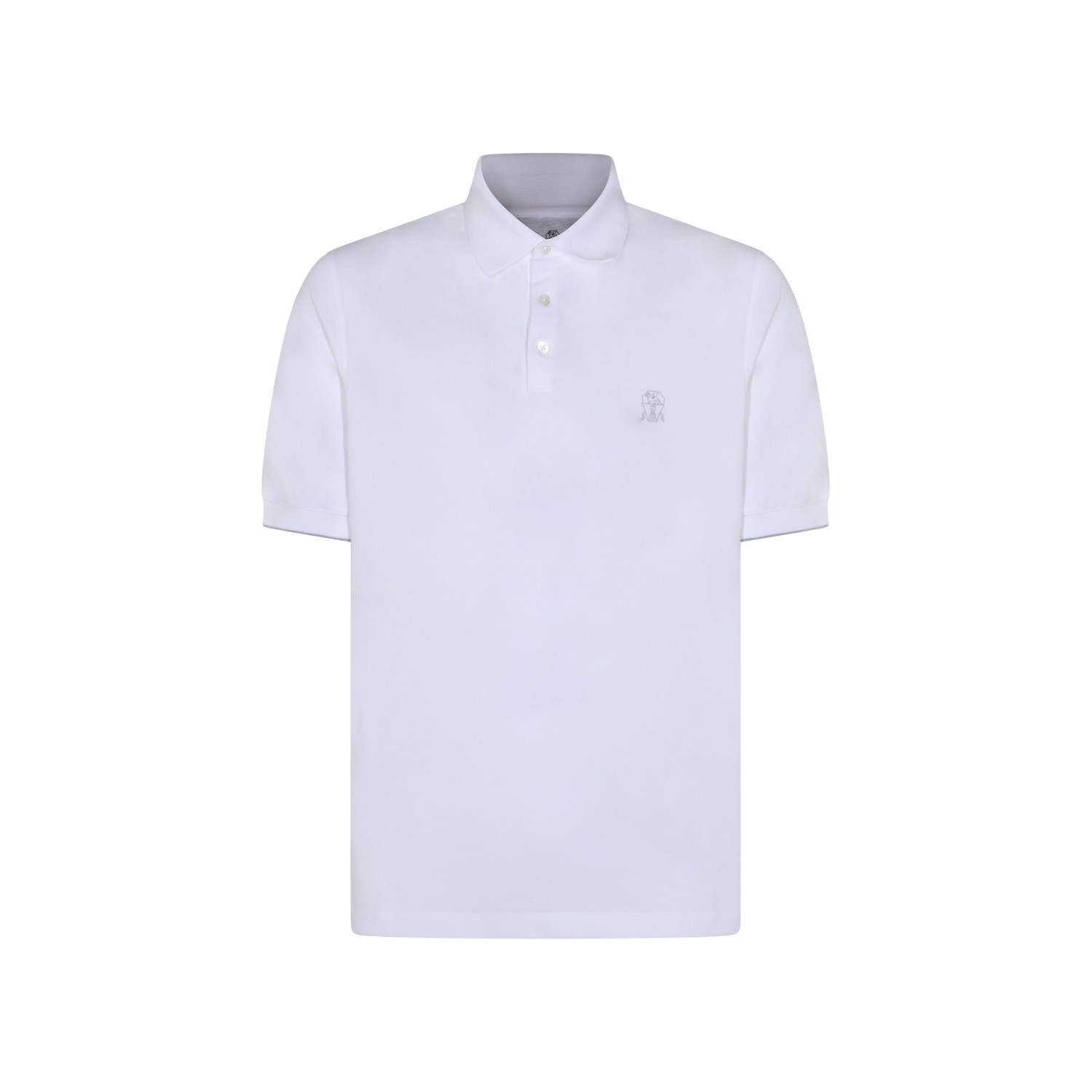 White cotton Logo polo shirt from Brunello Cucinelli featruing short sleeves, half button closure, embroidered logo detail at chest and polo collar.