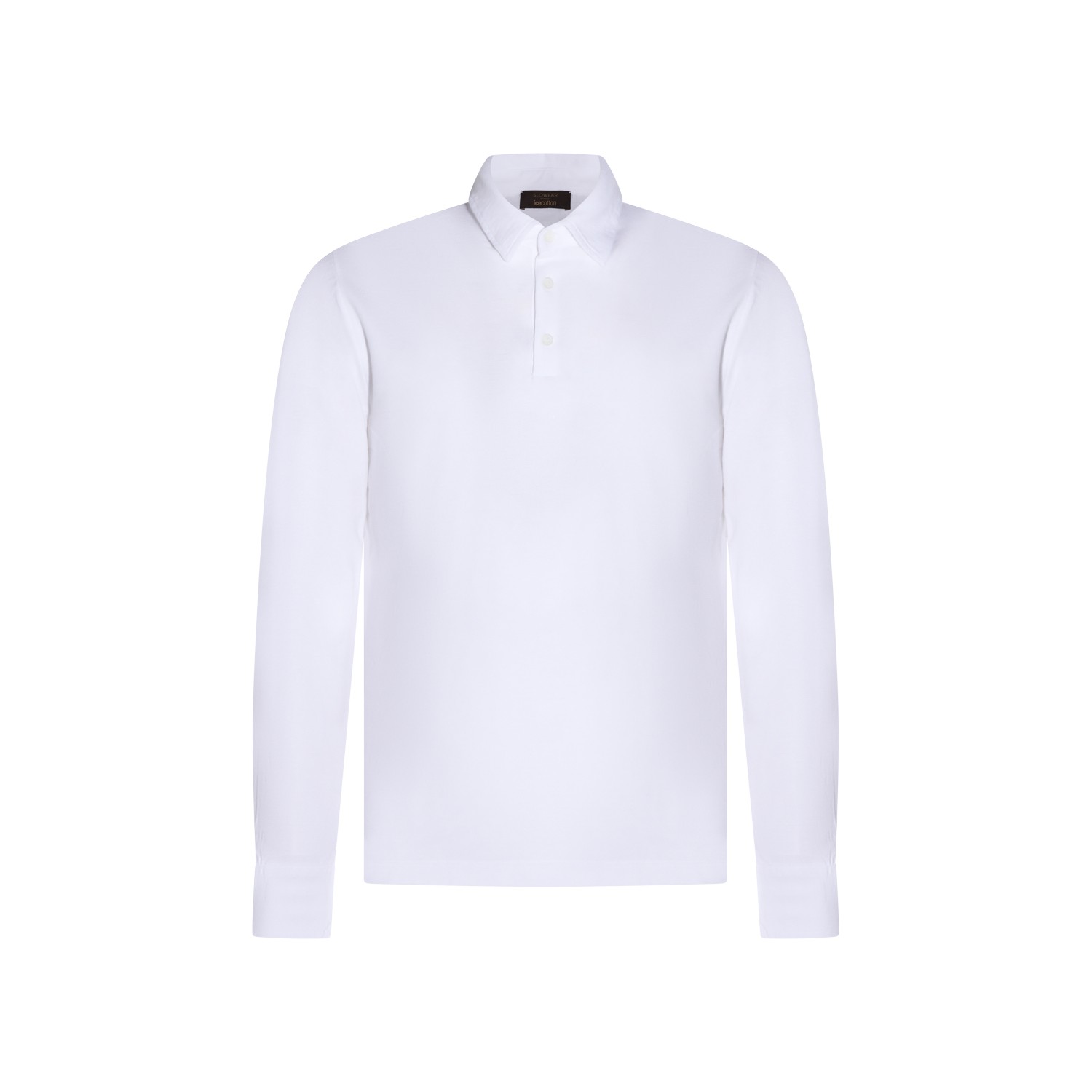 White cotton polo shirt from Zanone featuring classic shirt collar, long sleeves and regular fit.