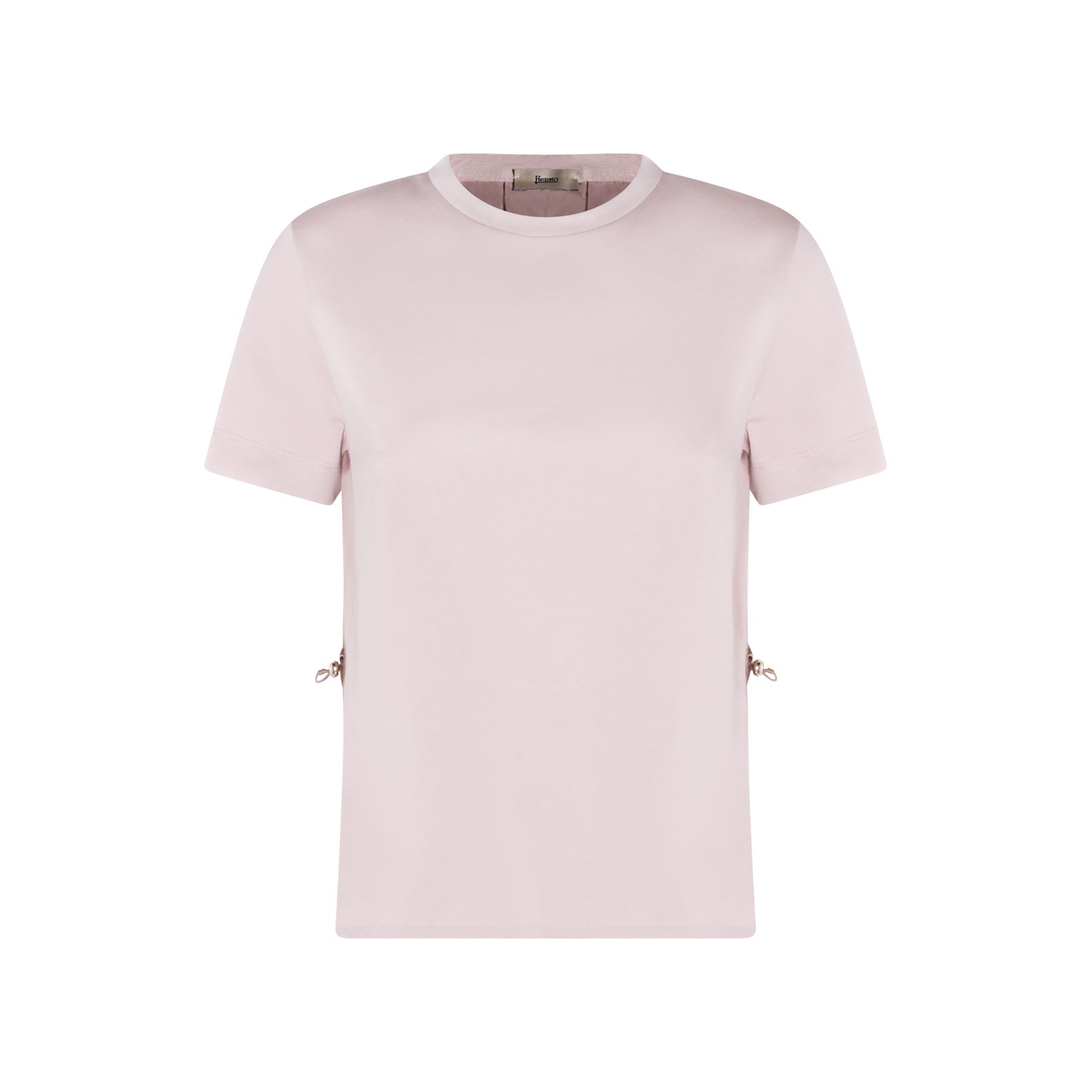 Pink cotton t-shirt from Herno featuring crew neckline, short sleeves, drawstring details and regular fit.