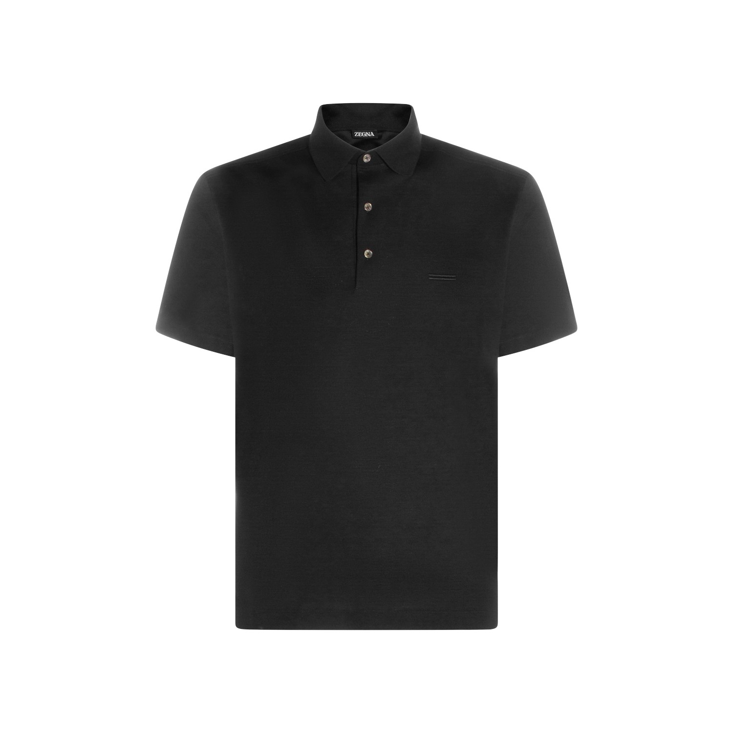 Black cotton polo shirt from Zegna featuring short sleeves, polo shirt collar, buttons fastening and regular vestibility.