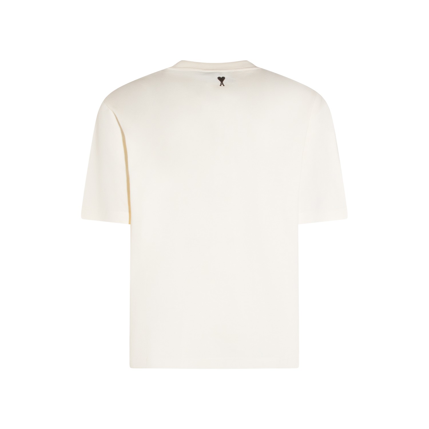 Off white cotton t-shirt from Ami Paris featuring short sleeves, round collar, frontal logo stamp and regular vestibility.