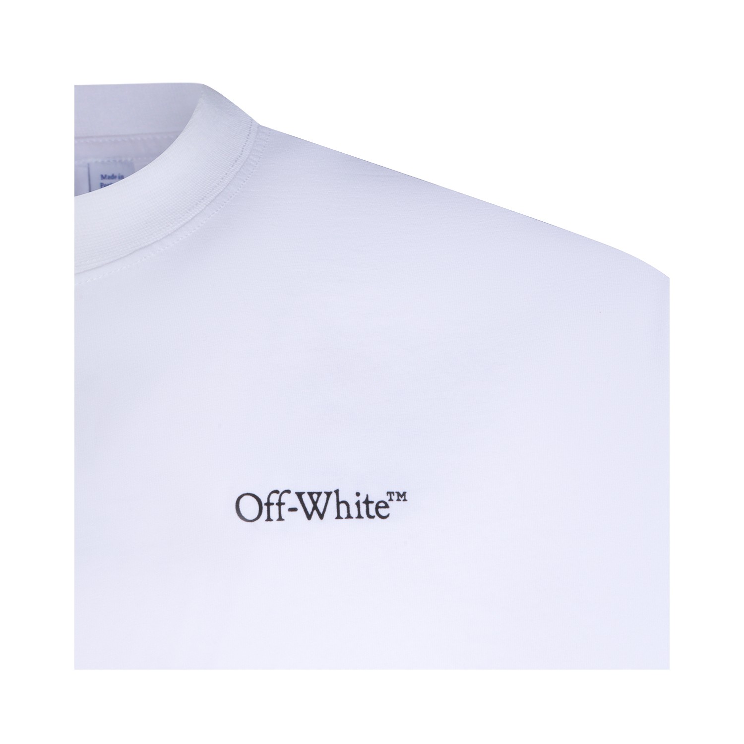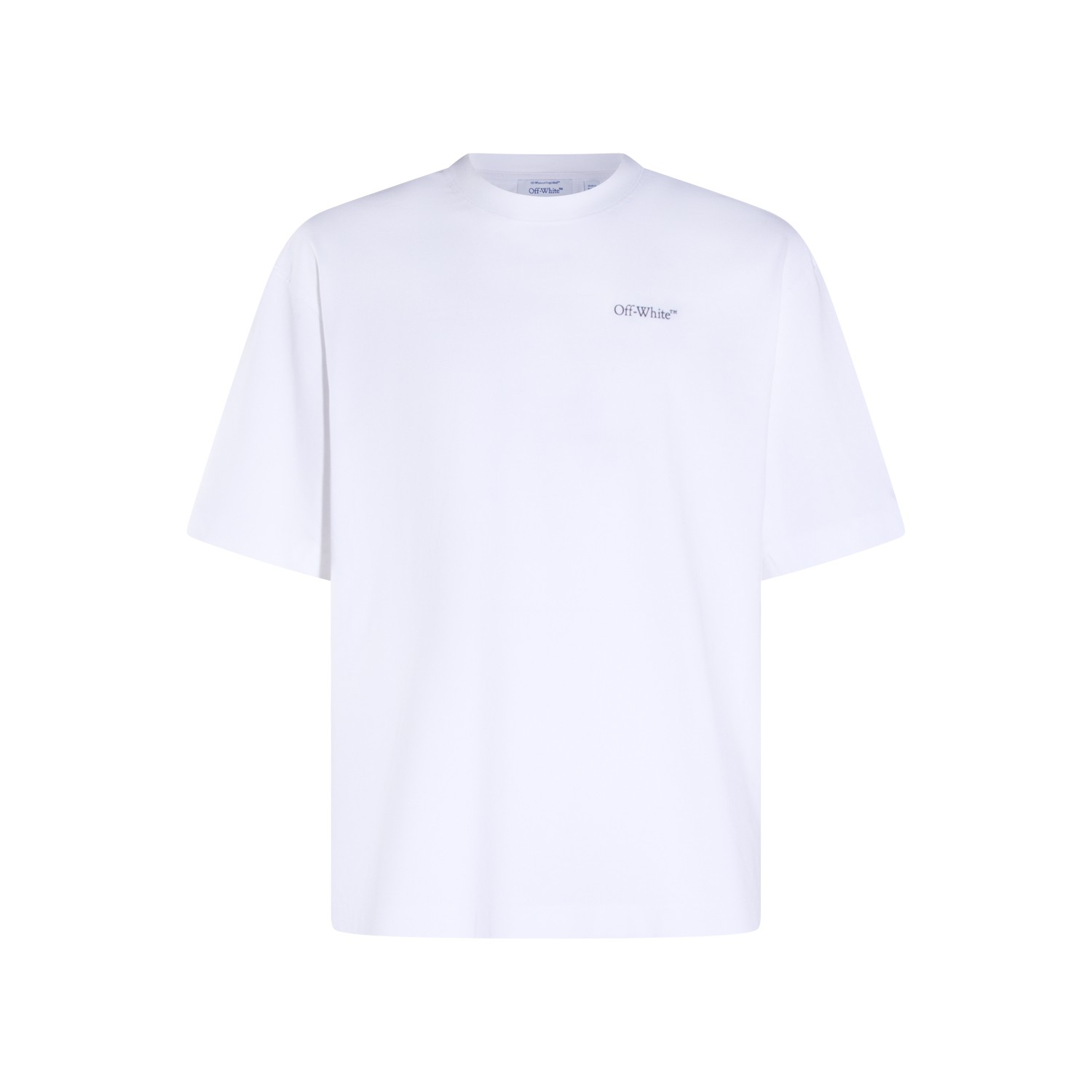 White cotton t-shirt from Off-White featuring short sleeves, round collar, frontal and back logo stamp and regular vestibility.