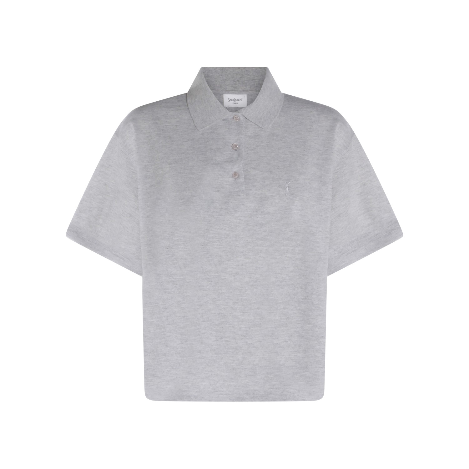 Grey cotton polo shirt from Saint Laurent featuring short sleeves, polo shirt collar, buttons fastening, frontal embroidered logo and regular vestibility.