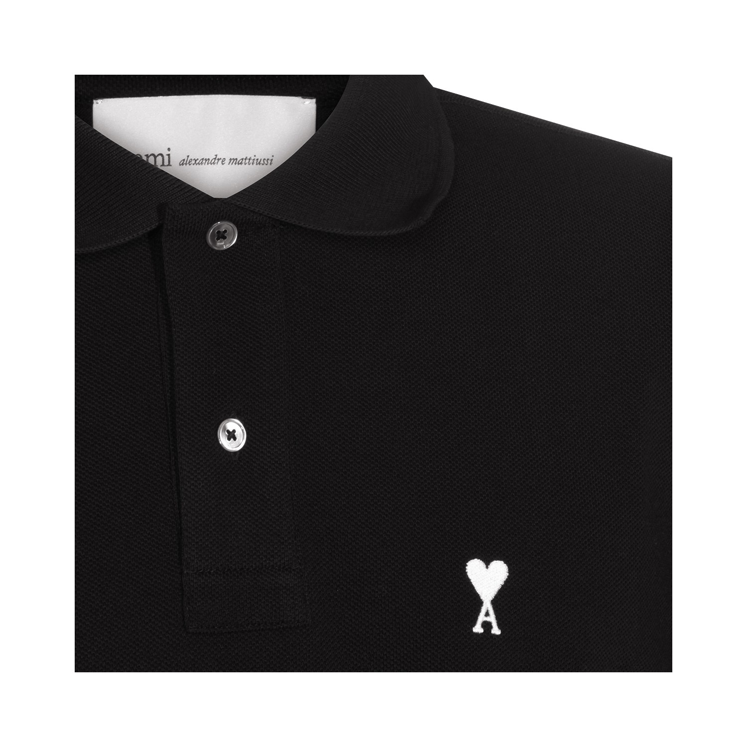Black cotton Ami De Coeur polo shirt from Ami Paris featuring short sleeves, half button closure, regular fit, straight hem and embroidered logo at chest.