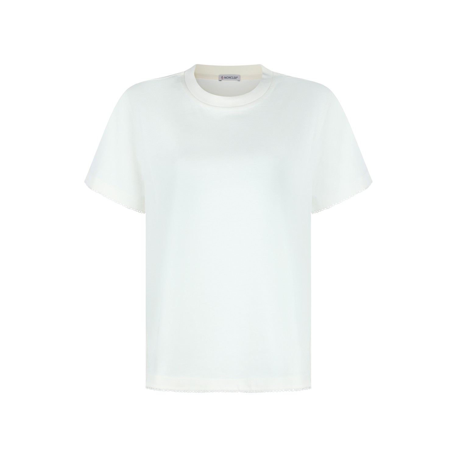 White cotton T-Shirt from Moncler featuring short sleeves, round neck, straight hem and classic fit.
