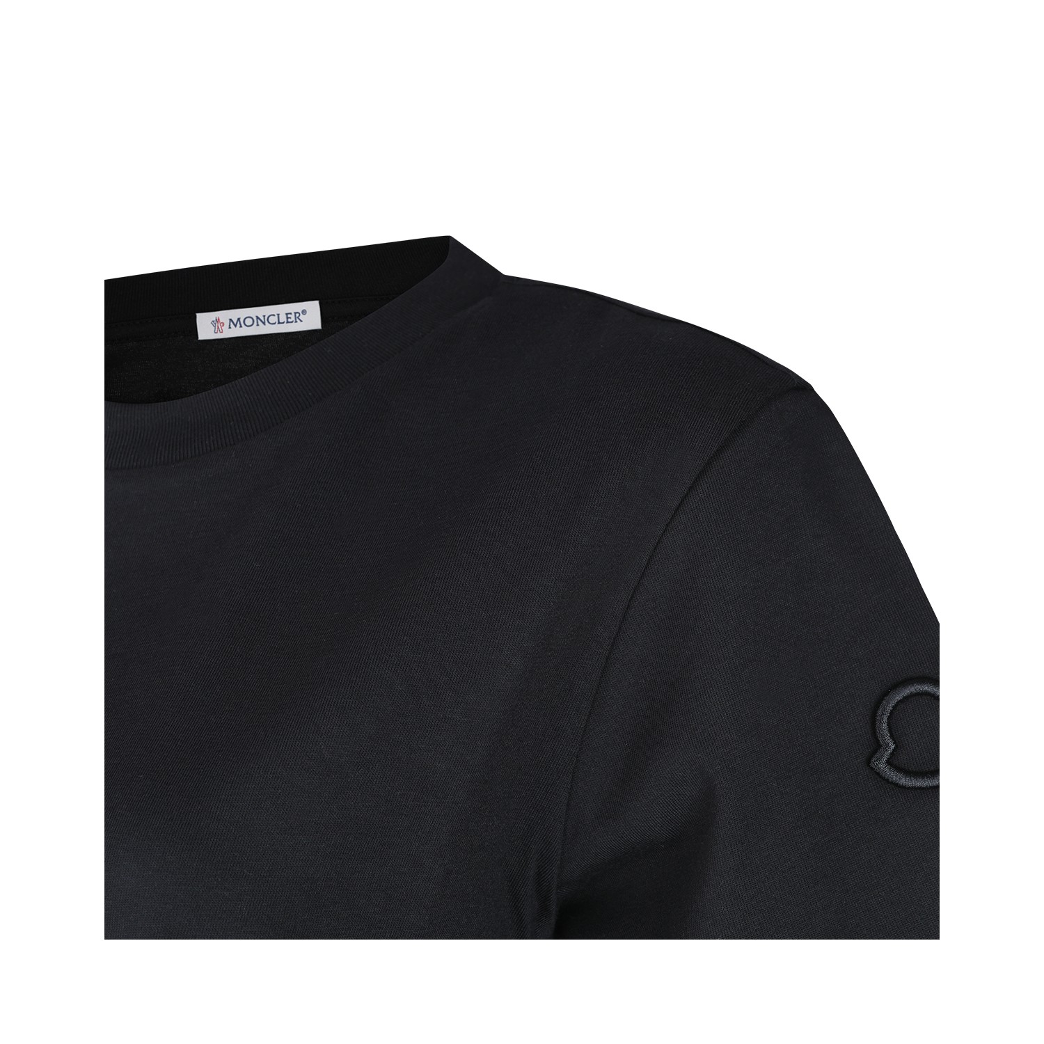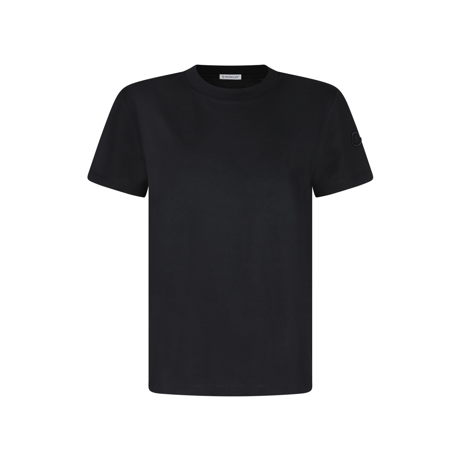Black cotton T-shirt from Moncler featuring short sleeves, round neck, straight hem and regular fit.