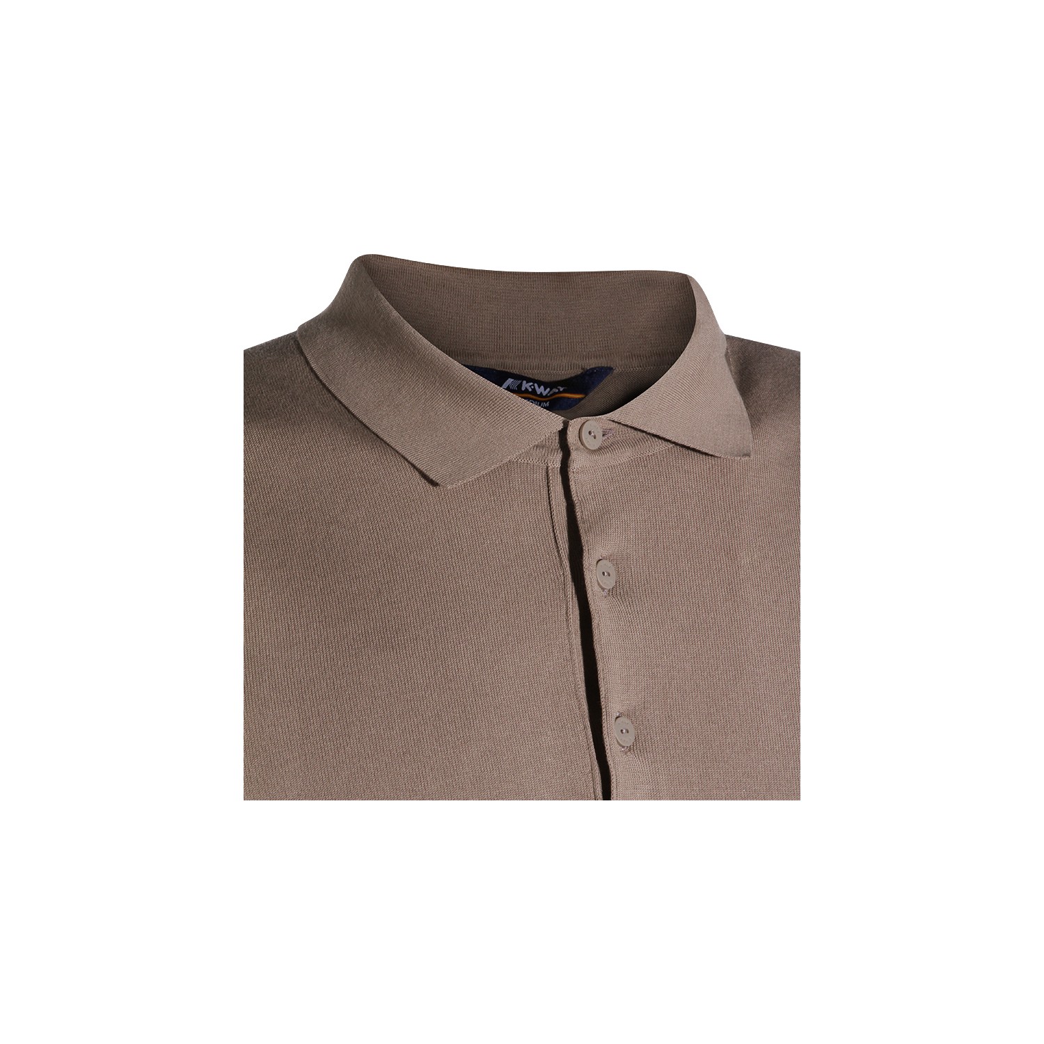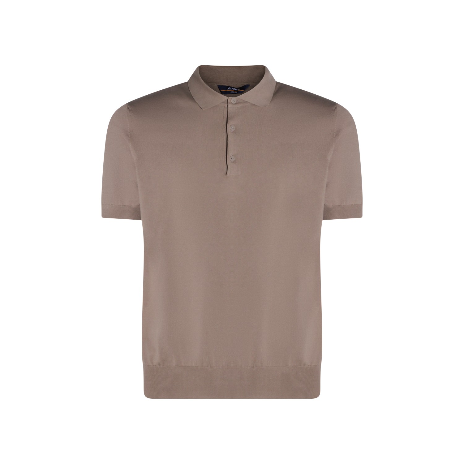 Beige taupe cotton polo shirt from K-Way featuring short sleeves, ribbed hems, stretch fit and half button closure.