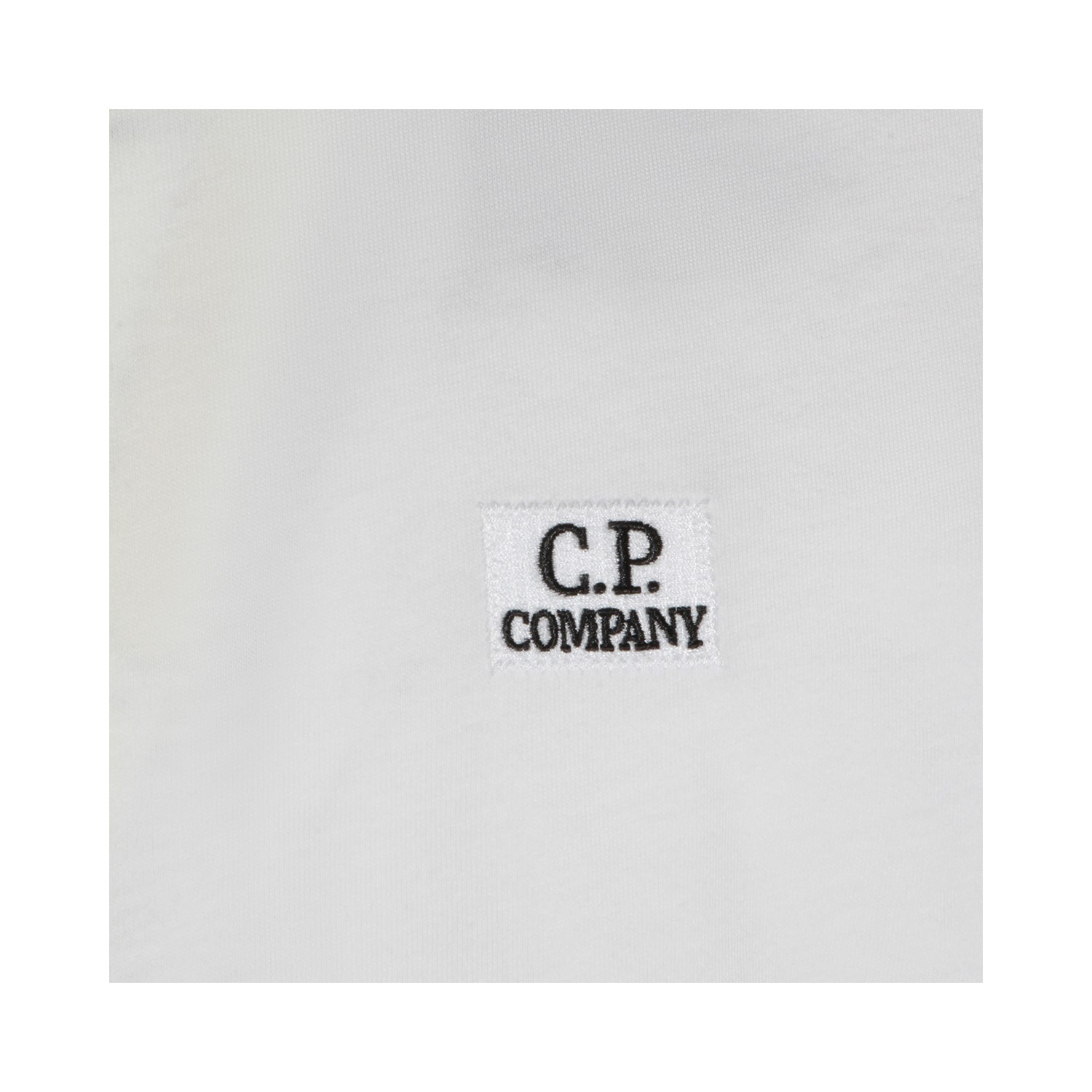 Gauze white cotton T-Shirt from CP Company featuring round neck, straight hem, regualr fit and embroidered logo detail at chest.