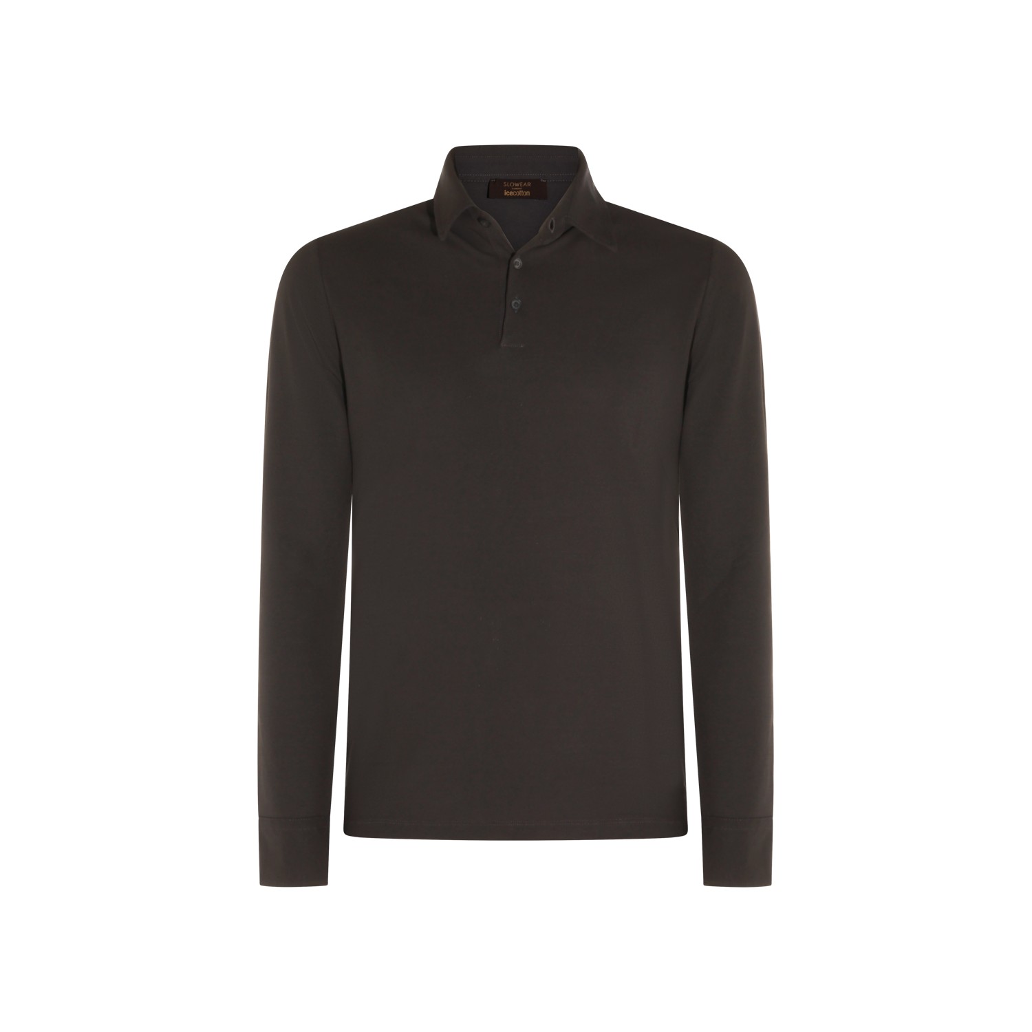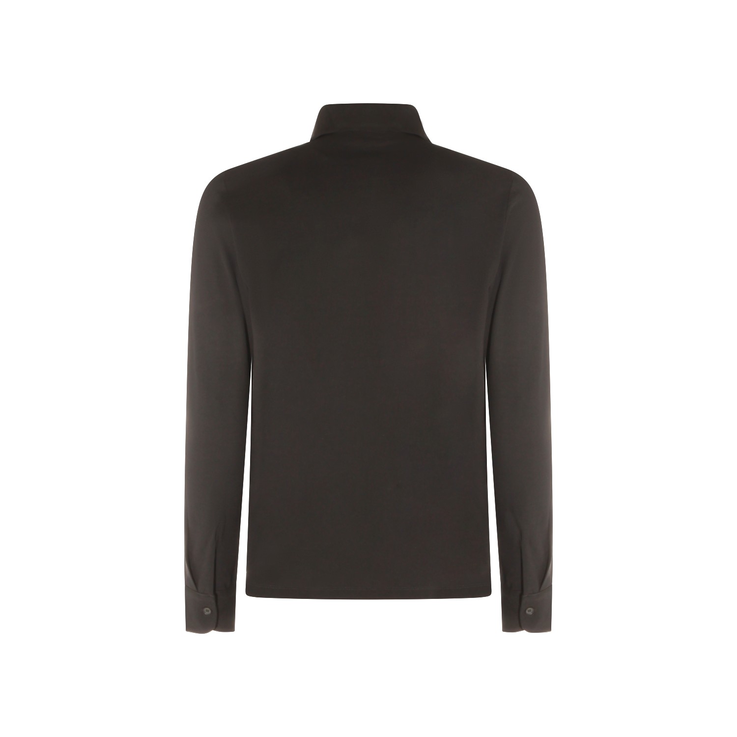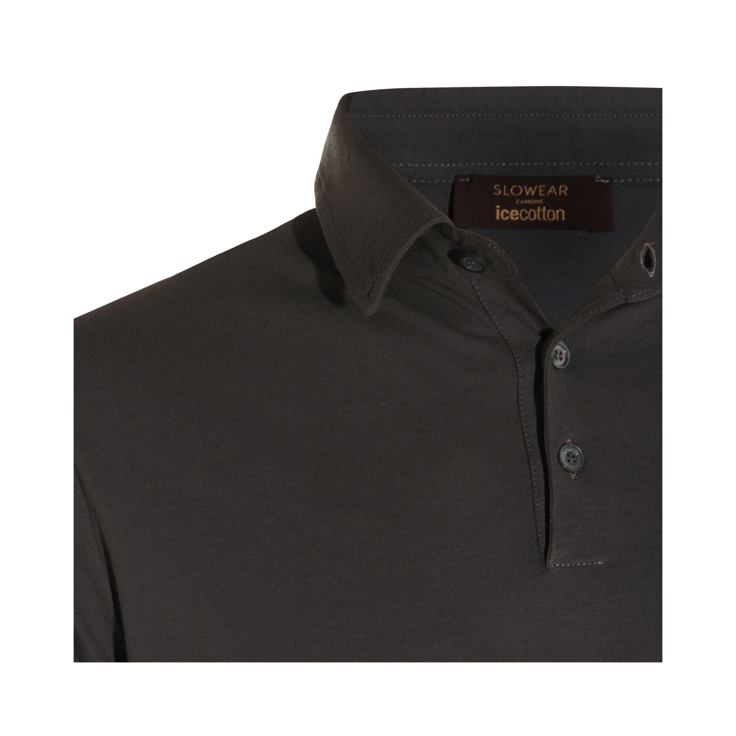 Dark grey cotton polo shirt from Zanone featuring long sleeves, half button closure, straight hem and regular fit.