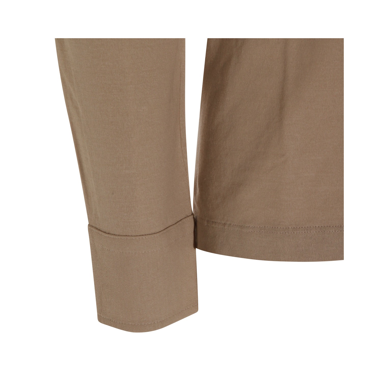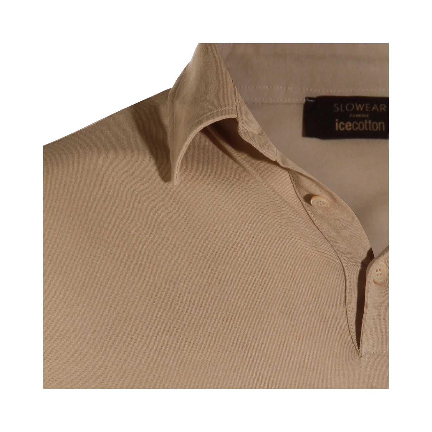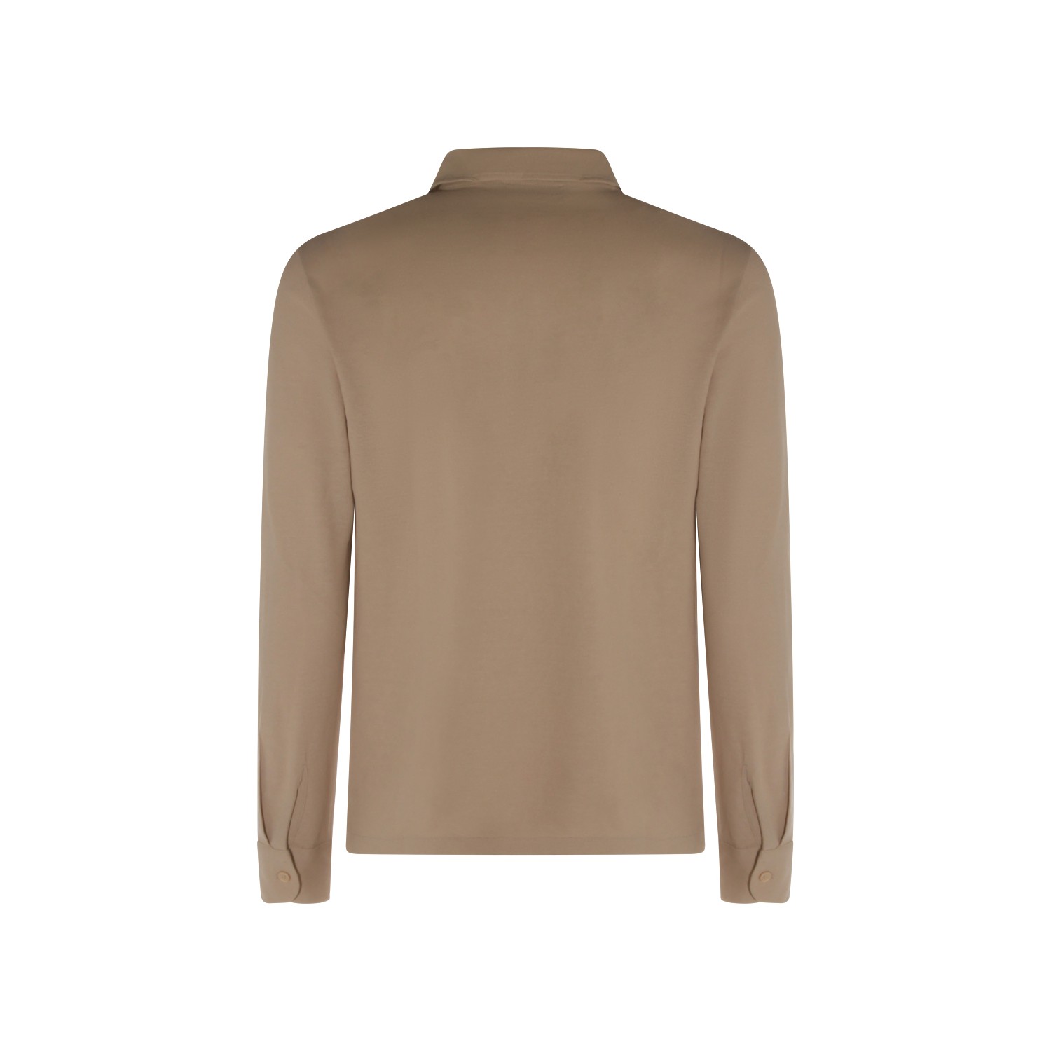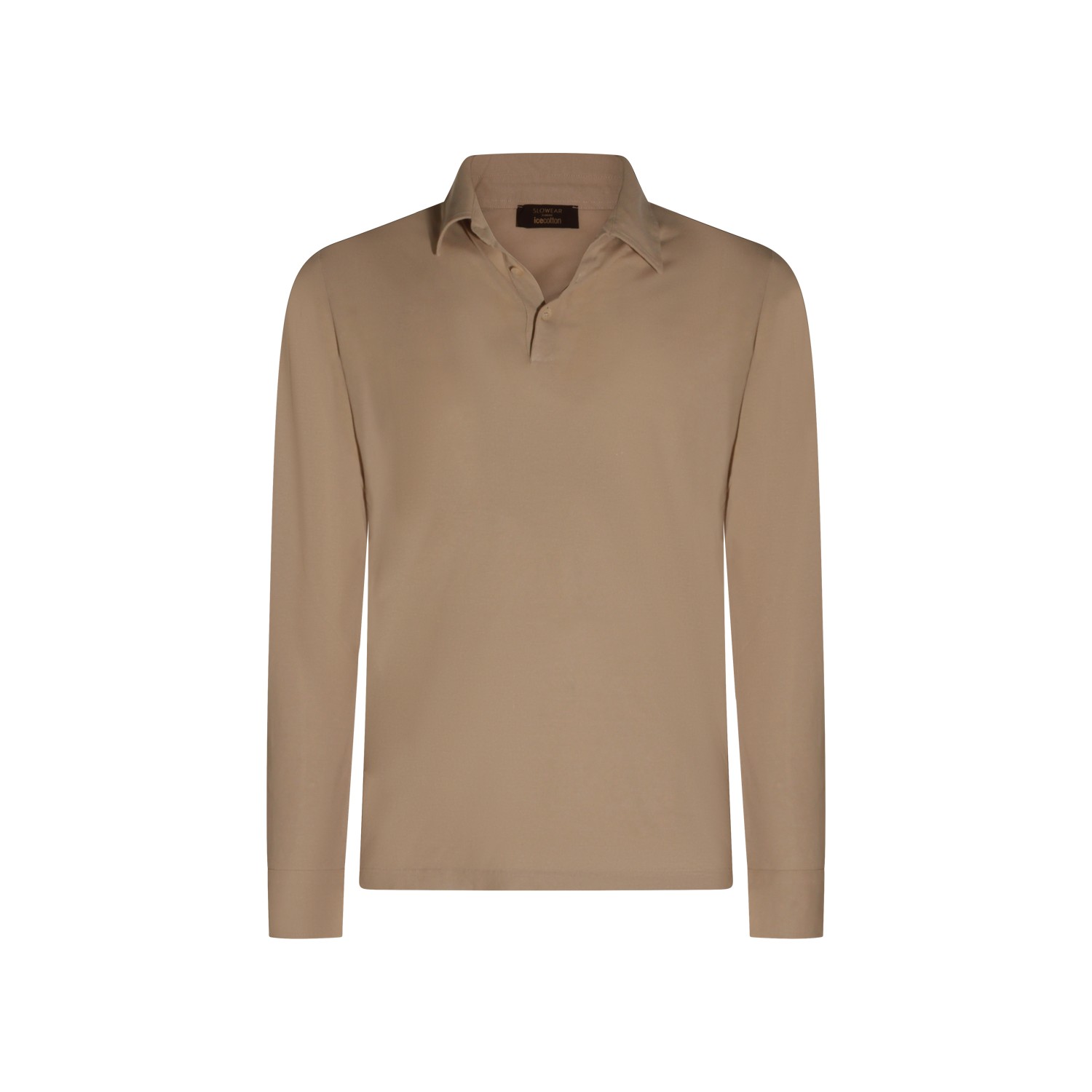 Brown cotton polo shirt from Zanone featuring long sleeves, half button closure, straight hem and regular fit.