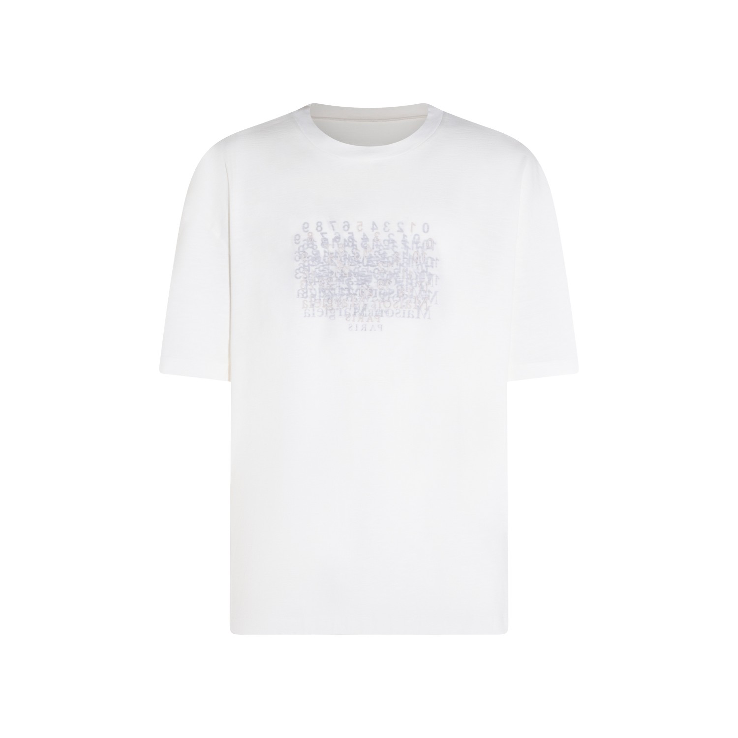 White cotton t-shirt from Maison Margiela featuring crew neckline, short sleeves, logo to the front and regular vestibility.
