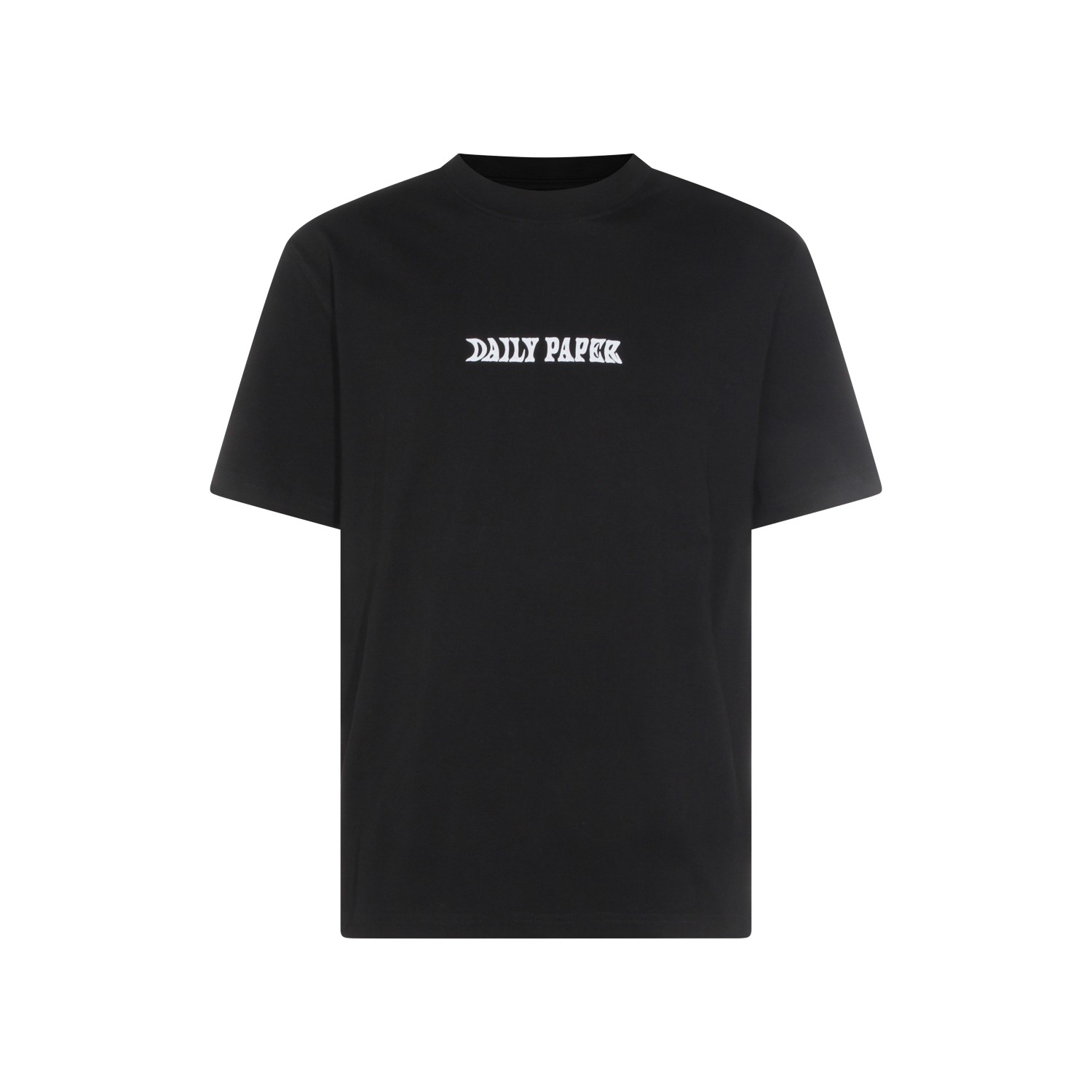 Black cotton t-shirt from Daily Paper featuring crew neck, short sleeves, logo and regular fit.