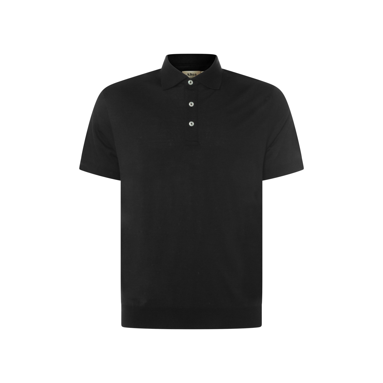 Black polo shirt from Altea featuring buttoned collar, short sleeves and regular fit.