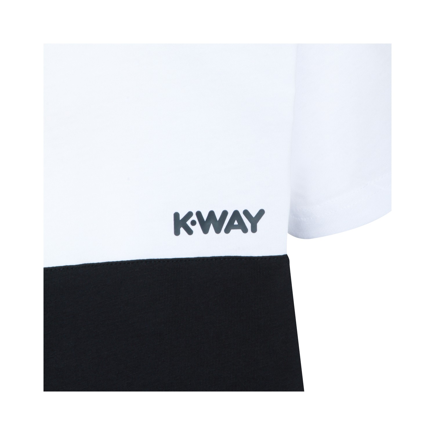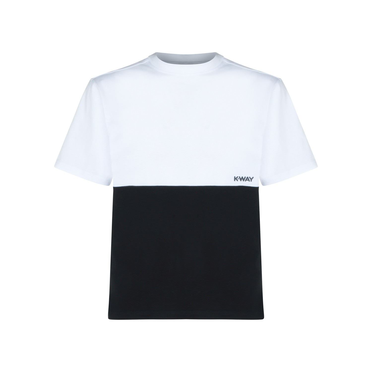 White and black cotton t-sirt from K-Way featuring round collar, short sleeves and color block.