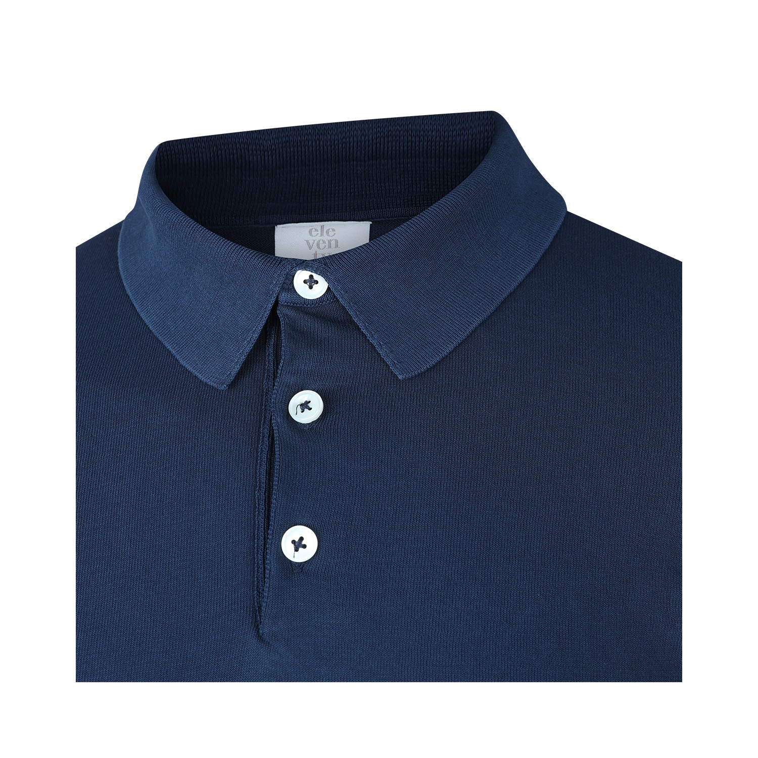Blu cotton polo shirt from Eleventy featuring short sleeves, half button closure, polo collar and slim fit.