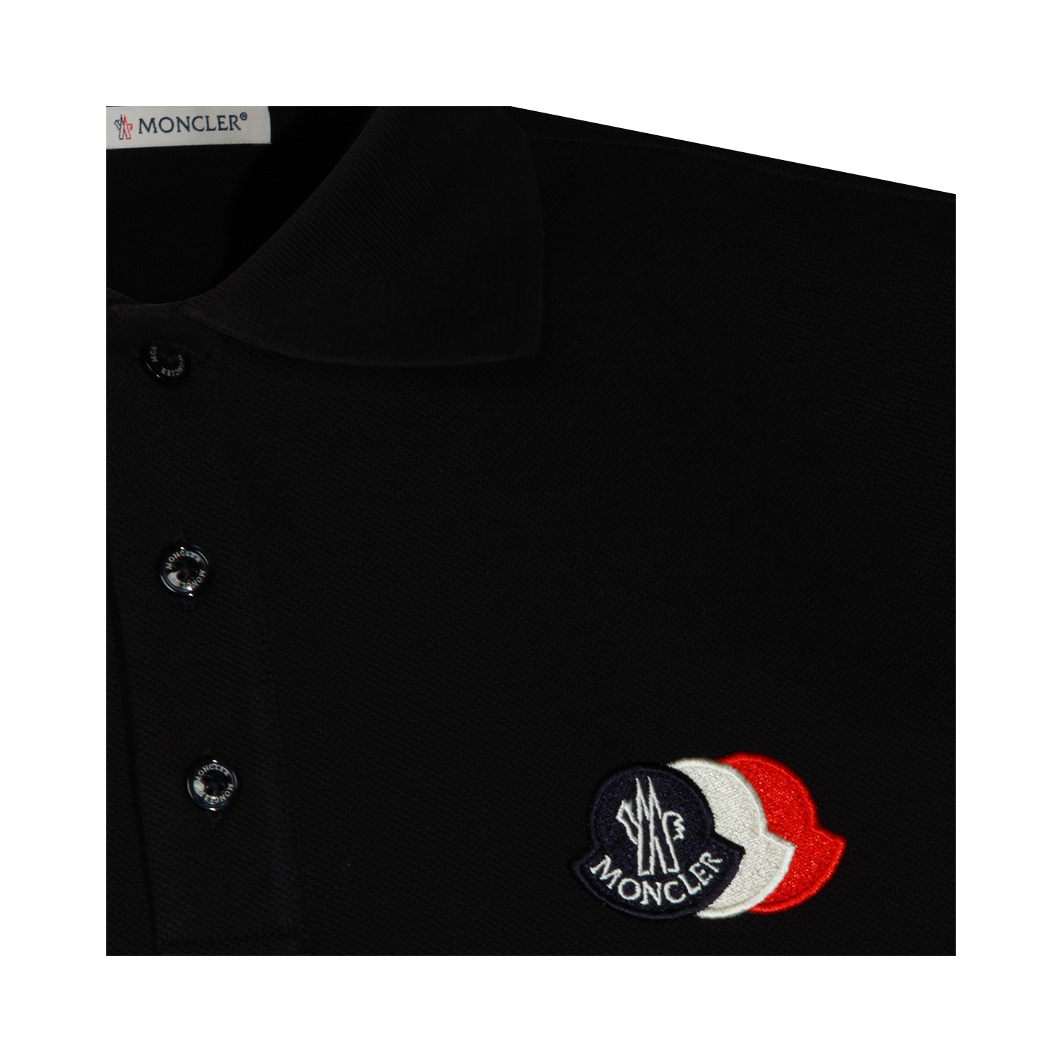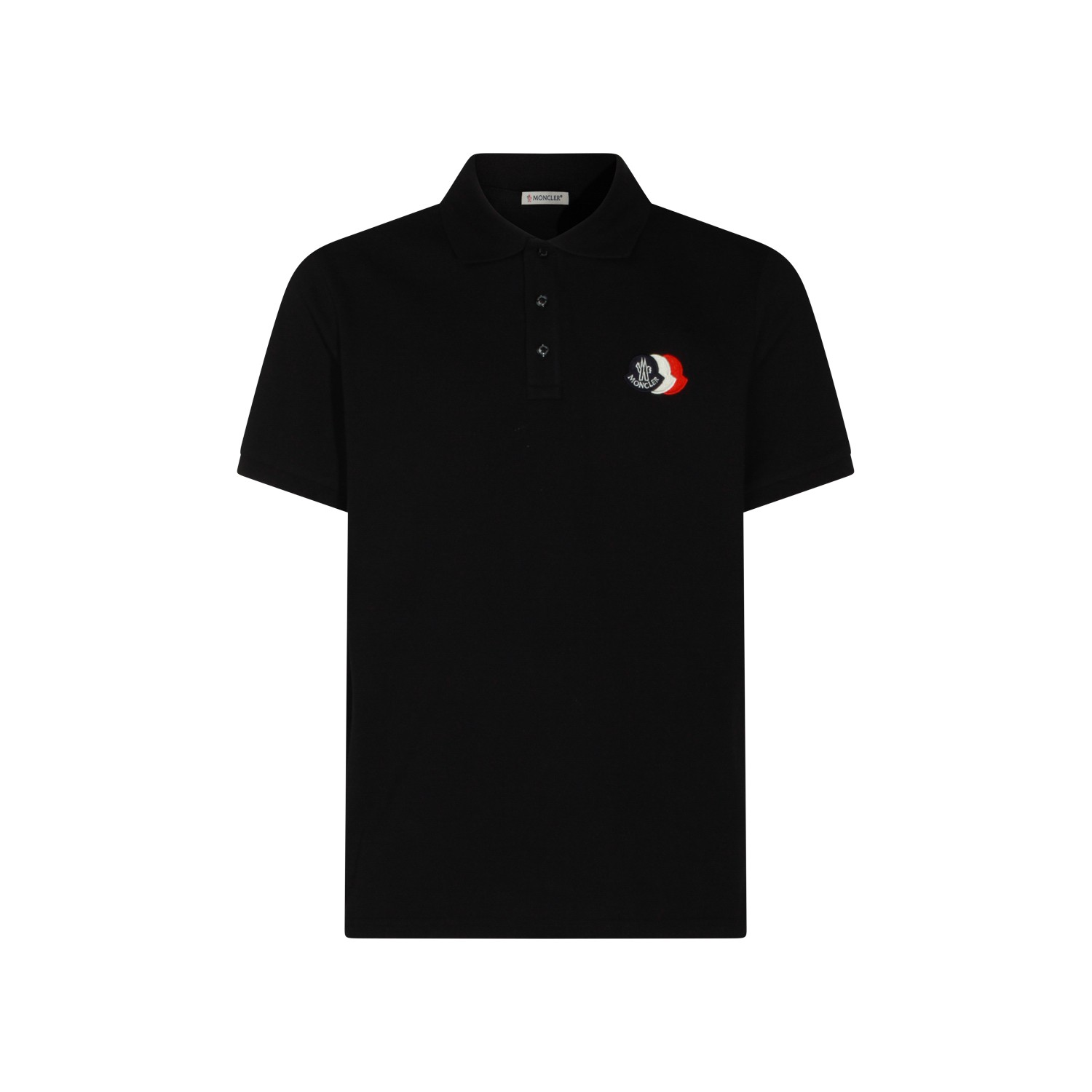 Navy cotton polo shirt from Moncler with short sleeves, half button closure, logo patch at chest and regular fit.