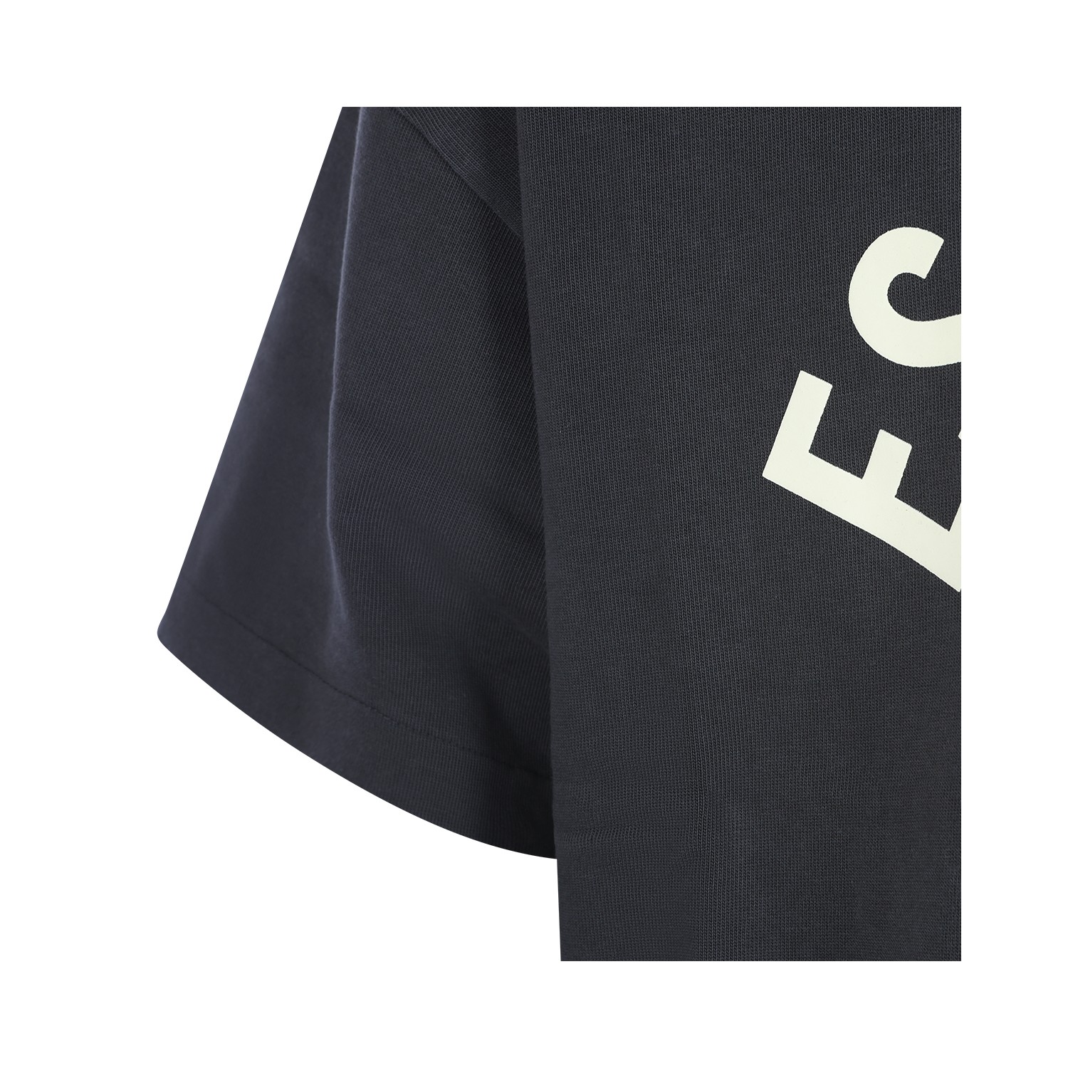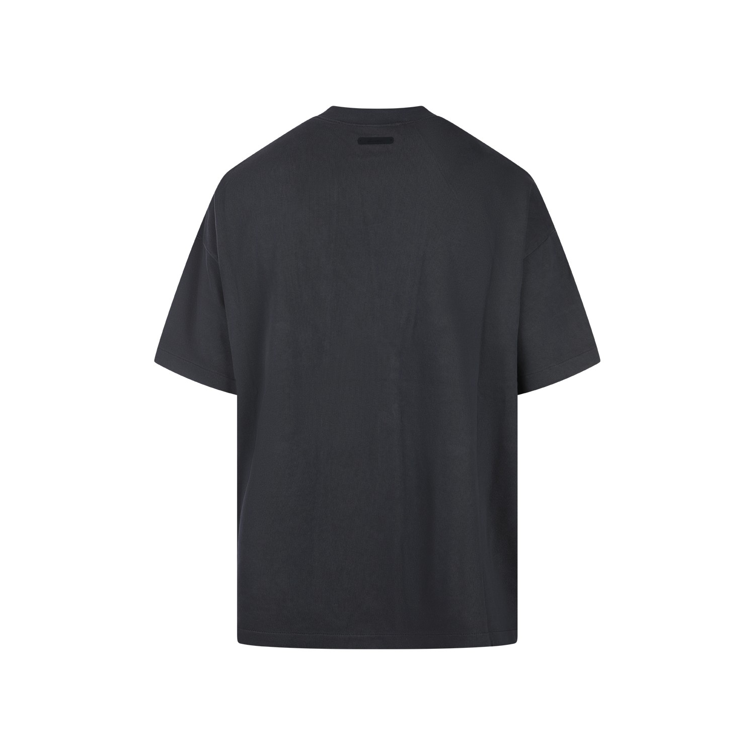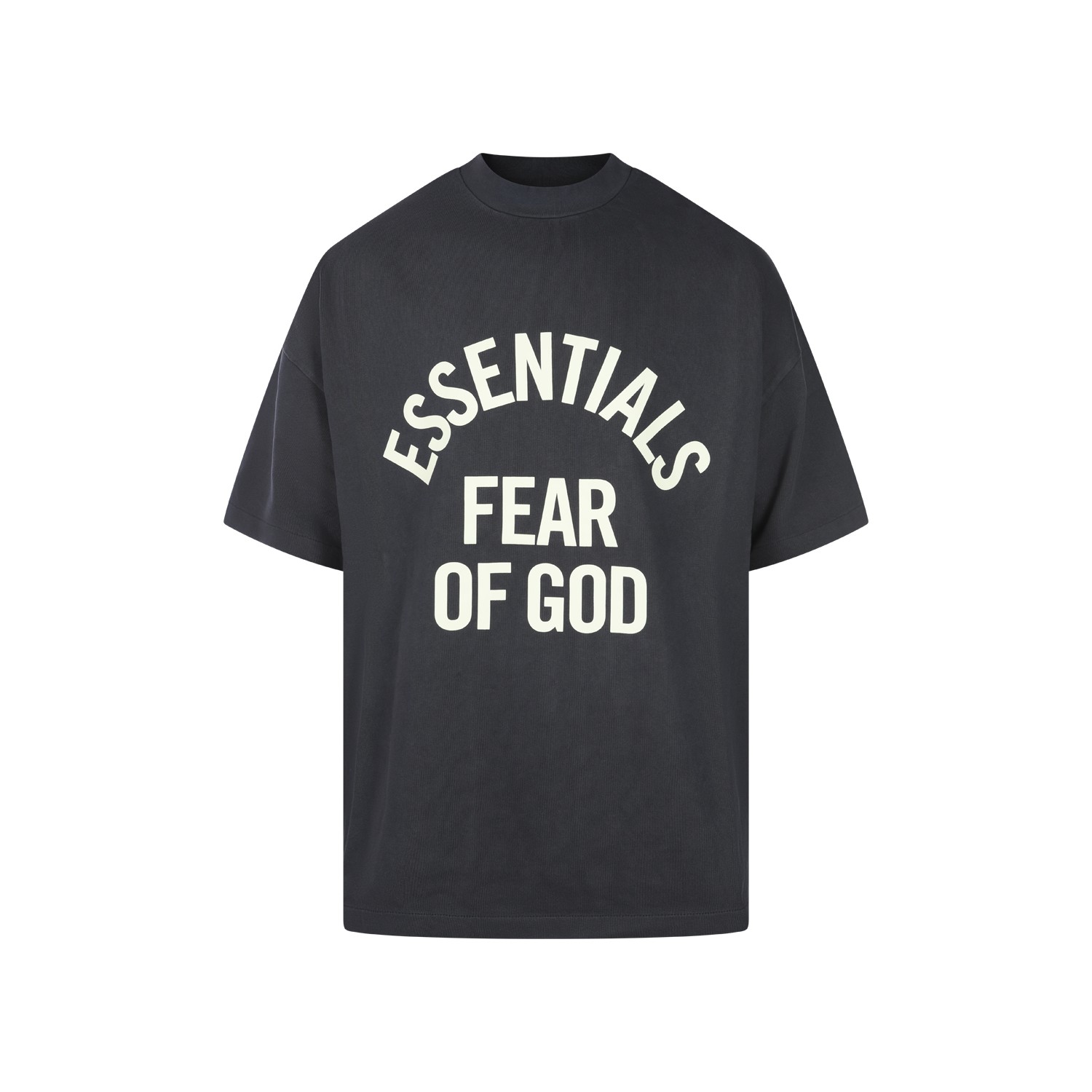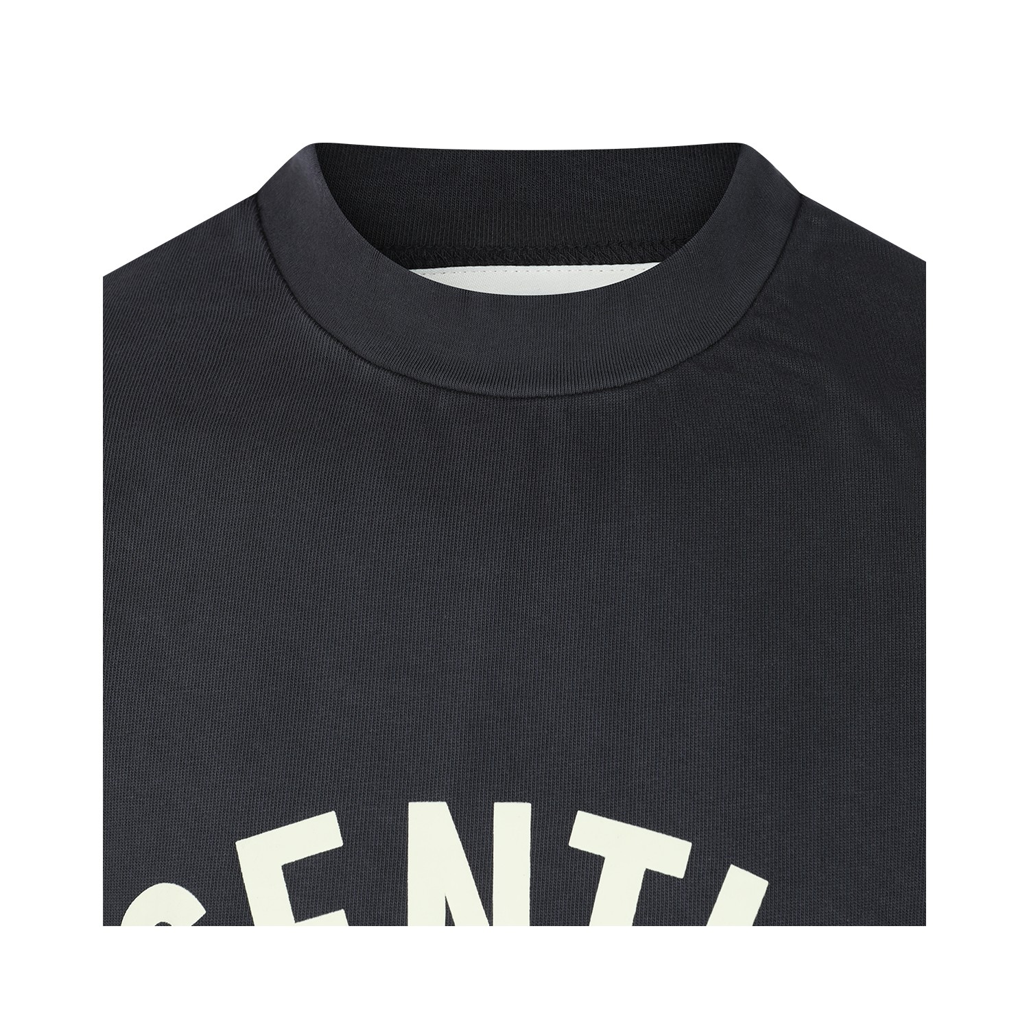 Black cotton t-shirt from Fear Of God Essentials featuring crew neck, dropped short sleeves, print and regular fit.