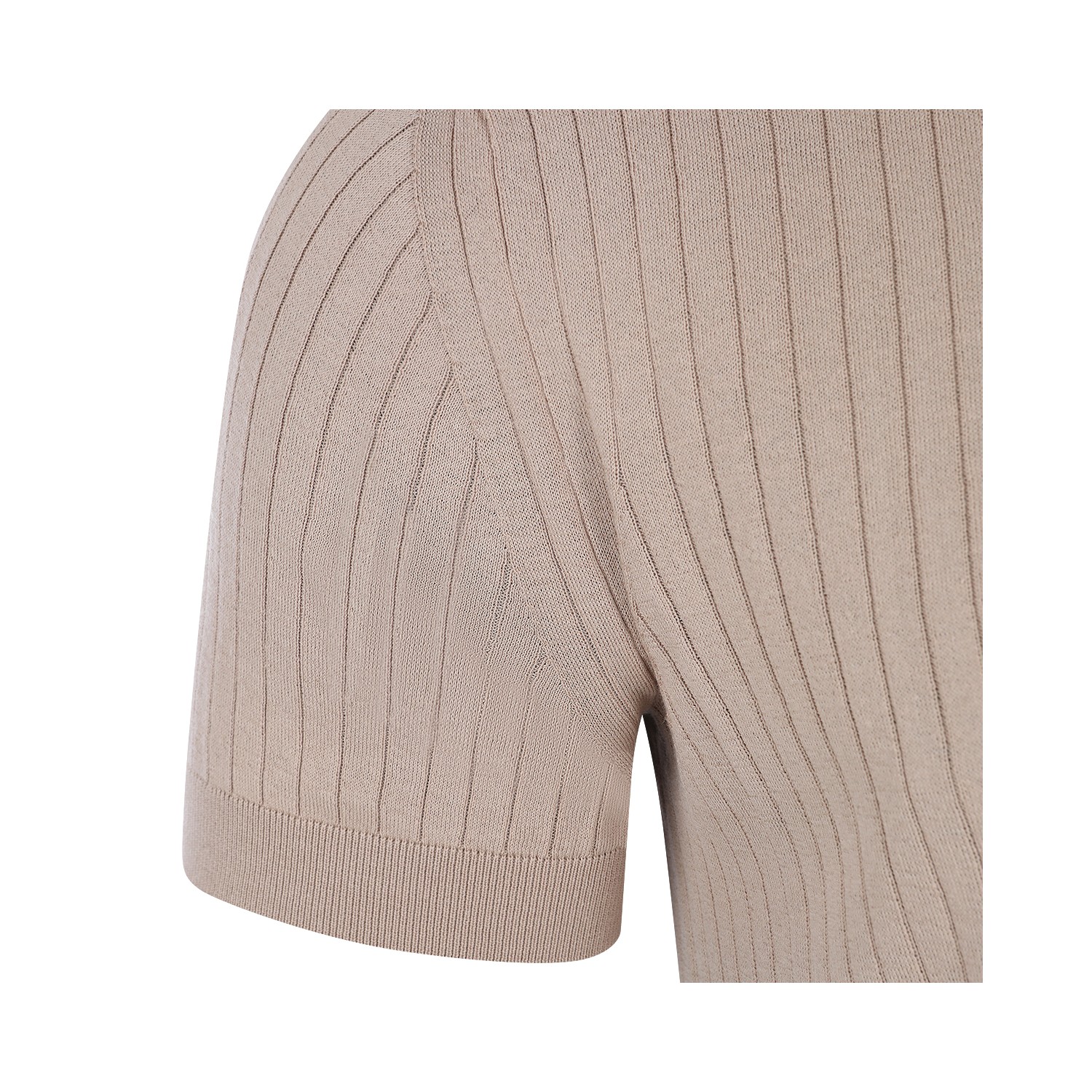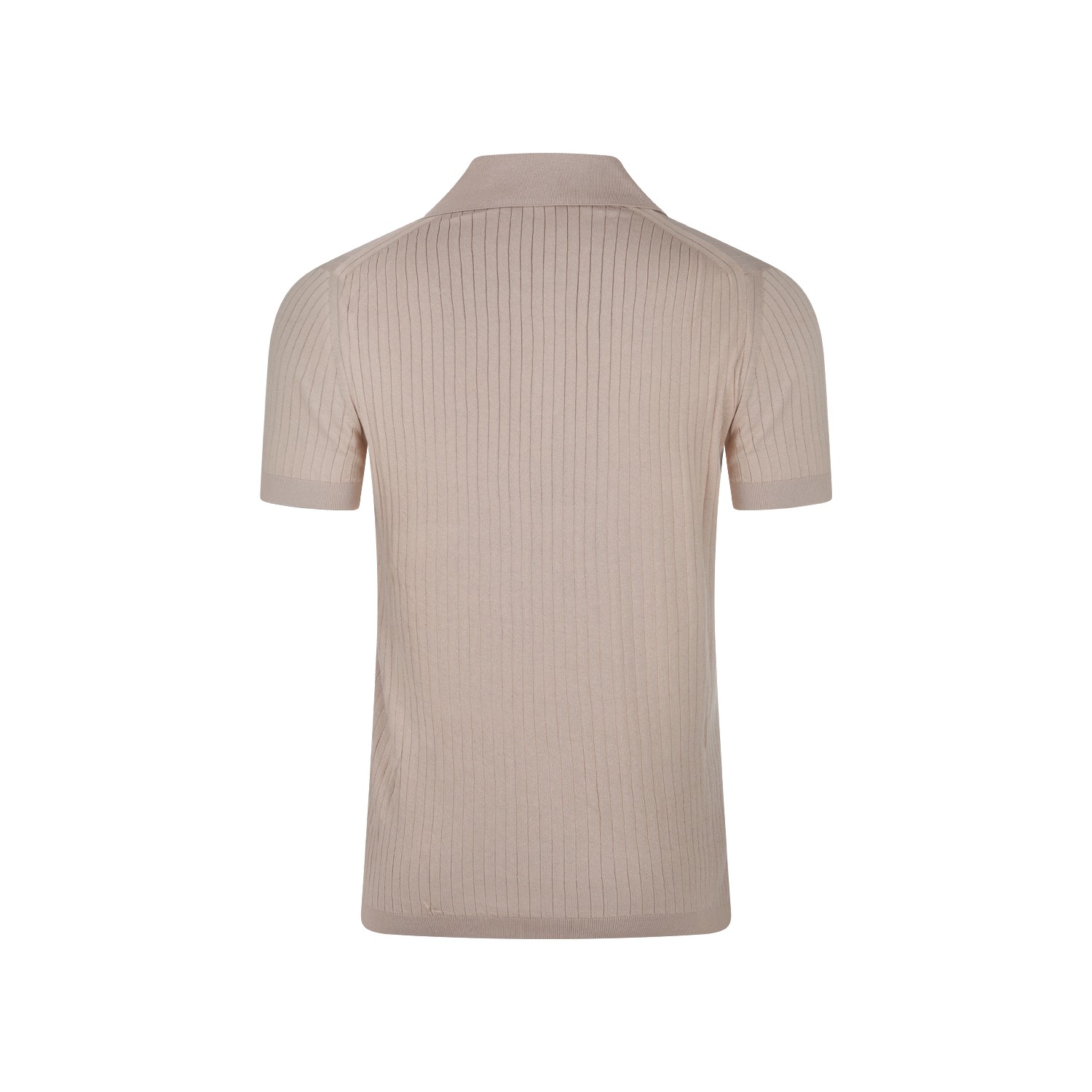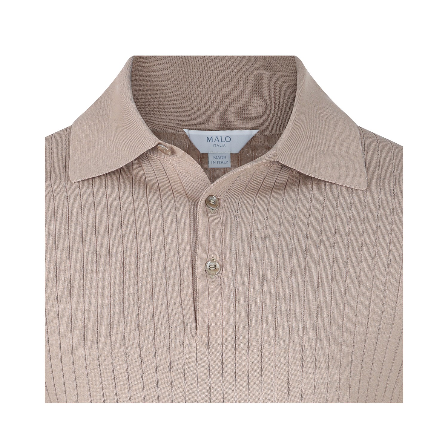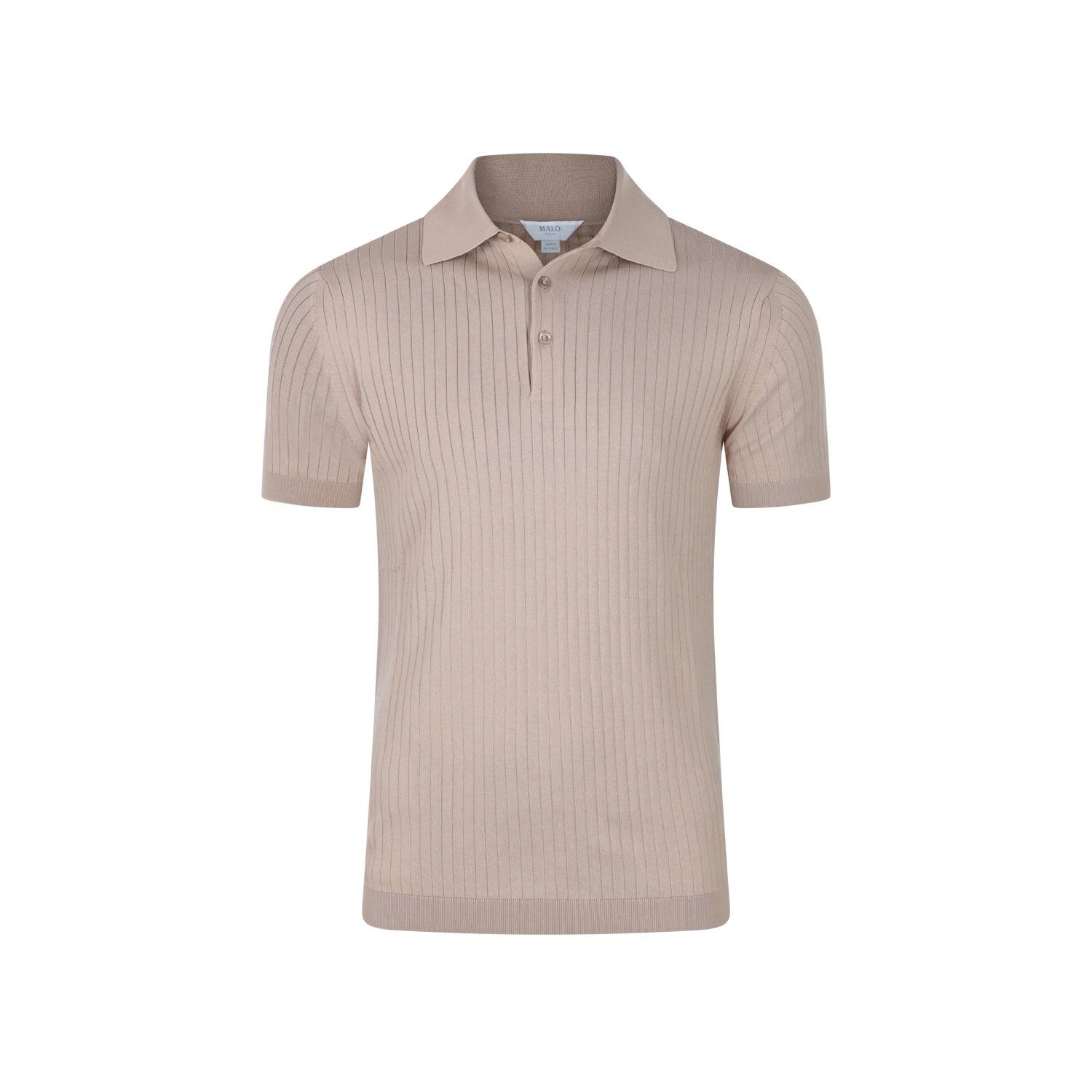 Beige cotton polo shirt from Malo featuring polo shirt collar, short sleeves, striped motif, buttons under the collar, ribbed hem and regular fit.