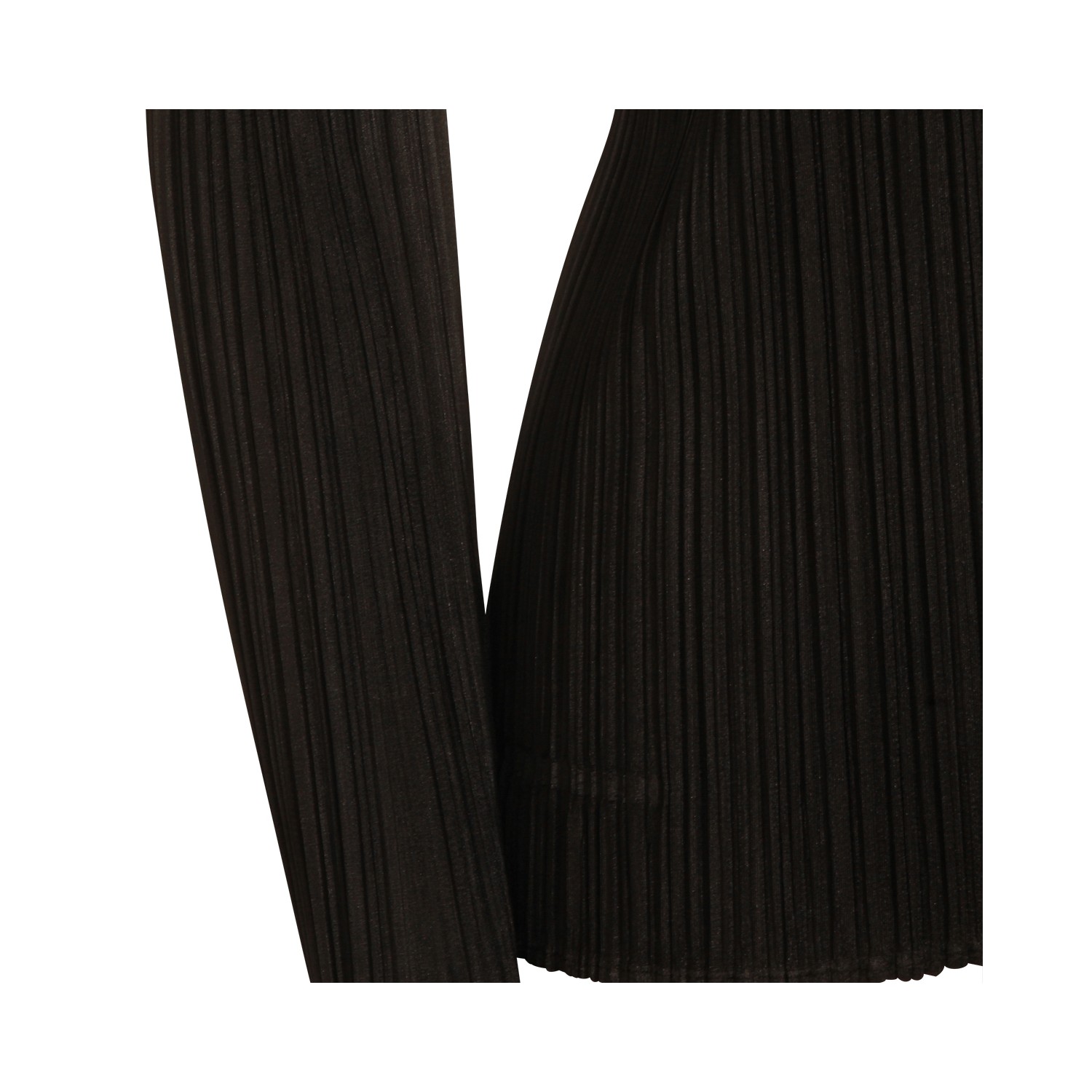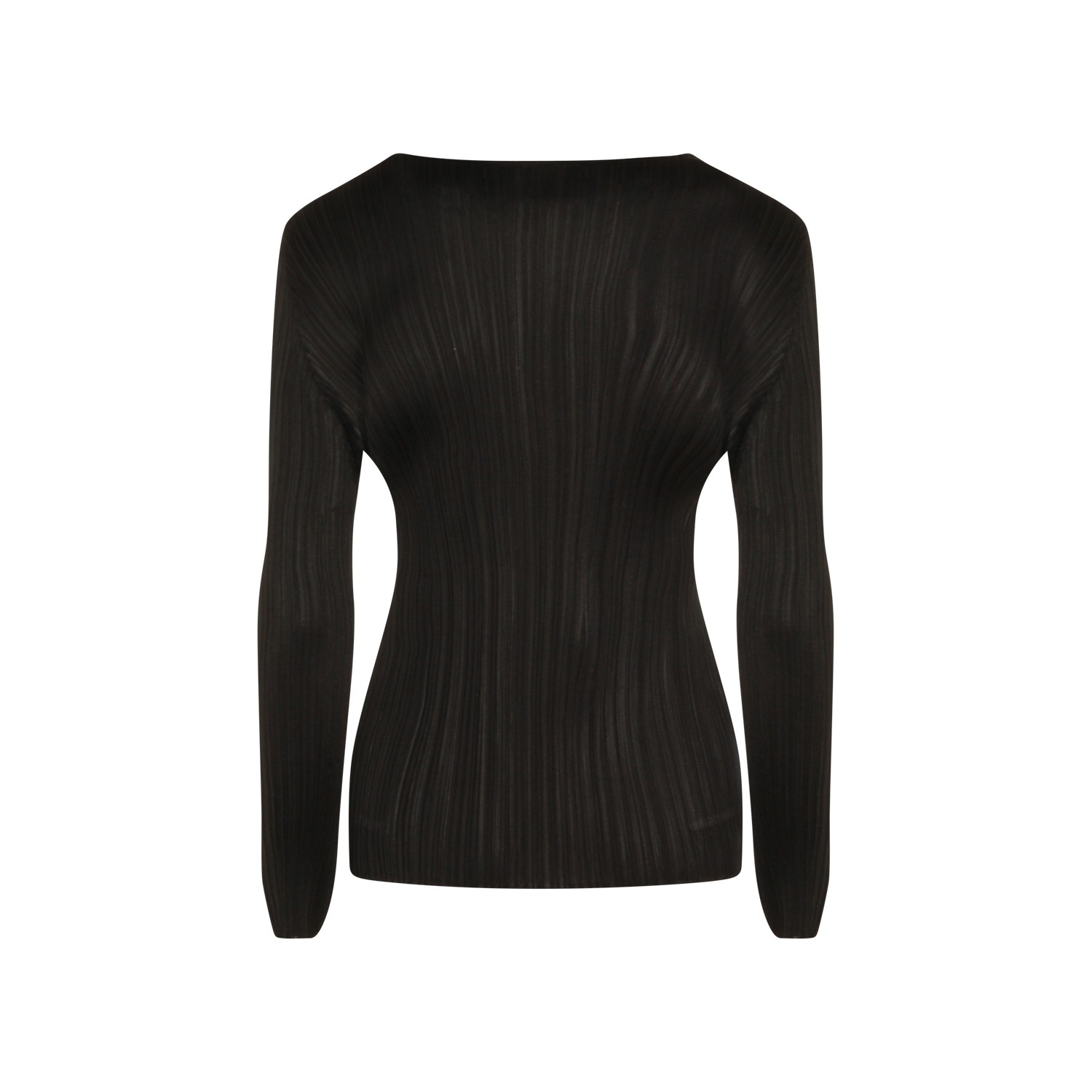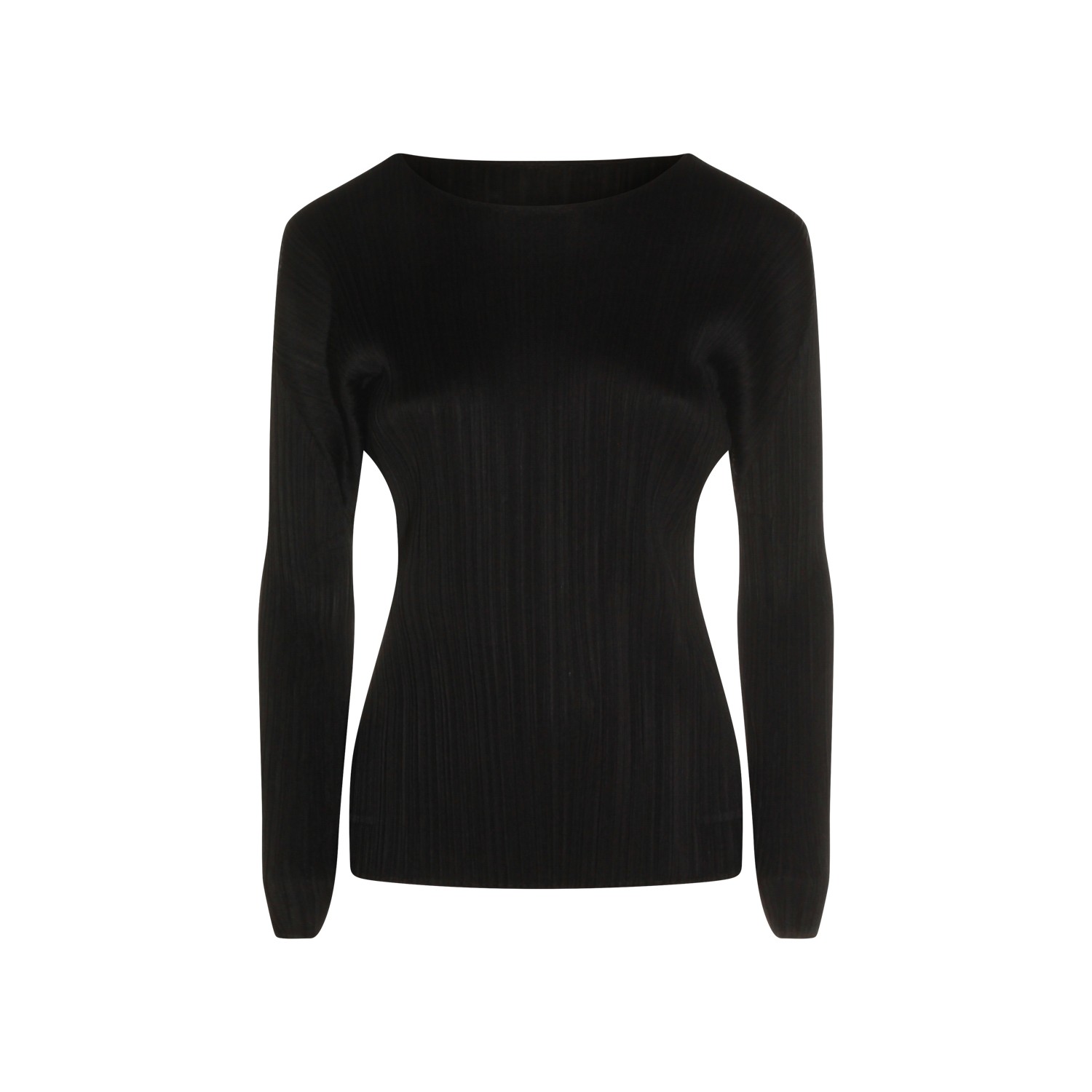 Black top from Issey Miyake Pleats Please featuring round collar, long sleeves and regular vestibility.