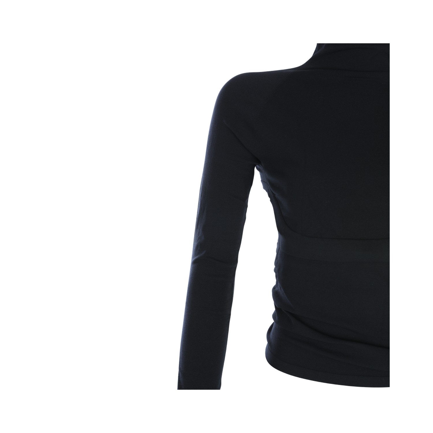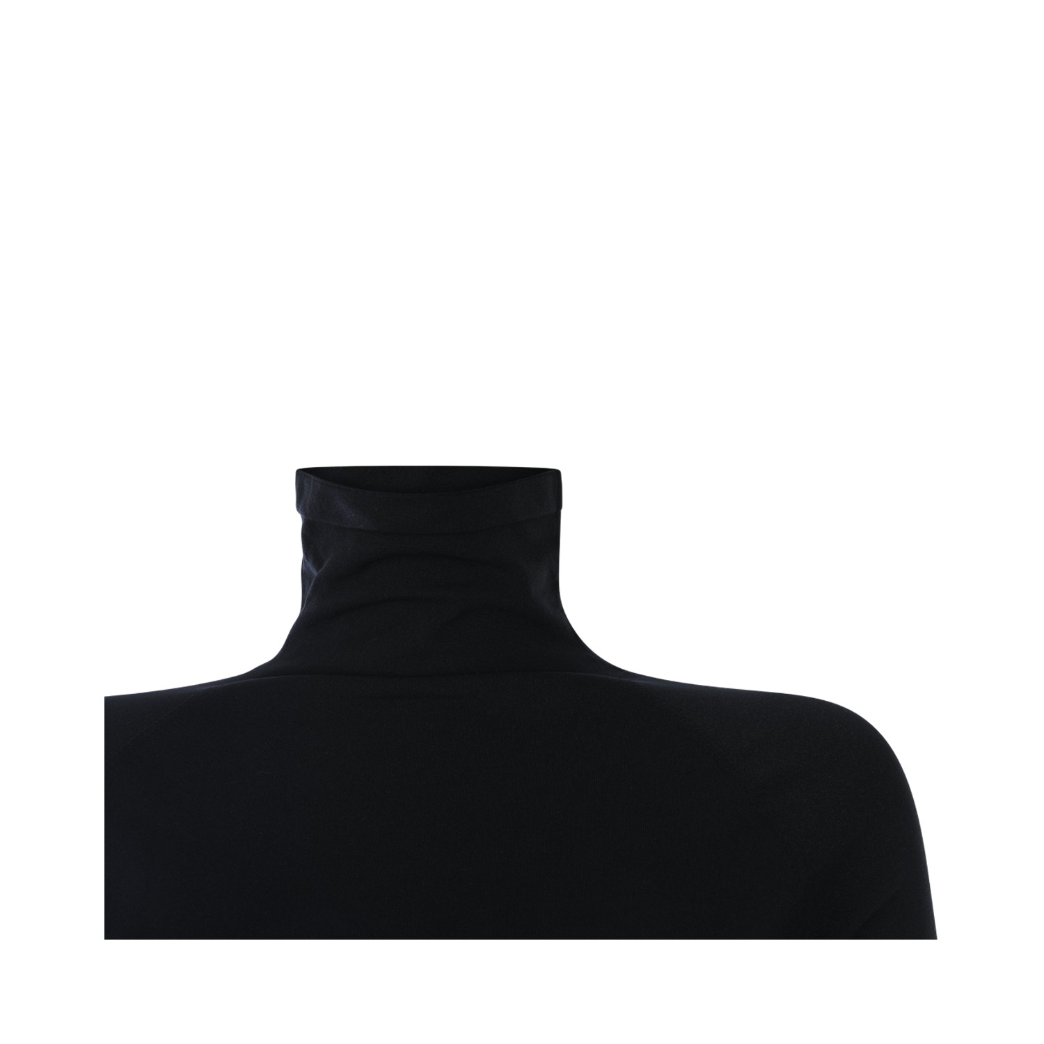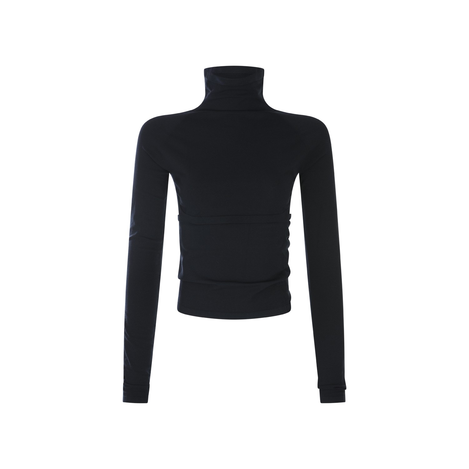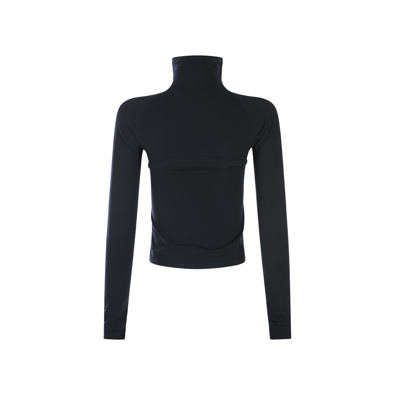 Black top from Alaia featuring high collar, long sleeves and tight vestibility.