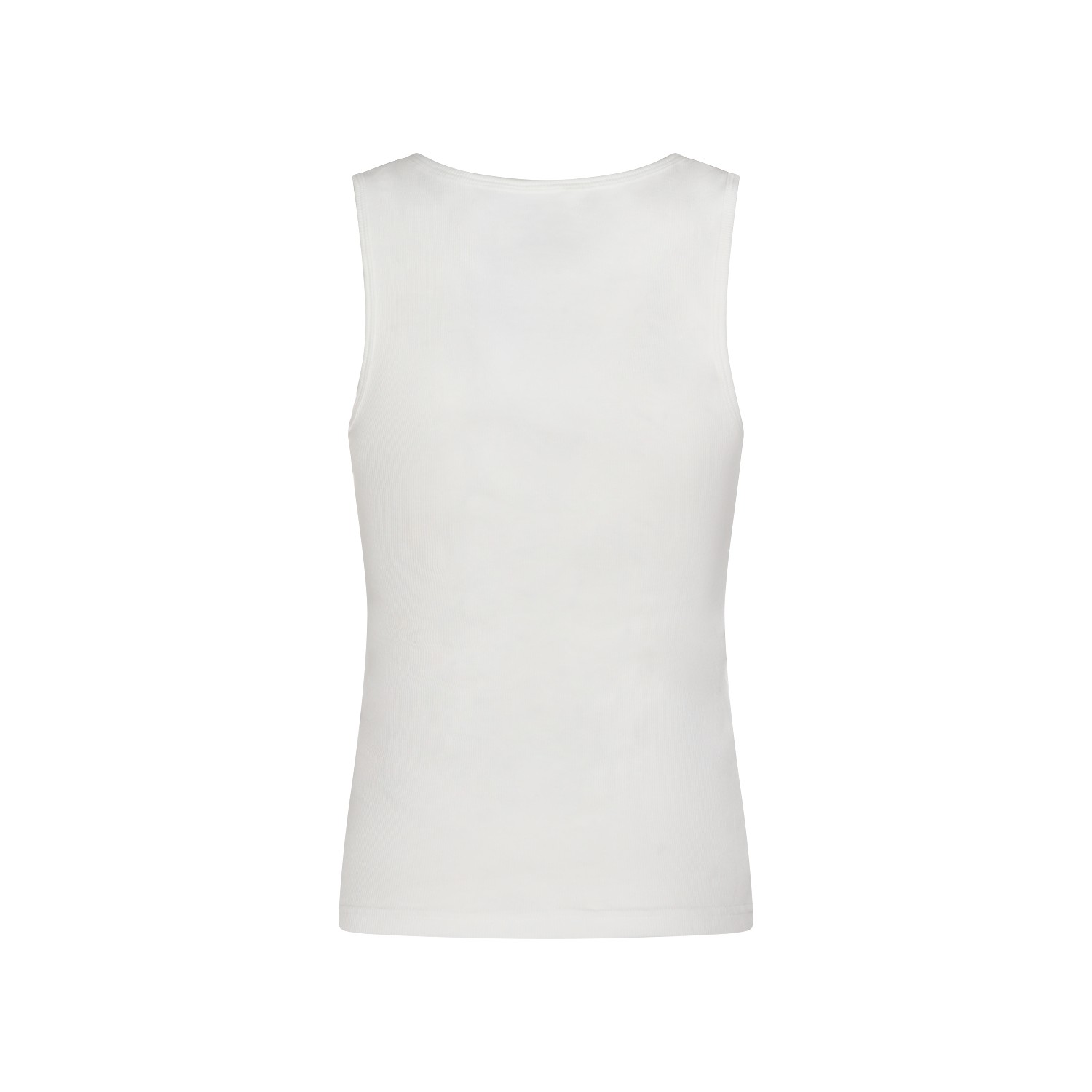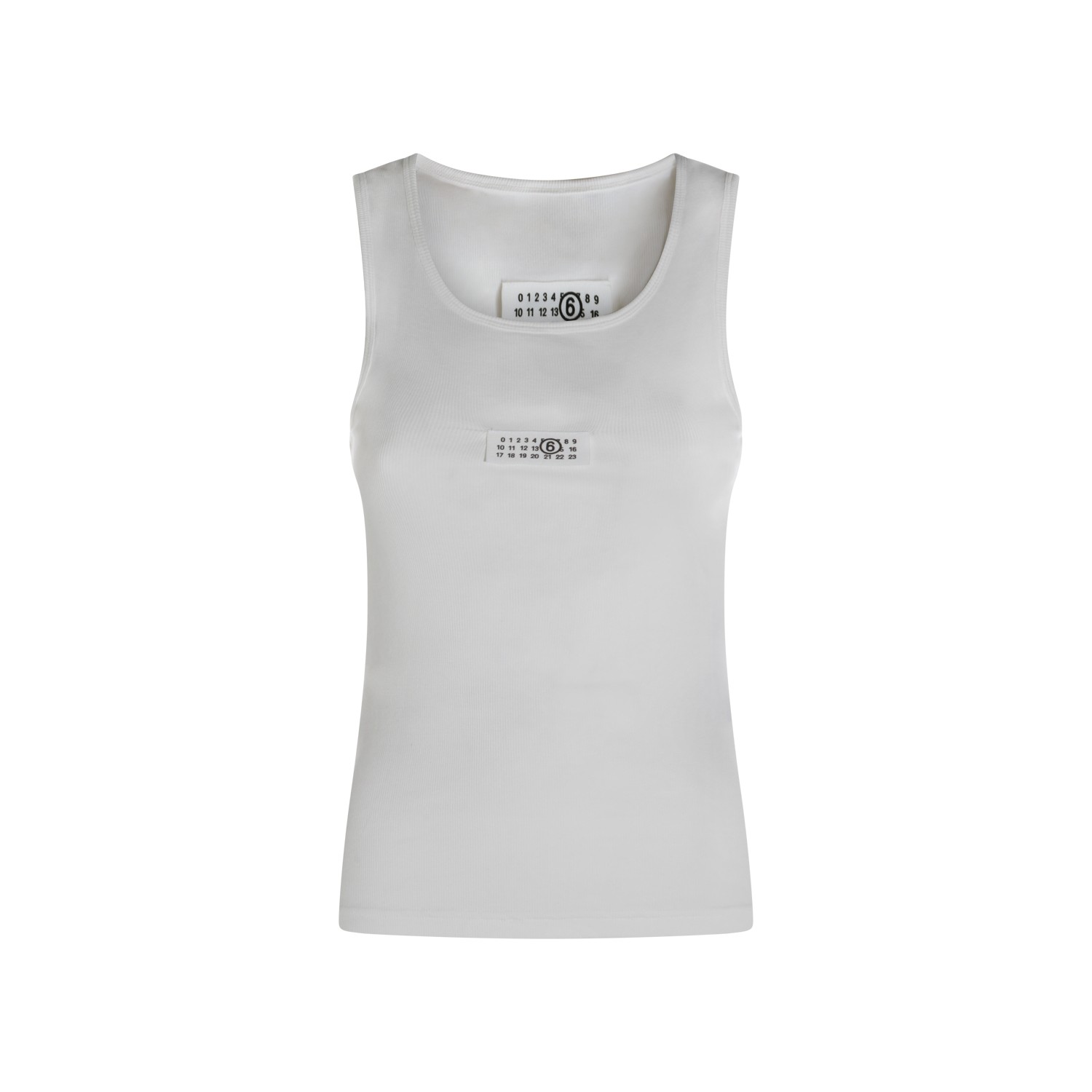 White cotton top from MM6 Maison Margiela featuring round neck, sleeveless, frontal logo patch and regular vestibility.