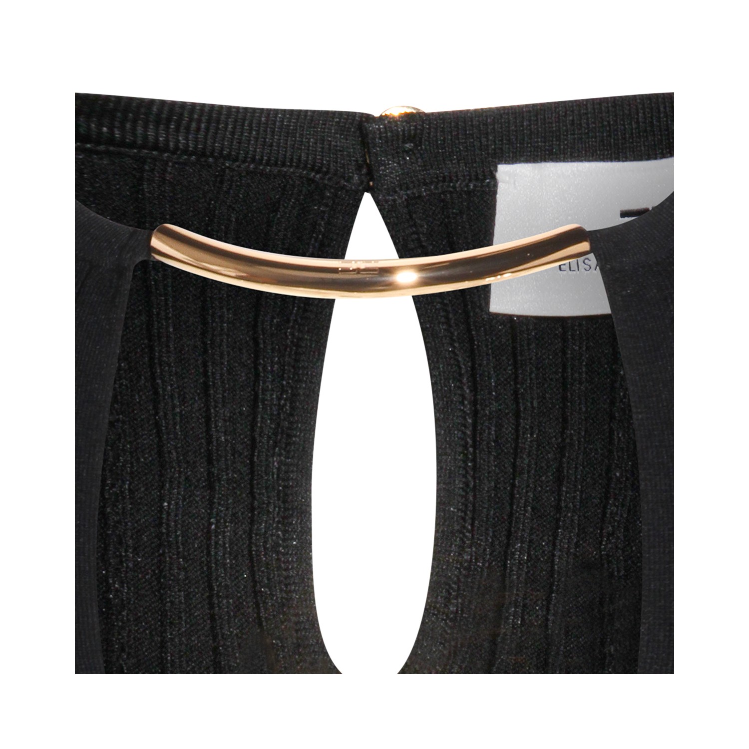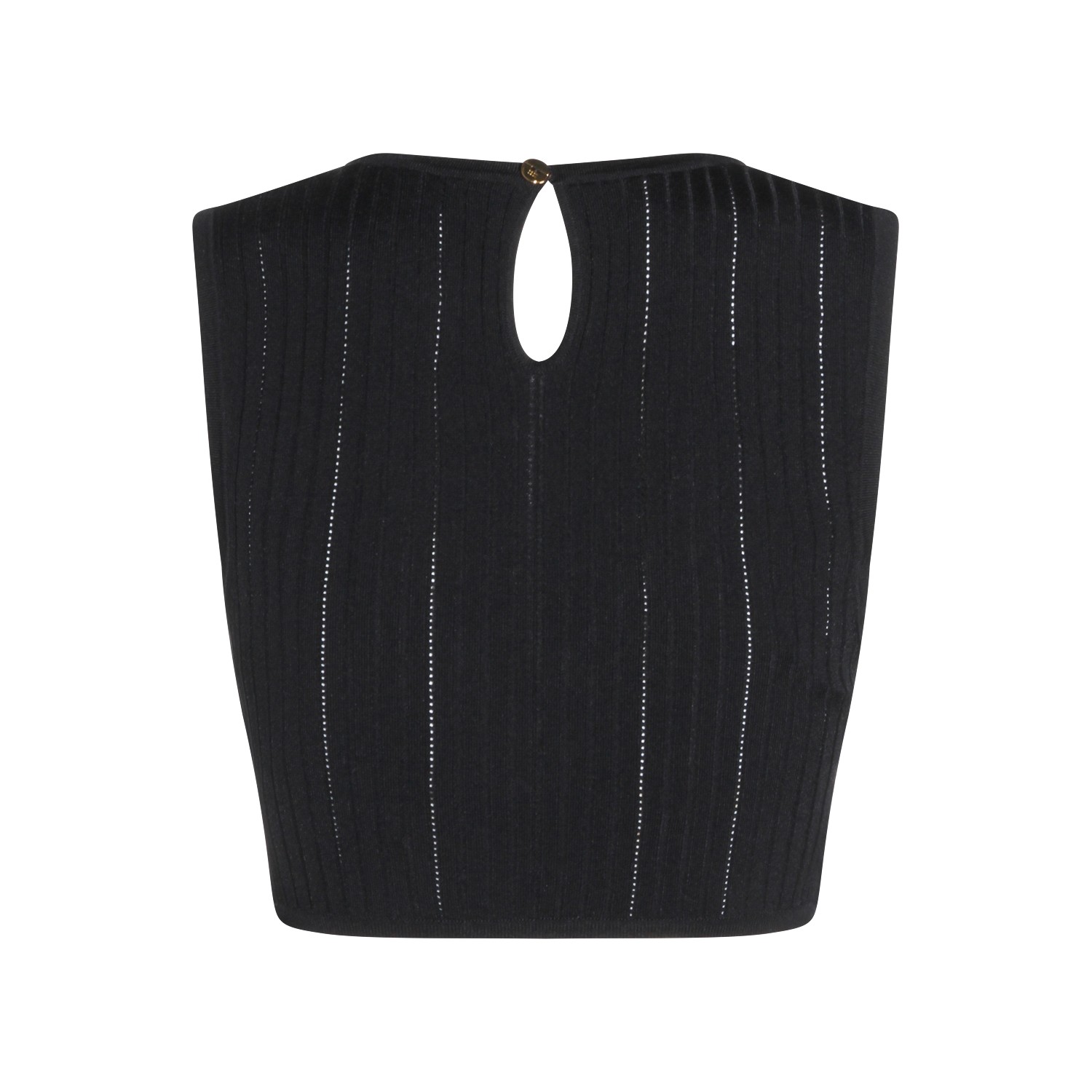 Black viscose top from Elisabetta Franchi featuring round collar, v neck, sleeveless, gold tone embellishment and tight fit.