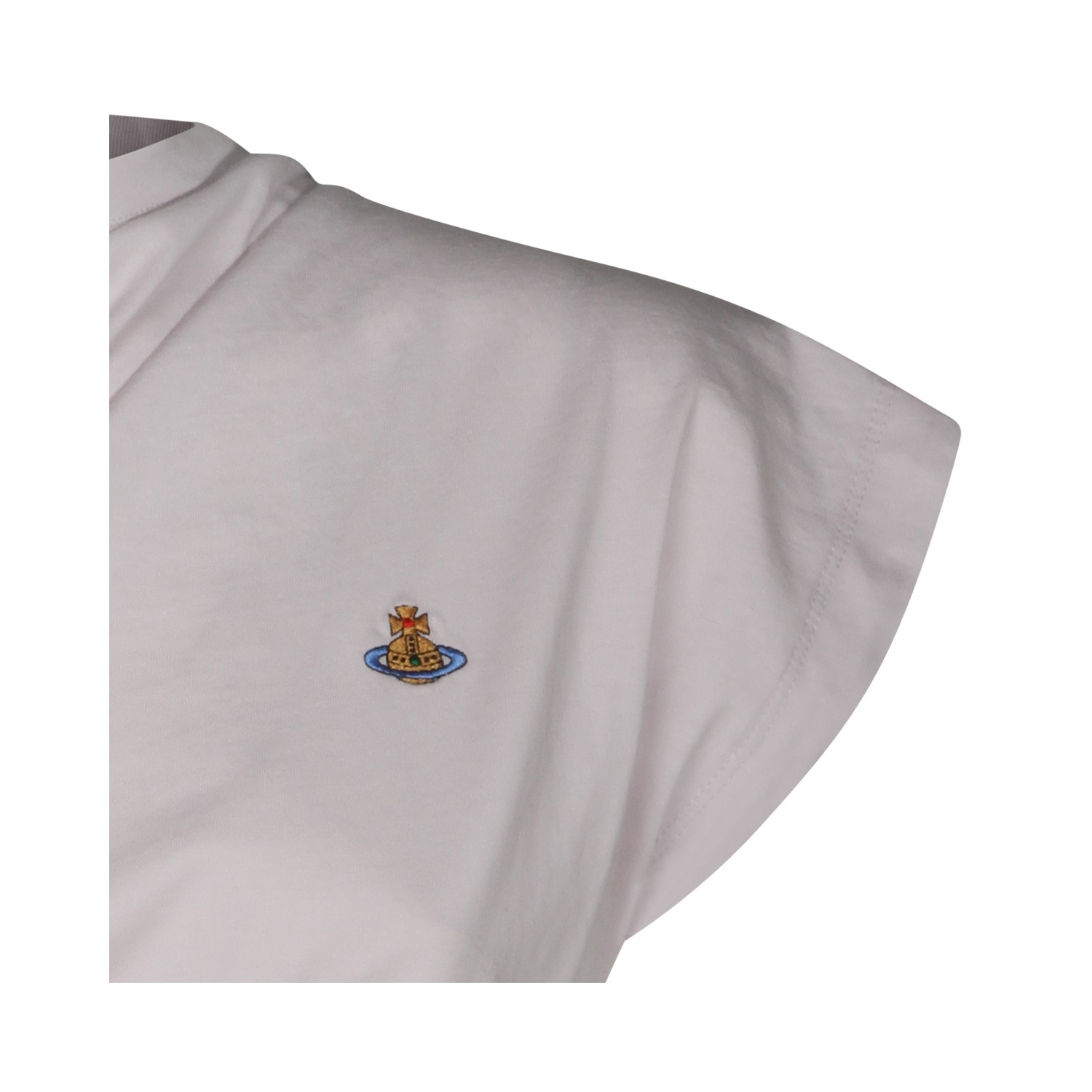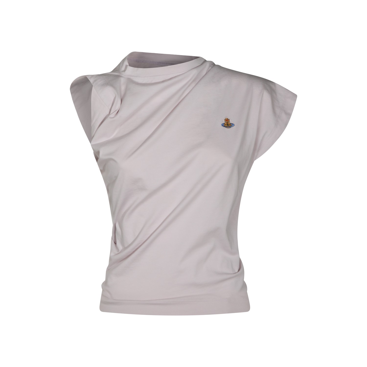 Beige cotton top from Vivienne Westwood featuring frontal logo, sleeveless and slim vestibility.