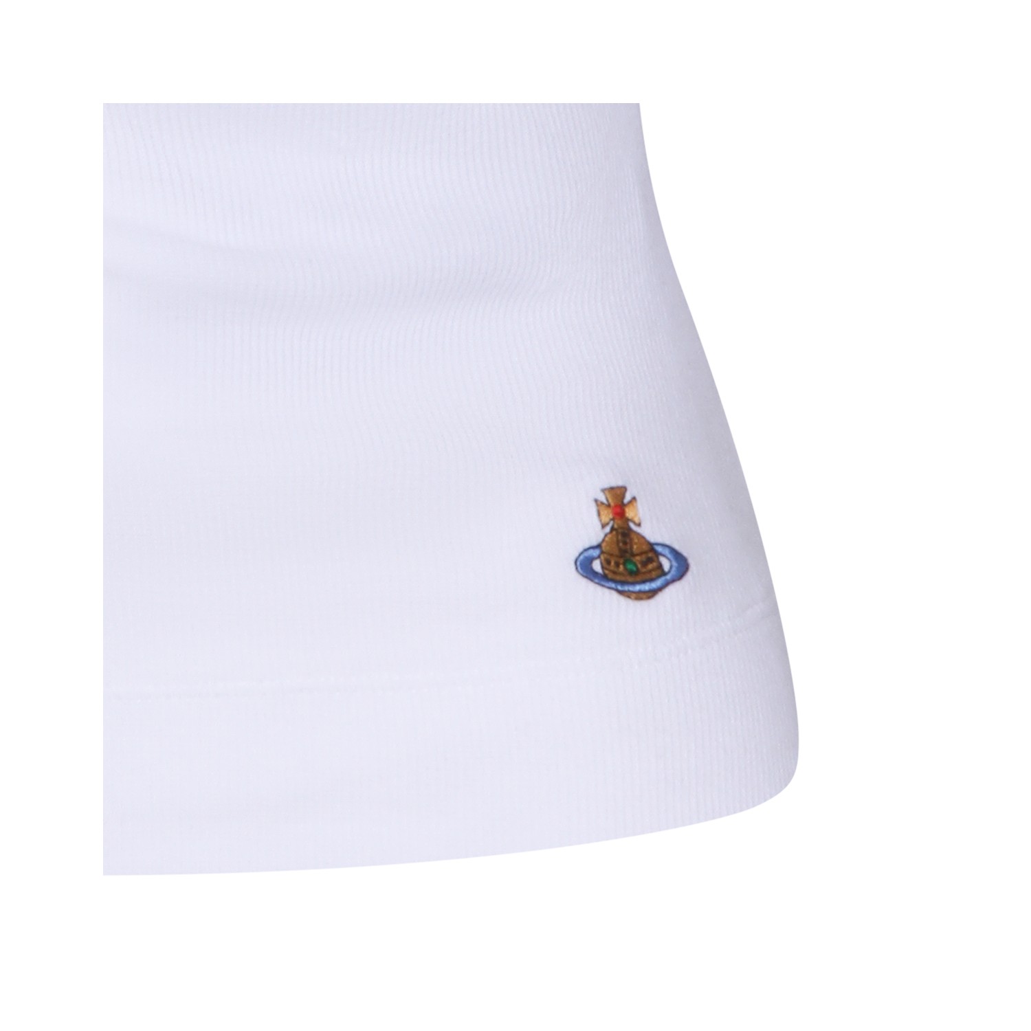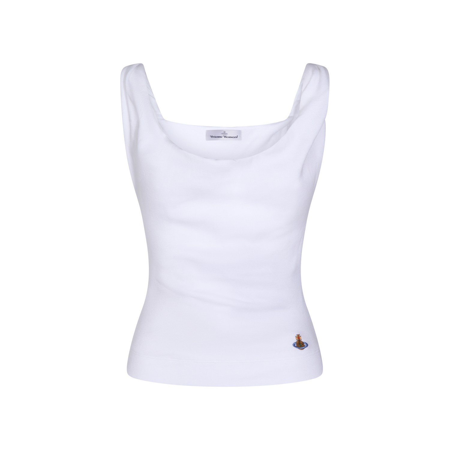 White cotton top from Vivienne Westwood featuring round collar, mid straps, Orb logo patch and regular fit.