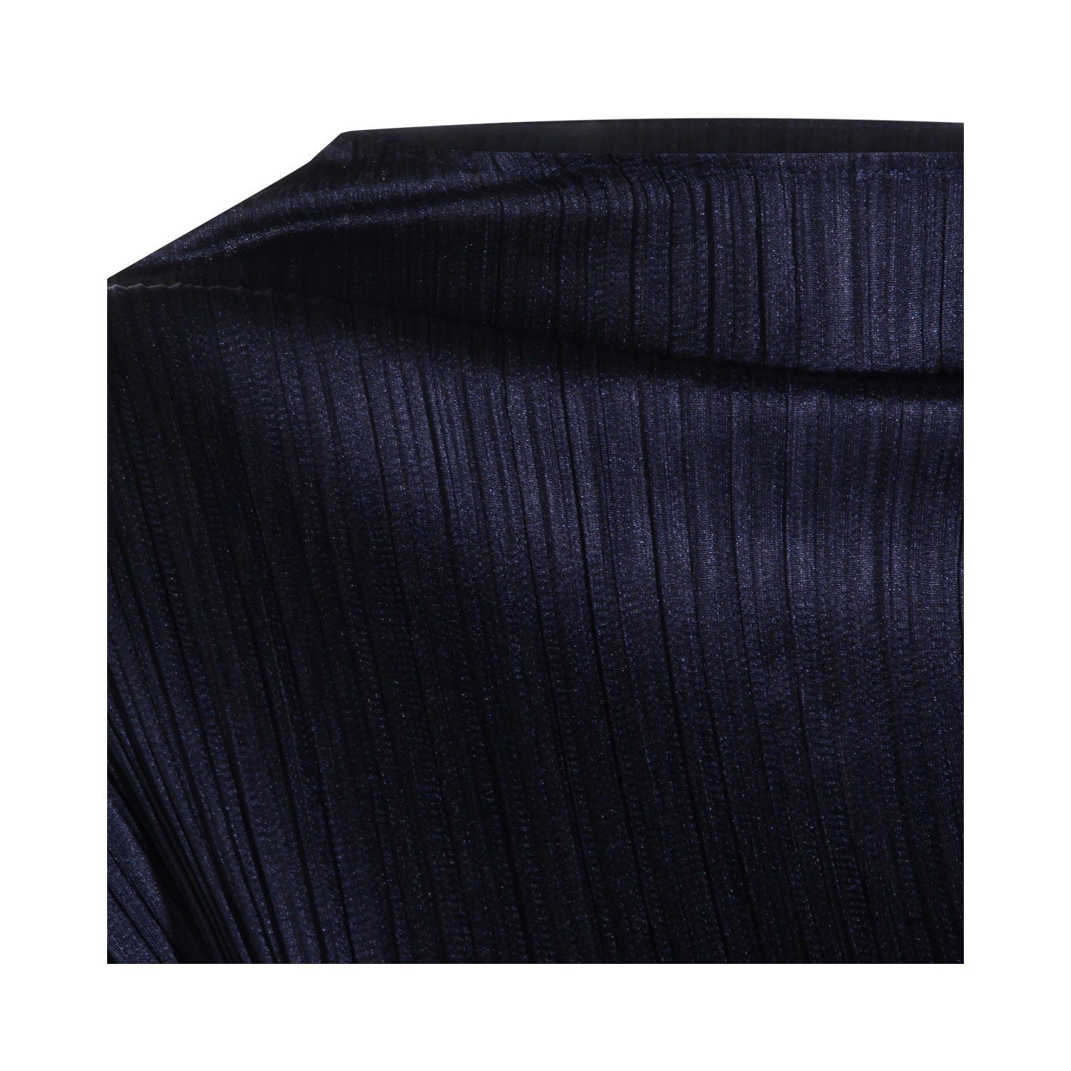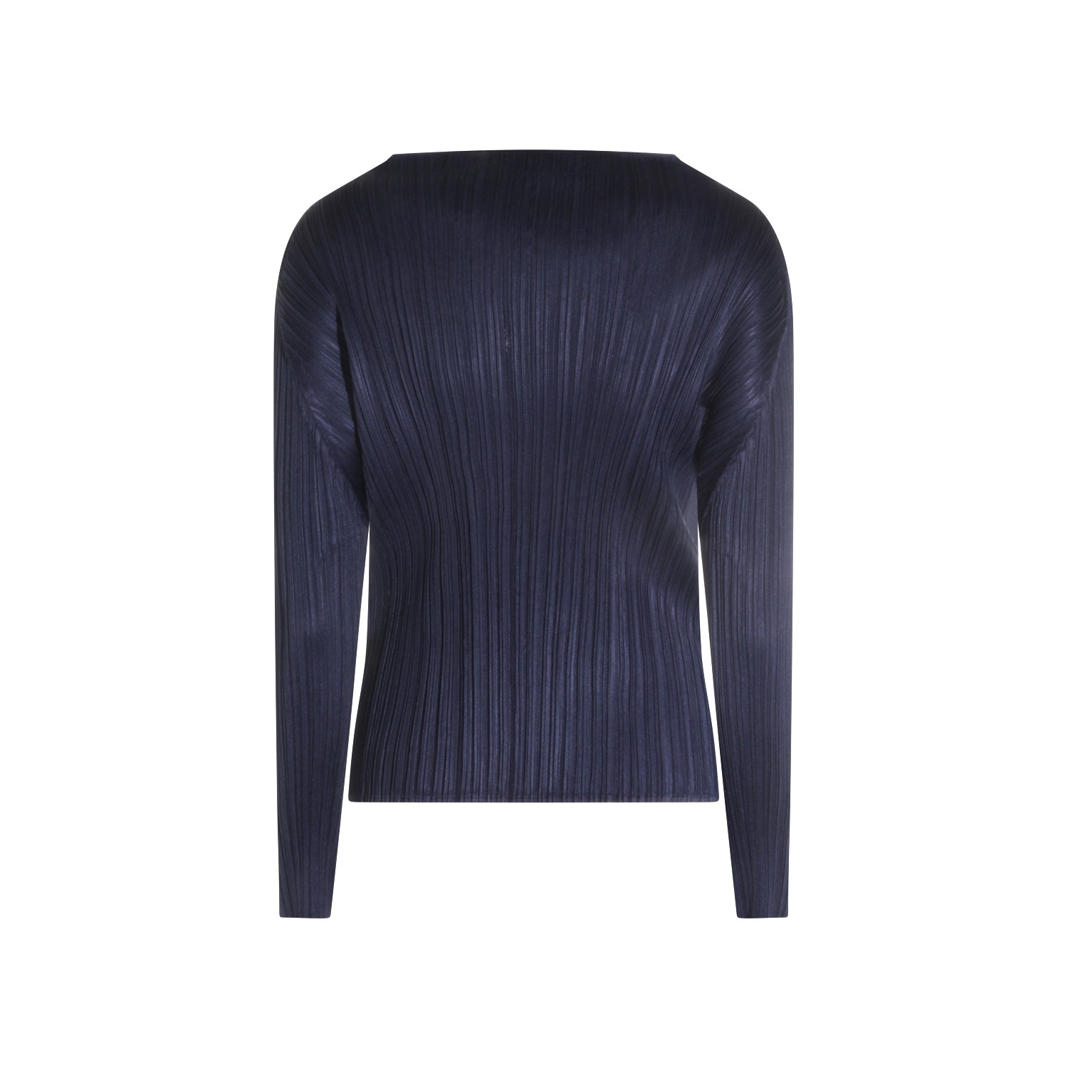 Dark navy pleated top from Pleats Please Issey Miyake featuring long sleeves, round collar and regular vestibility.