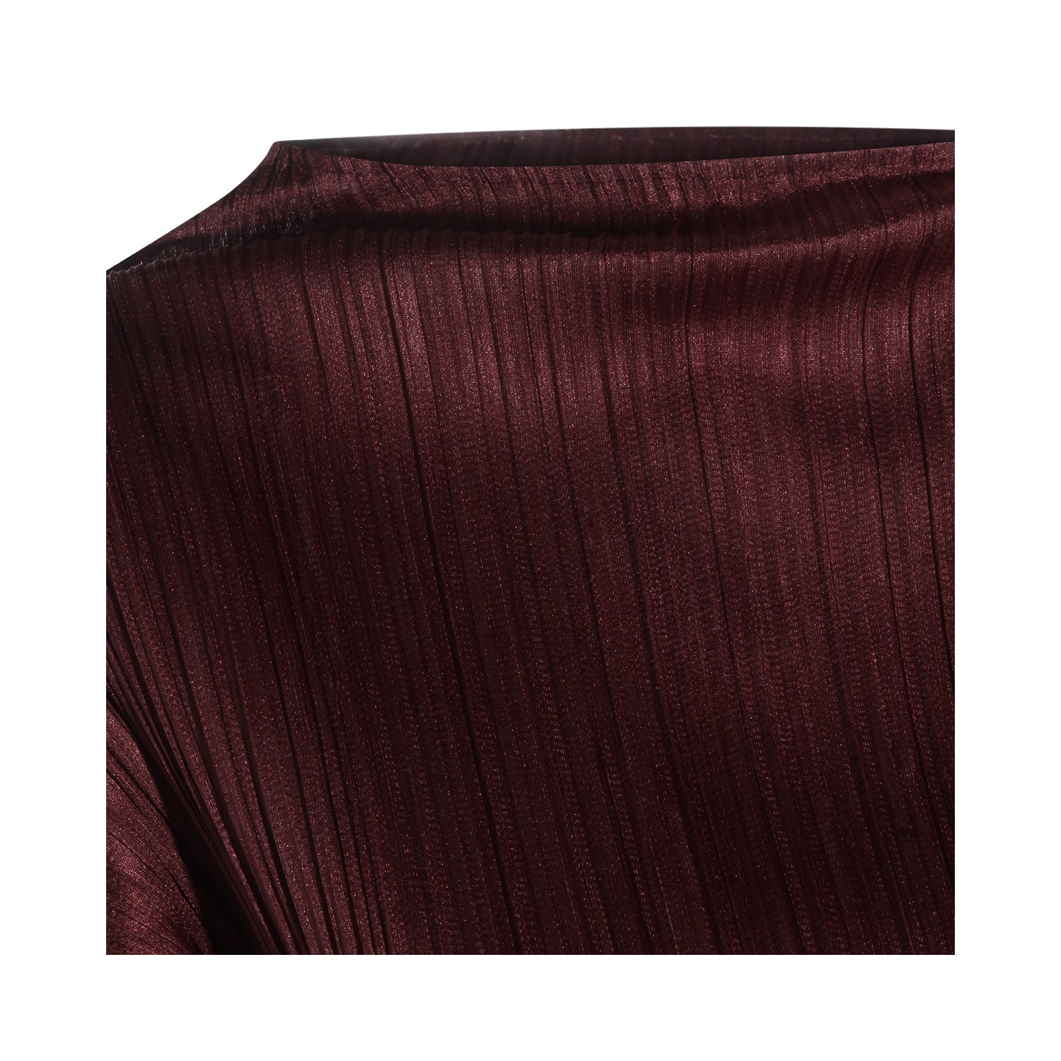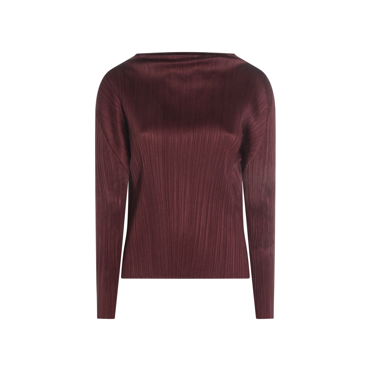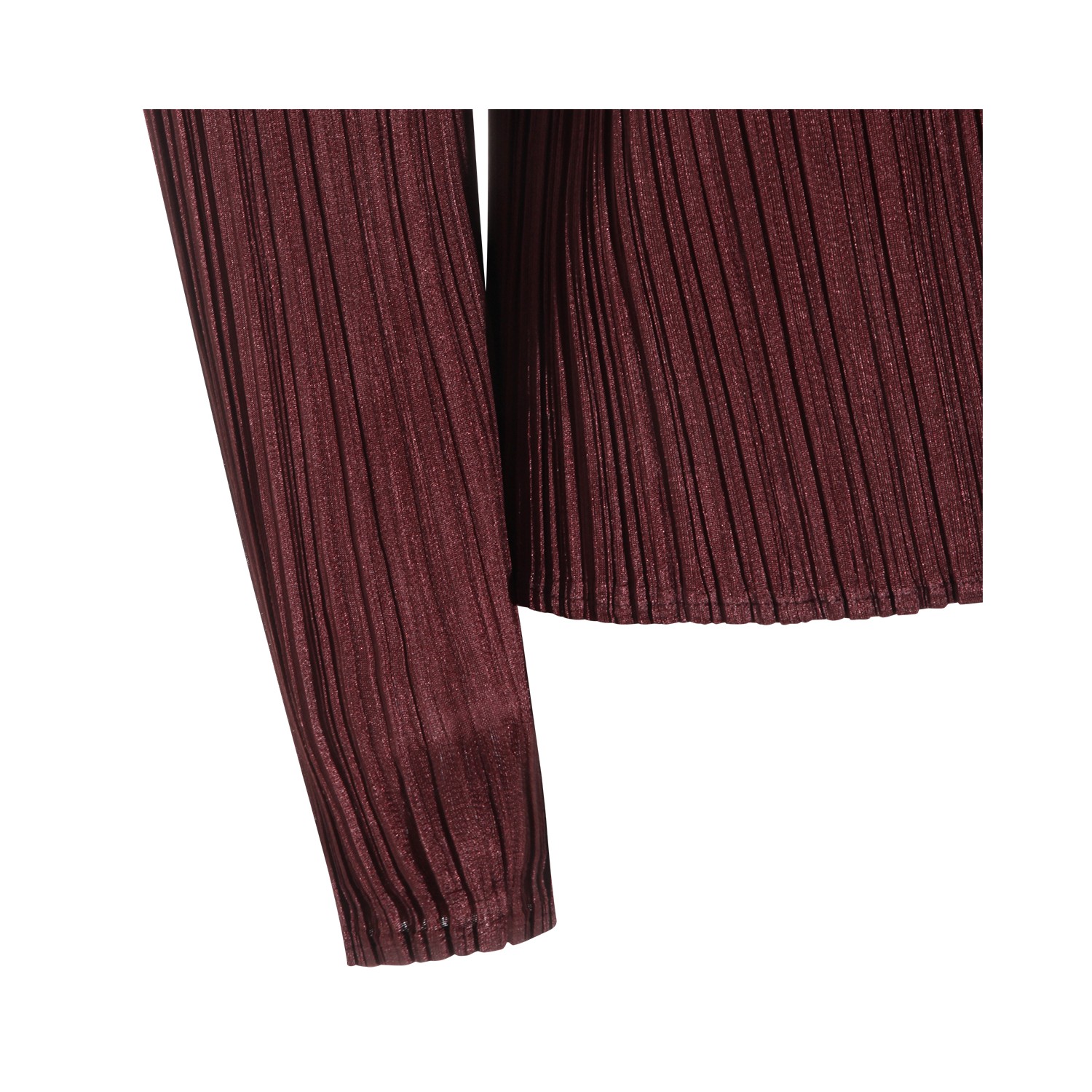 Bordeaux pleated top from Pleats Please Issey Miyake featuring long sleeves, round collar and regular vestibility.