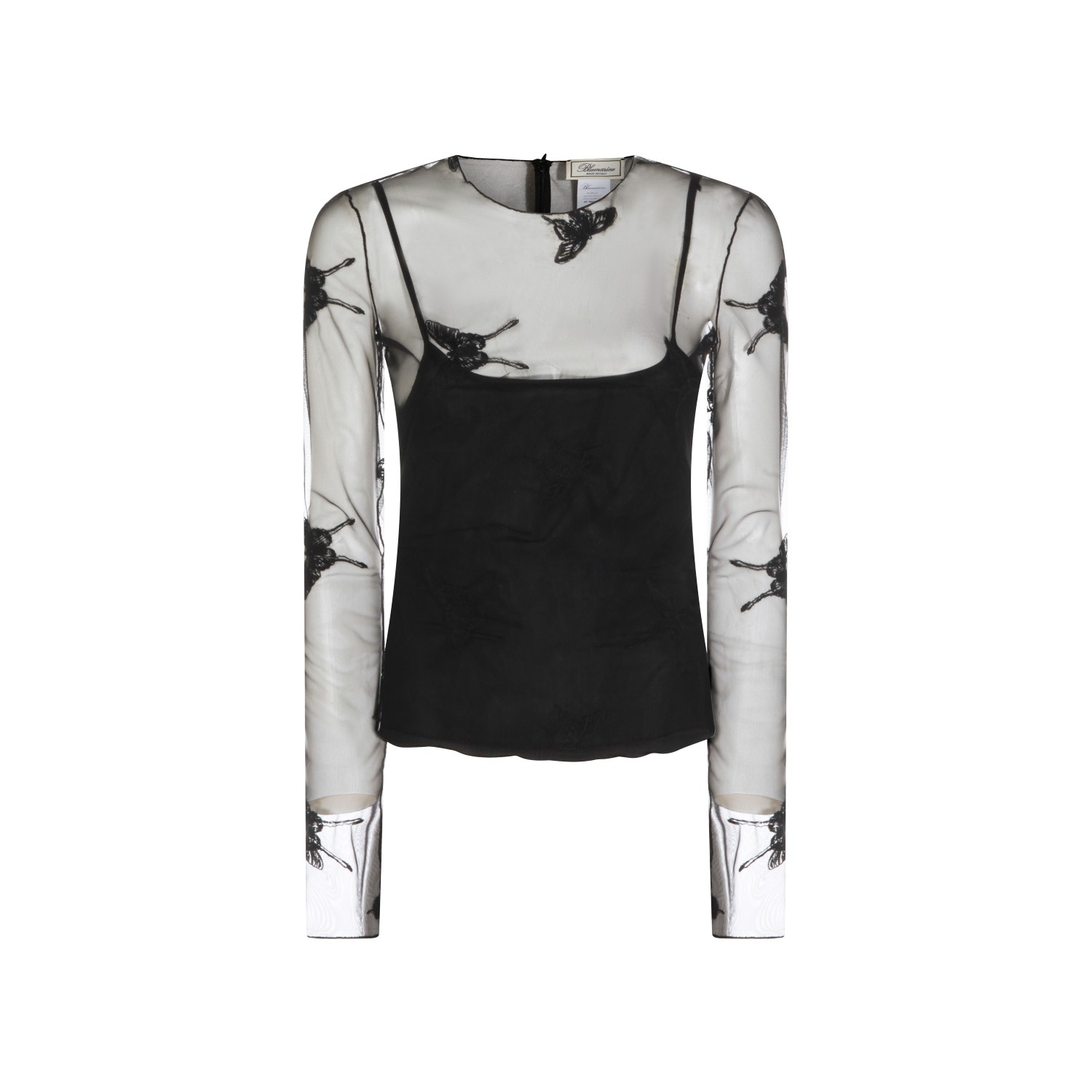 Black top from Blumarine featuring round collar, long sleeves, trasparence, butterfly details and regular fit.