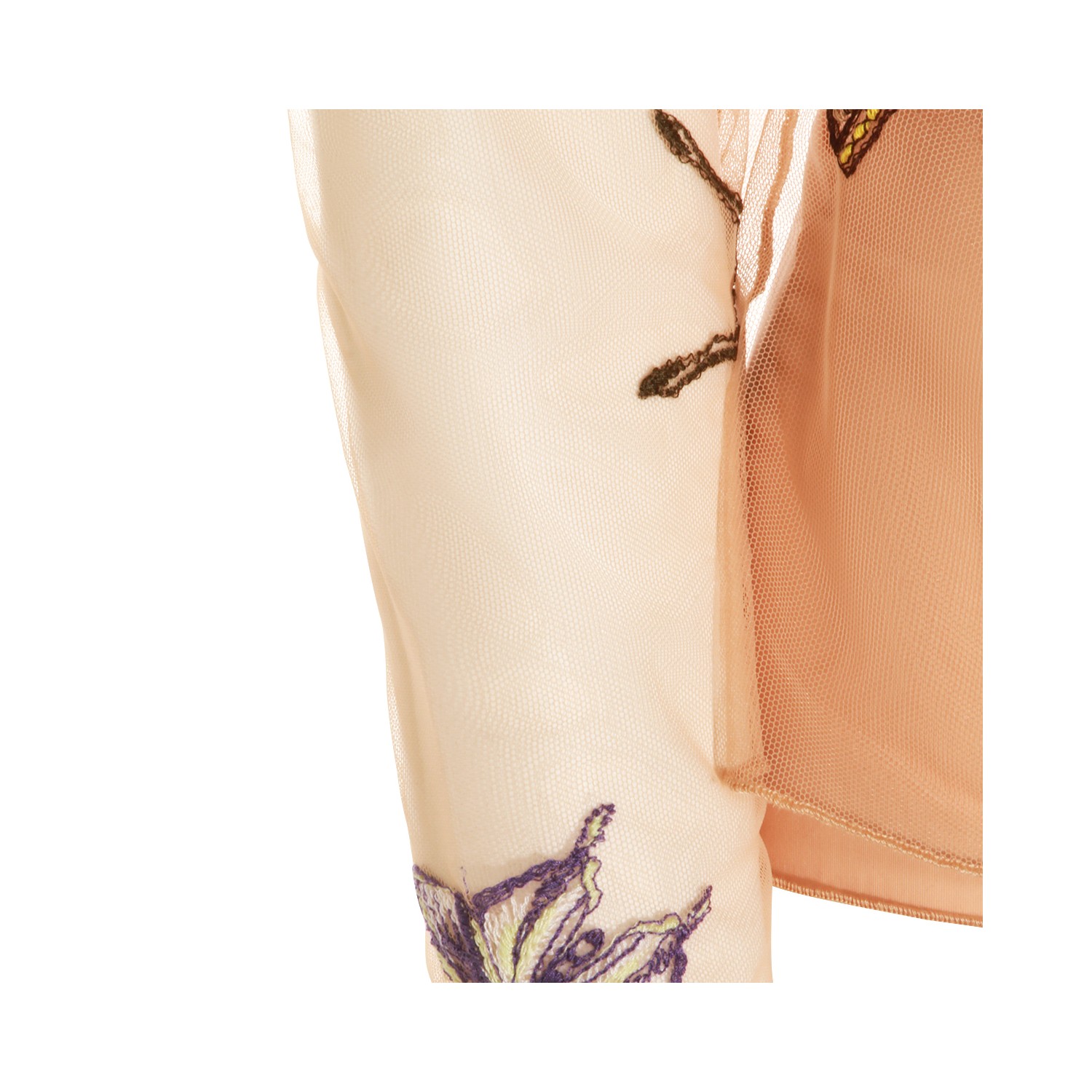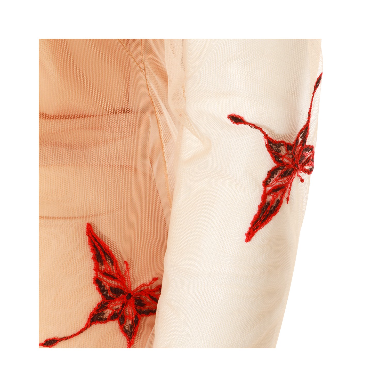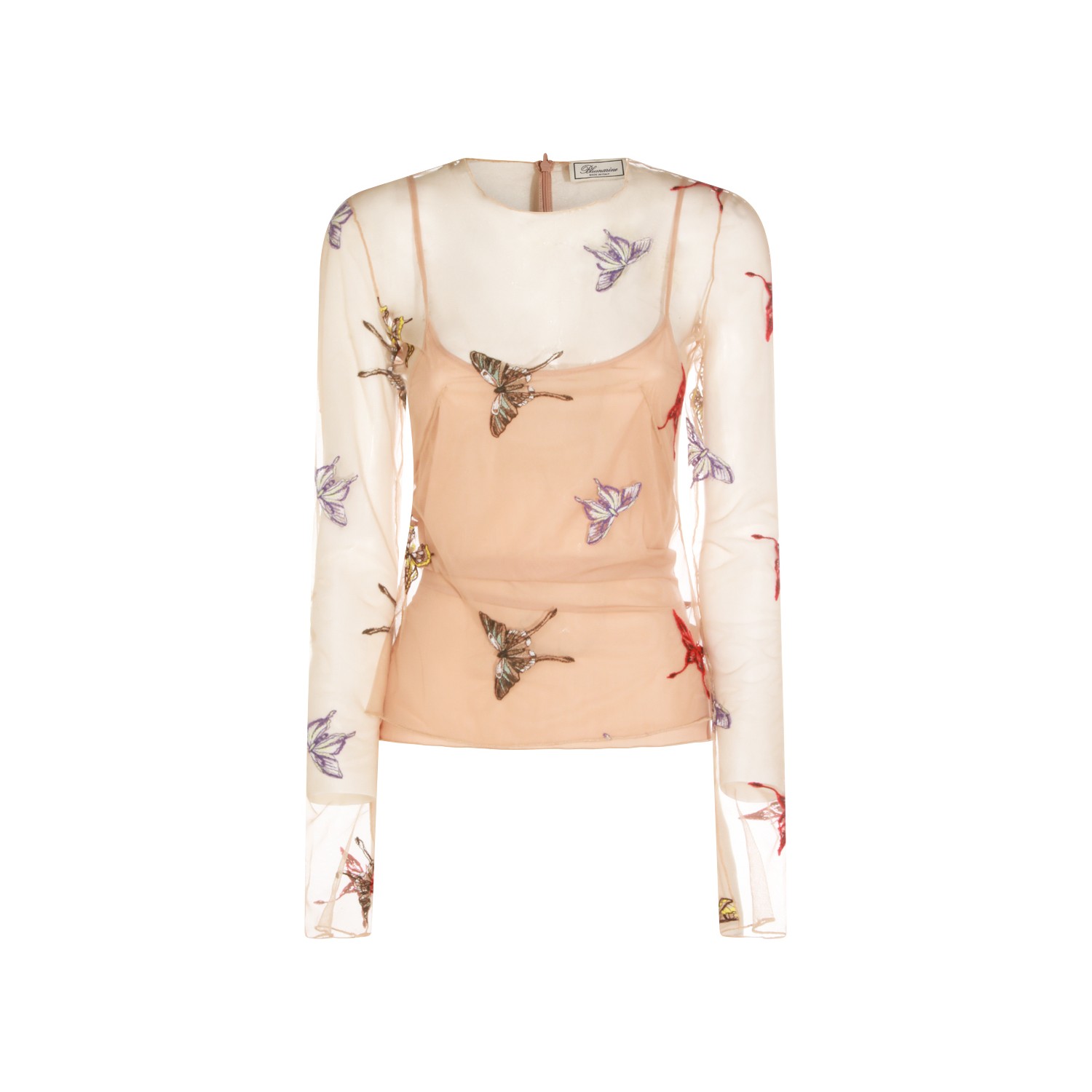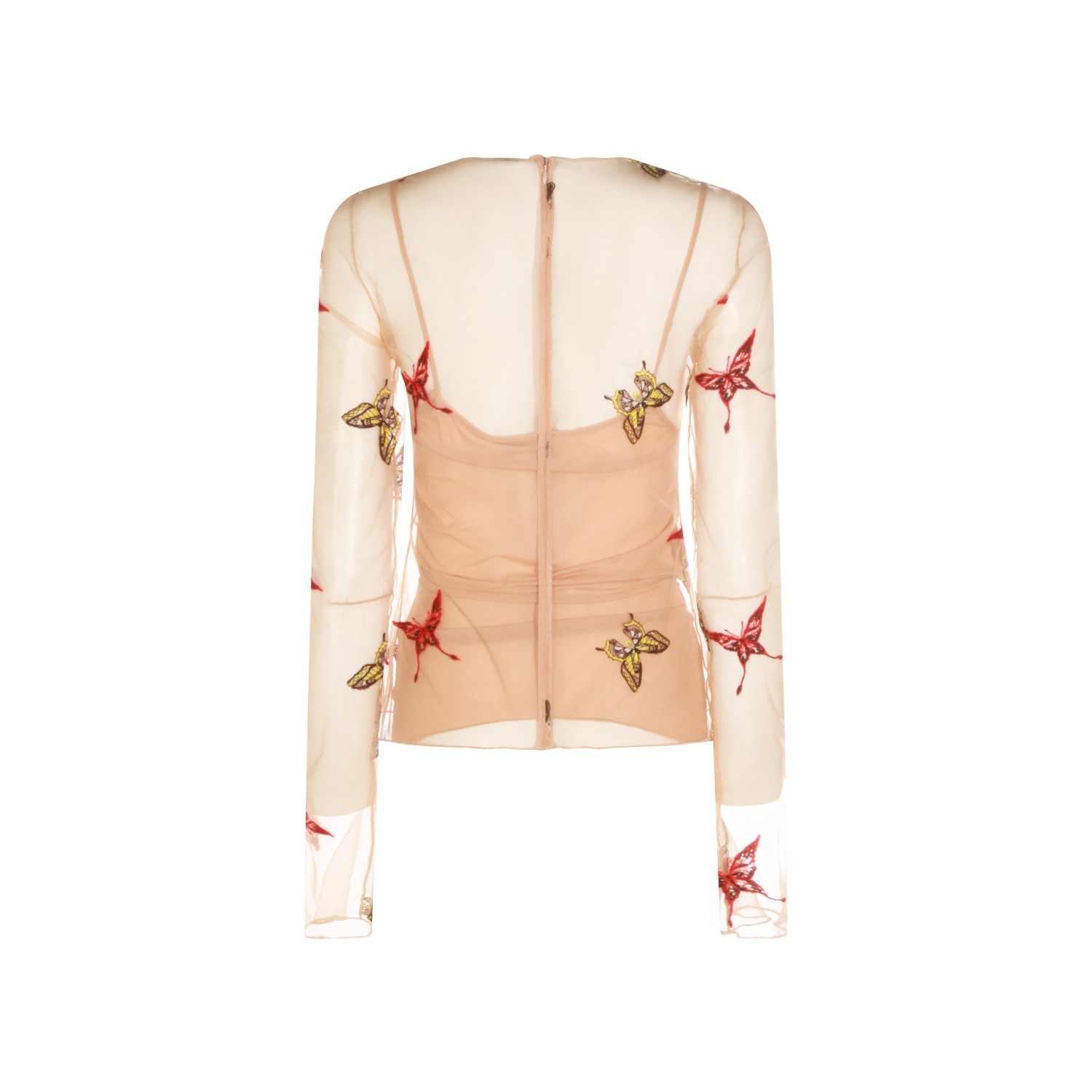 Beige top from Blumarine featuring round collar, long sleeves, trasparence, butterfly details and regular fit.