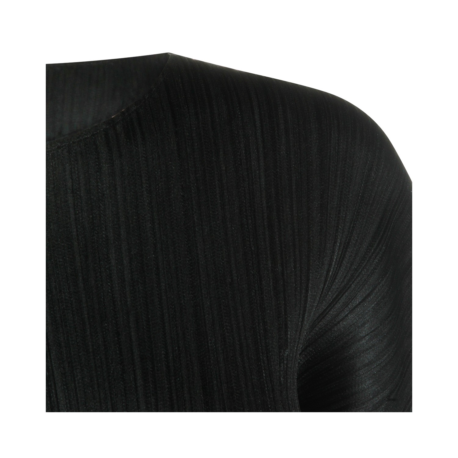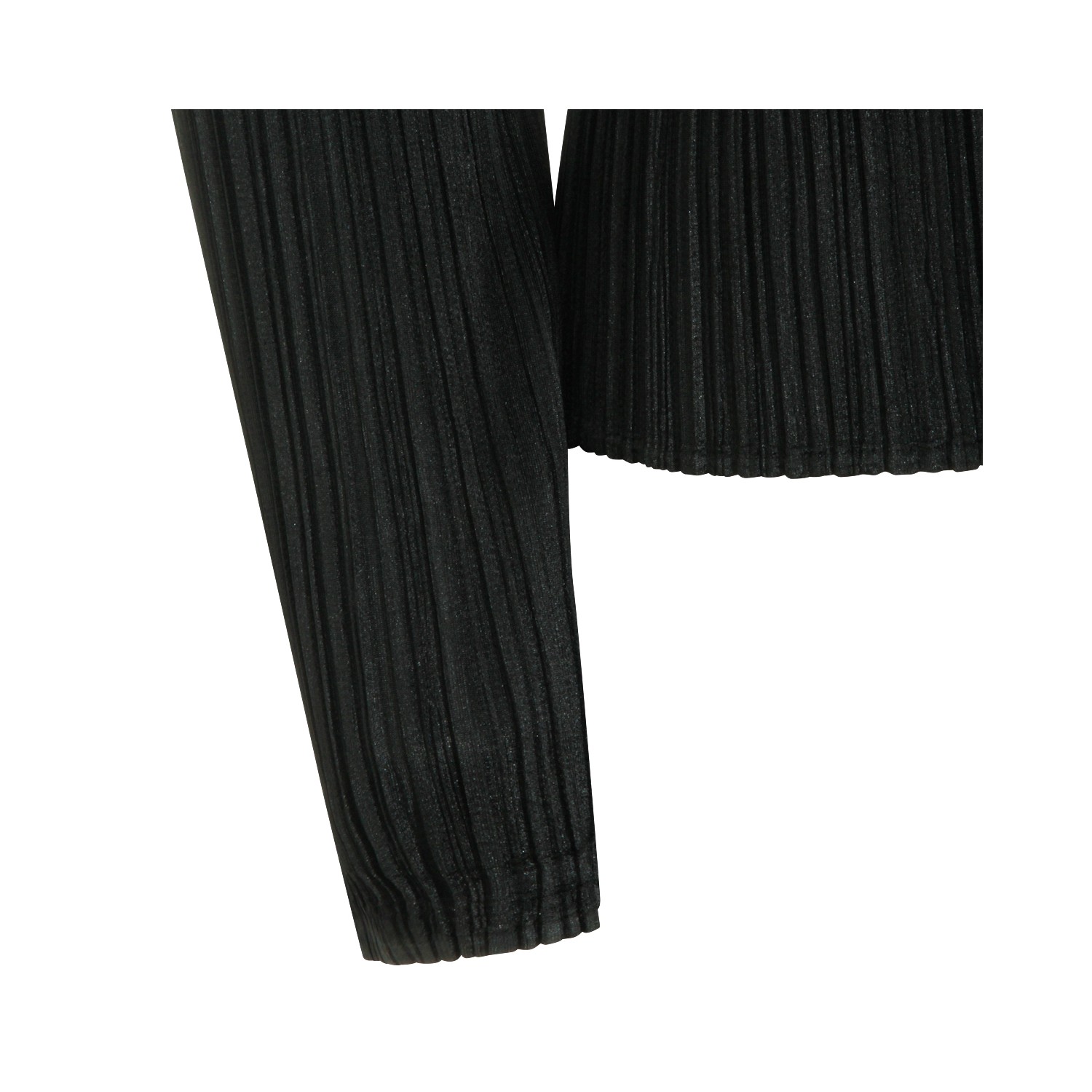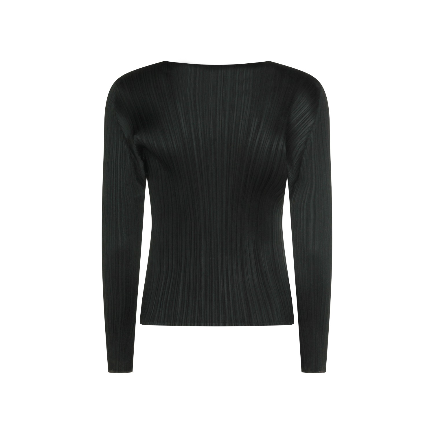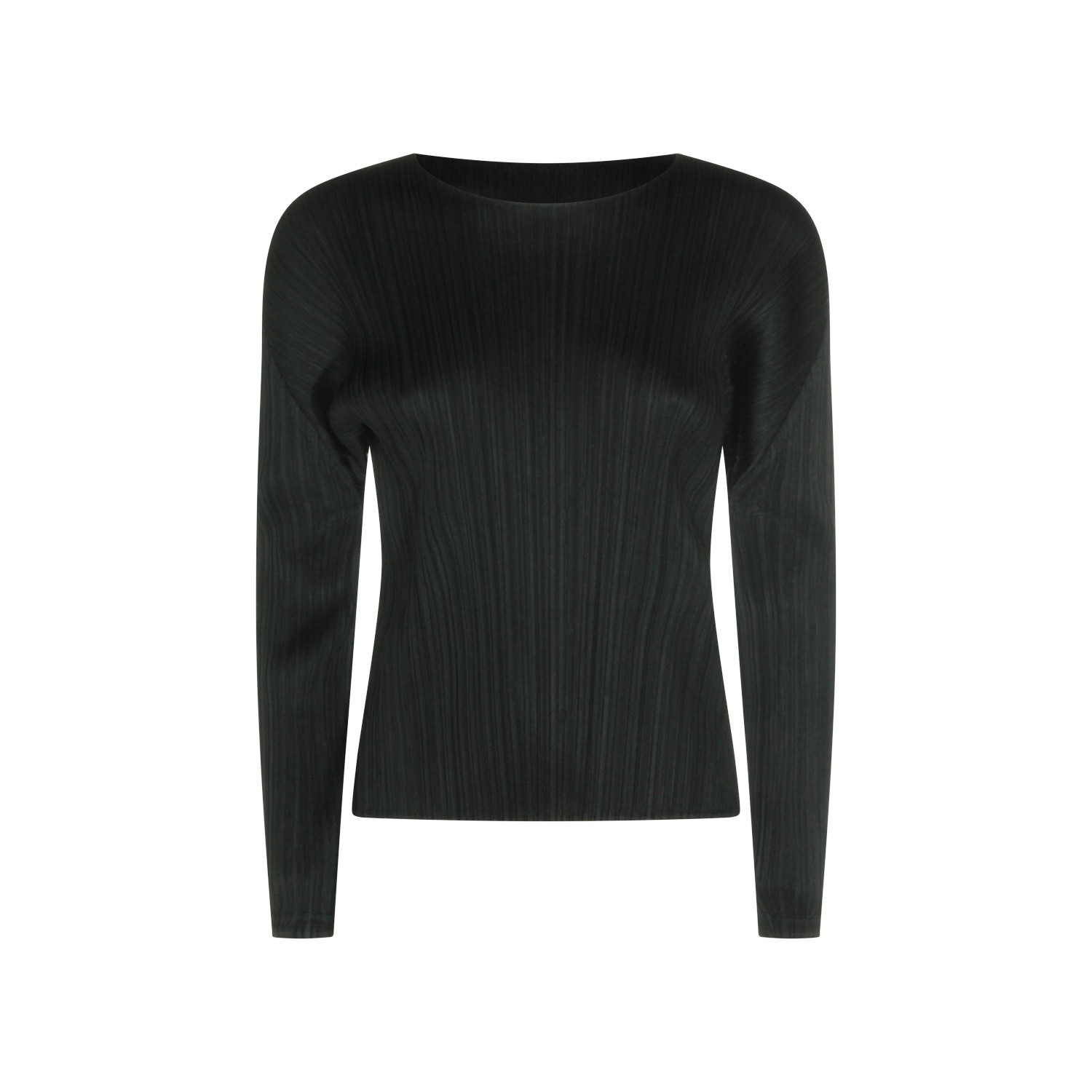 Black top from Pleats Please Issey Miyake featuring round collar, long sleeves, pleats and regular fit.