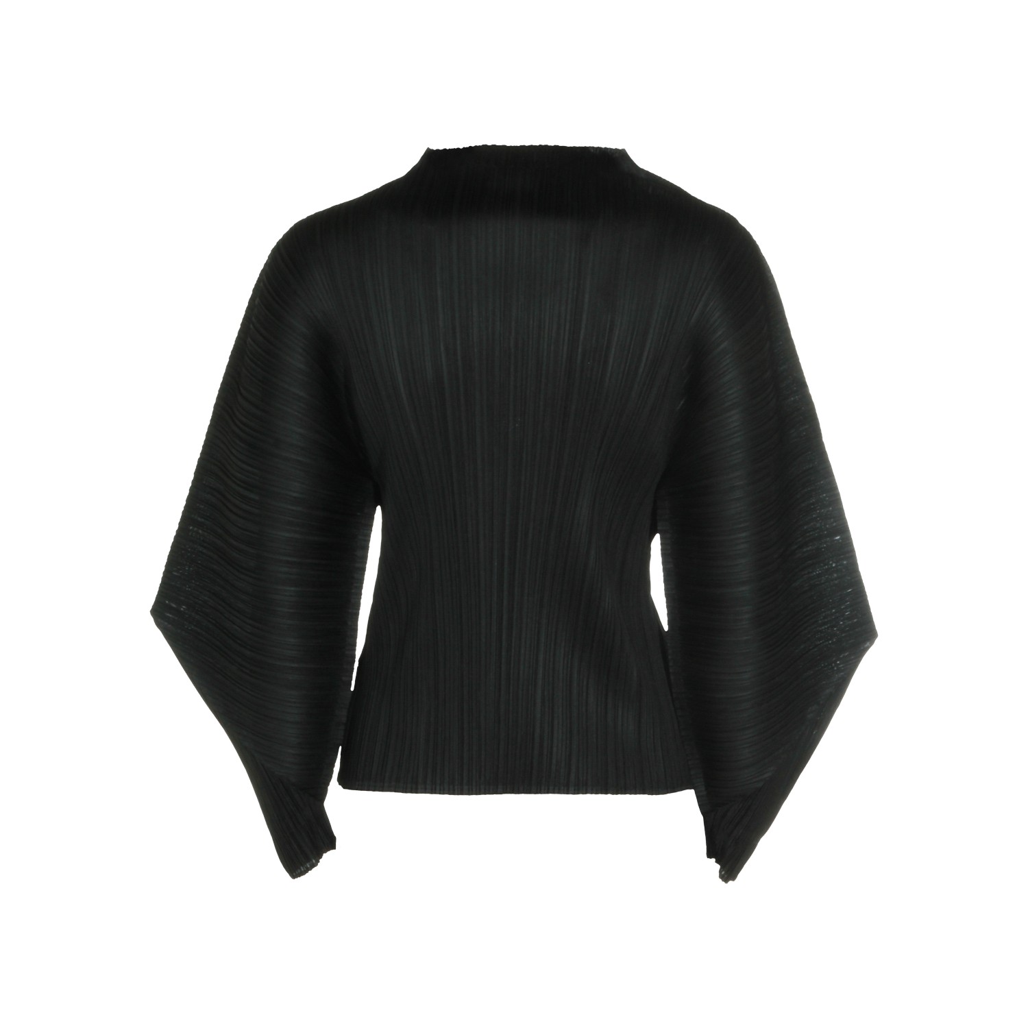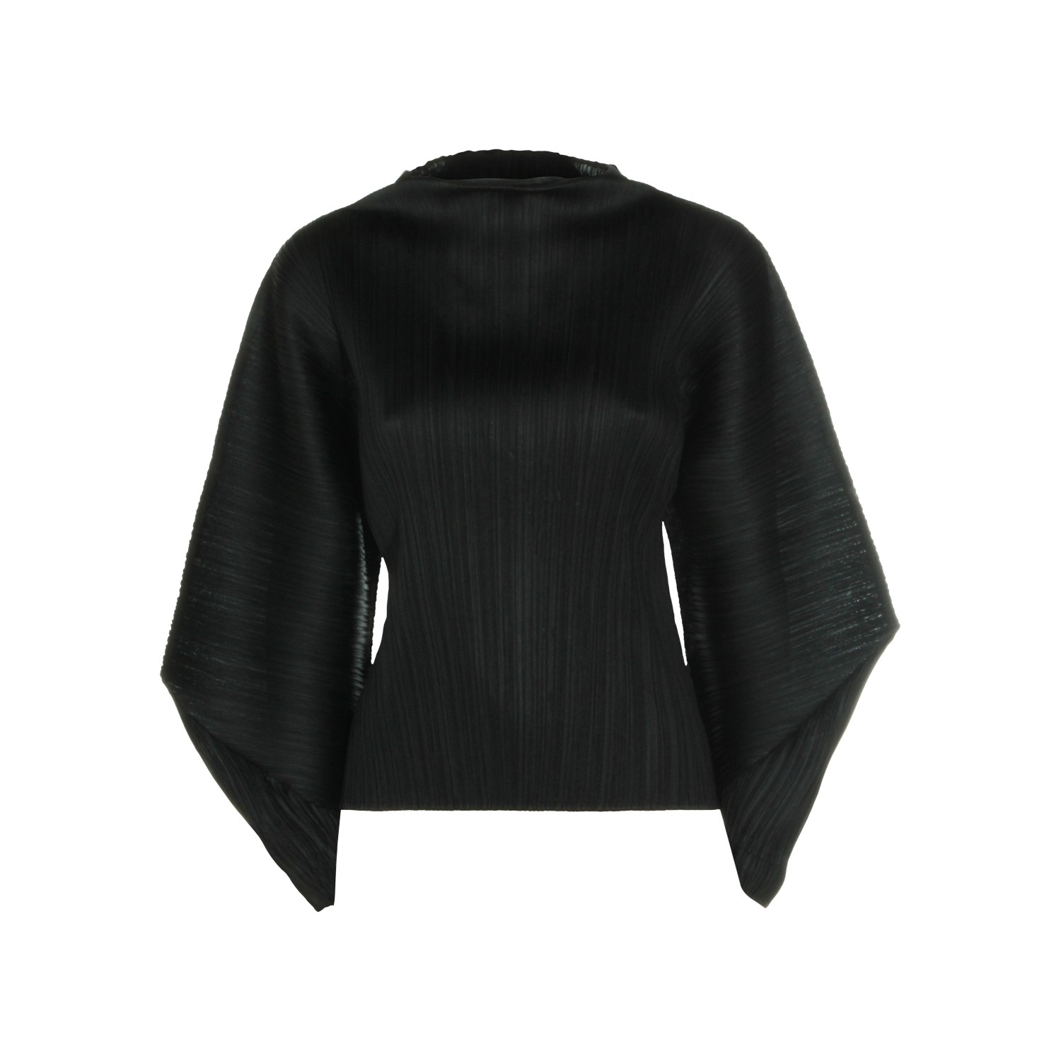 Black top from Pleats Please Issey Miyake featuring round collar, wide long sleeves, pleats and regular fit.